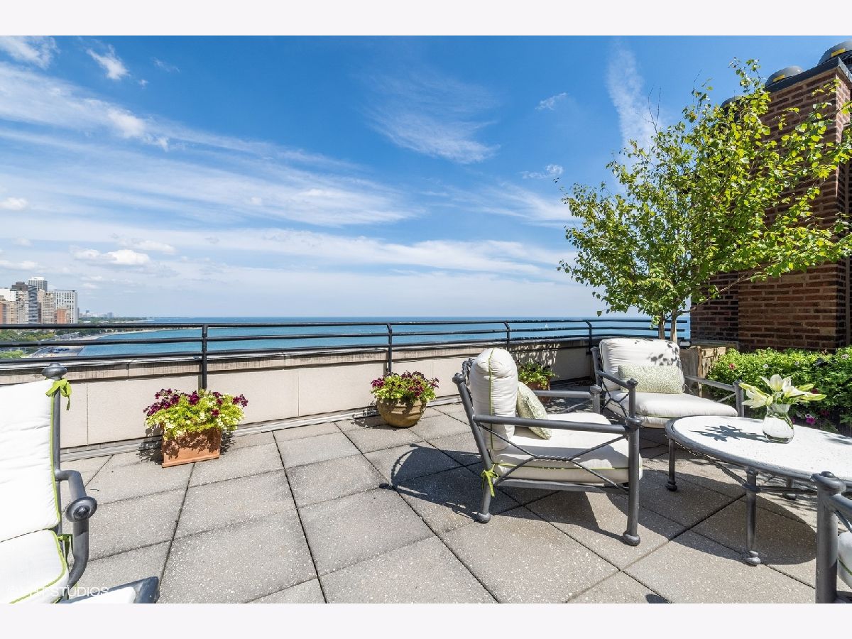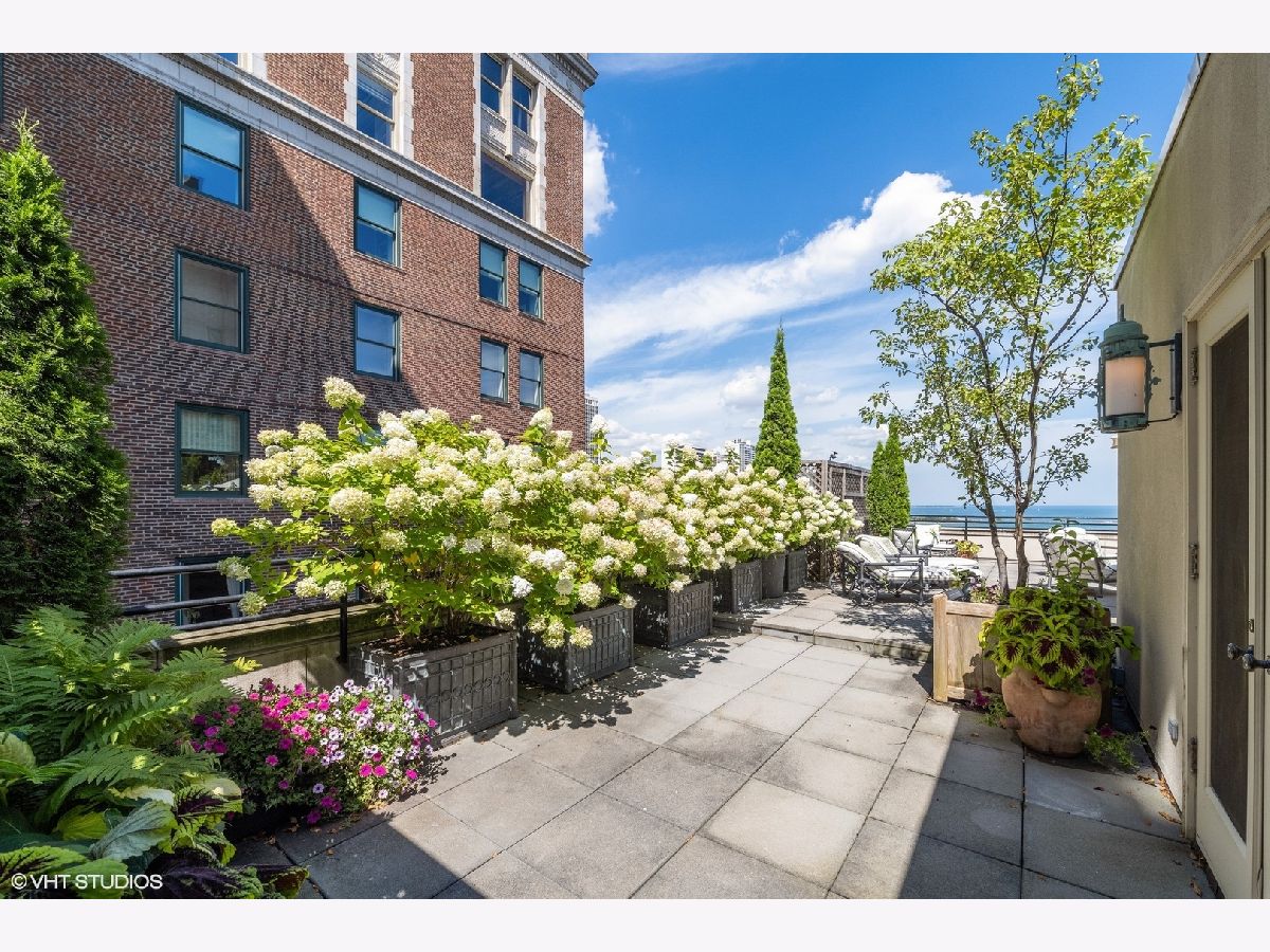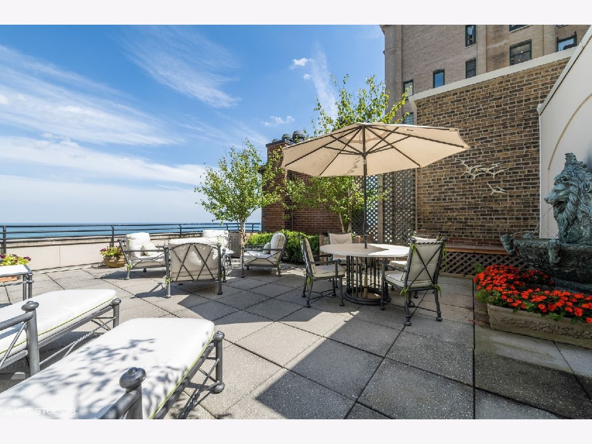Breathtaking in scale, and stunningly detailed with unparalleled views, this architectural masterpiece is located on one of Chicago's most distinguished blocks - East Lake Shore Drive. This magnificent 4,232 square foot penthouse residence, built in 1913 by Benjamin Marshall, features a striking 1,000 sq.ft. private roof garden and perfectly proportioned rooms over three gracious stories accessible by a grand staircase and a private elevator that seamlessly connects all levels. This fabulous Gold Coast home features iconic views of Oak Street Beach, the Lake and gorgeous city streetscapes. Enjoy the beautiful natural light from N, S, and E facing exposures, all perfectly framed by the large windows throughout. This exquisitely designed sanctuary offers wonderful living and entertaining spaces in addition to three spacious bedrooms, a handsome library and three full and two half well-designed baths. Rich wood moldings, herringbone pattern hardwood flooring, intricate high ceilings, custom built-ins, and oversized windows are among the many discerning touches that grace the meticulous interior. You are welcomed into a magnificent entry gallery that leads you to the grand living room with 28 feet of the most beautiful east lake views. Adorned with a fireplace, coffered ceiling detail this room leads to the impressive dining room providing a seamless flow for grand entertaining. Your favorite spot will be the handsome wood-paneled library featuring a cozy fireplace and French doors leading to a lovely Juliette balcony. An all-white chef's kitchen with a windowed breakfast area and a built-in banquette overlooks the famous Mies van der Rohe streetscape. The welcoming kitchen is well appointed with a center island, plenty of storage and top-of-the-line appliances. The second level features all three bedrooms - the primary suite occupies a private wing of this floor. This relaxing suite features a fireplace, East lake views, a luxurious windowed bathroom with feathered onyx, a breakfast bar and two extensive custom walk in closets. Truly an oasis. Two additional spacious bedrooms feature gorgeous moldings, ensuite bathrooms and generous closets. You are welcomed to the cheerful third level by a large skylight and the French doors that lead you out to your private 1,000 square foot garden terrace....One of only 2 private terraces on this entire street. The terrace features the most incredible views of the lake and city. Full of life and yet relaxing, the terrace is surrounded by lush hydrangeas, trees, flowers, and a calming fountain. So perfect for outdoor entertaining. The third level also features a powder room, extra storage, a full laundry room and is all accessible all by the private elevator. 199 E. Lake Shore Drive is one of Chicago's premier white glove cooperatives with an exceptional full-service staff and private attached garage. This is a truly unique opportunity to own a remarkable residence in one of the most sought-after addresses in the world. Live your best city life in this elegant home.