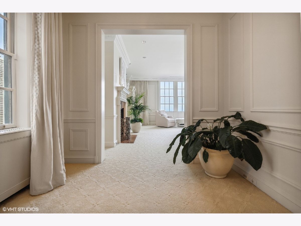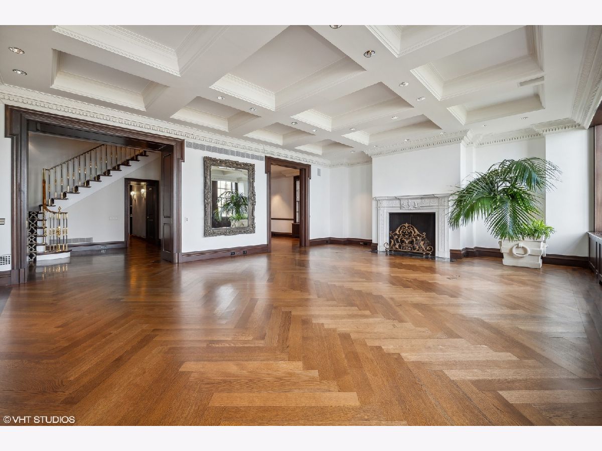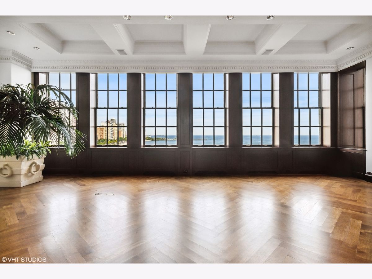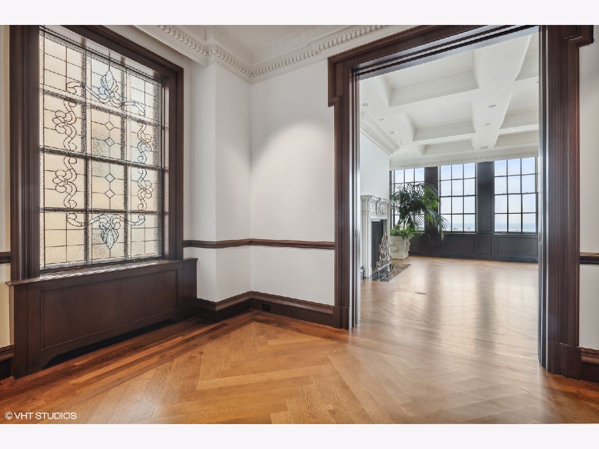 Breathtaking in scale, and stunningly detailed with unparalleled views, this architectural masterpiece is located on one of Chicago's most distinguished blocks - East Lake Shore Drive. This magnificent 4,232 square foot penthouse residence, built in 1913 by Benjamin Marshall, features a striking 1,000 sq.ft. private roof garden and perfectly proportioned rooms over three gracious stories accessible by a grand staircase and a private elevator that seamlessly connects all levels. This fabulous Gold Coast home features iconic views of Oak Street Beach, the Lake and gorgeous city streetscapes. Enjoy the beautiful natural light from N, S, and E facing exposures, all perfectly framed by the large windows throughout. This exquisitely designed sanctuary offers wonderful living and entertaining spaces in addition to three spacious bedrooms, a handsome library and three full and two half well-designed baths. Rich wood moldings, herringbone pattern hardwood flooring, intricate high ceilings, custom built-ins, and oversized windows are among the many discerning touches that grace the meticulous interior. You are welcomed into a magnificent entry gallery that leads you to the grand living room with 28 feet of the most beautiful east lake views. Adorned with a fireplace, coffered ceiling detail this room leads to the impressive dining room providing a seamless flow for grand entertaining. Your favorite spot will be the handsome wood-paneled library featuring a cozy fireplace and French doors leading to a lovely Juliette balcony. An all-white chef's kitchen with a windowed breakfast area and a built-in banquette overlooks the famous Mies van der Rohe streetscape. The welcoming kitchen is well appointed with a center island, plenty of storage and top-of-the-line appliances. The second level features all three bedrooms - the primary suite occupies a private wing of this floor. This relaxing suite features a fireplace, East lake views, a luxurious windowed bathroom with feathered onyx, a breakfast bar and two extensive custom walk in closets. Truly an oasis. Two additional spacious bedrooms feature gorgeous moldings, ensuite bathrooms and generous closets. You are welcomed to the cheerful third level by a large skylight and the French doors that lead you out to your private 1,000 square foot garden terrace....One of only 2 private terraces on this entire street. The terrace features the most incredible views of the lake and city. Full of life and yet relaxing, the terrace is surrounded by lush hydrangeas, trees, flowers, and a calming fountain. So perfect for outdoor entertaining. The third level also features a powder room, extra storage, a full laundry room and is all accessible all by the private elevator. 199 E. Lake Shore Drive is one of Chicago's premier white glove cooperatives with an exceptional full-service staff and private attached garage. This is a truly unique opportunity to own a remarkable residence in one of the most sought-after addresses in the world. Live your best city life in this elegant home.