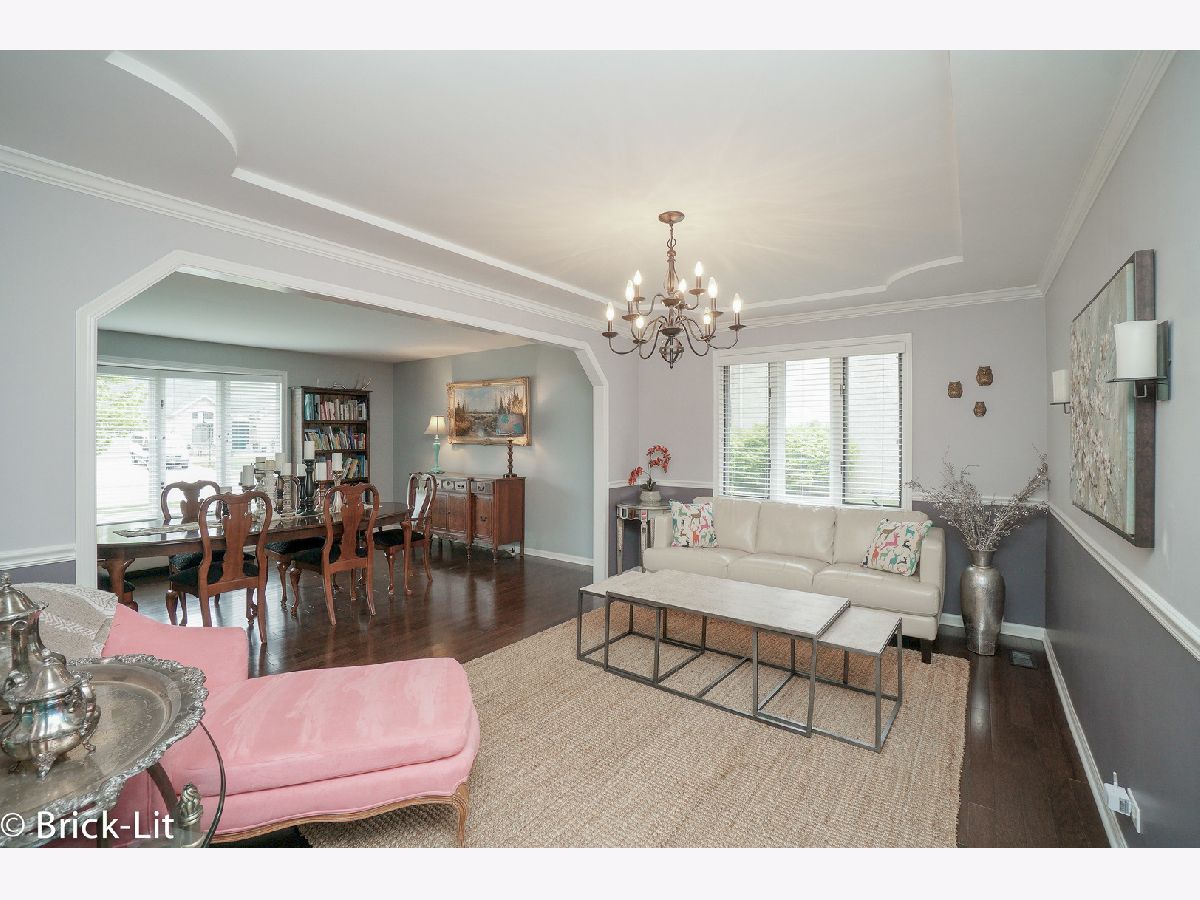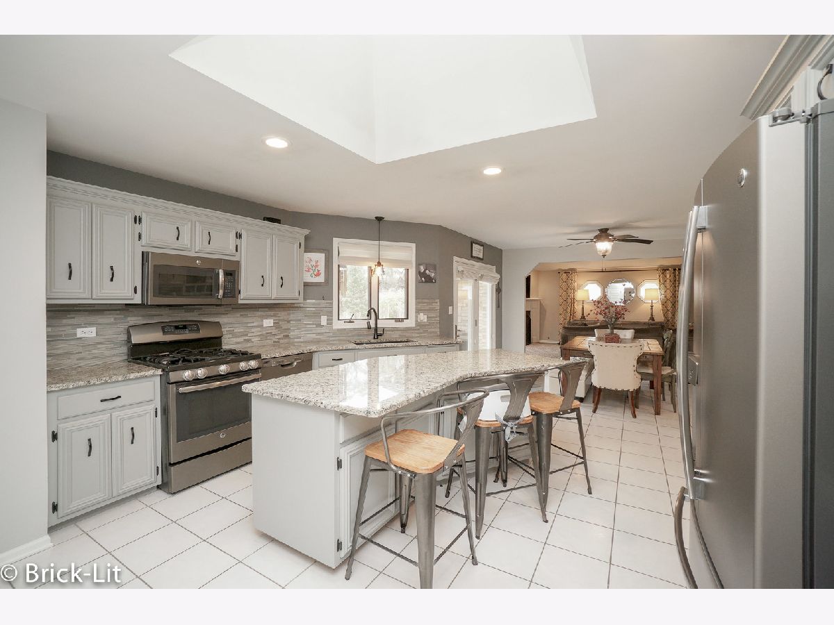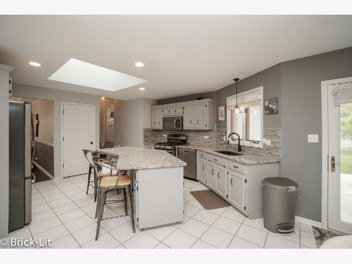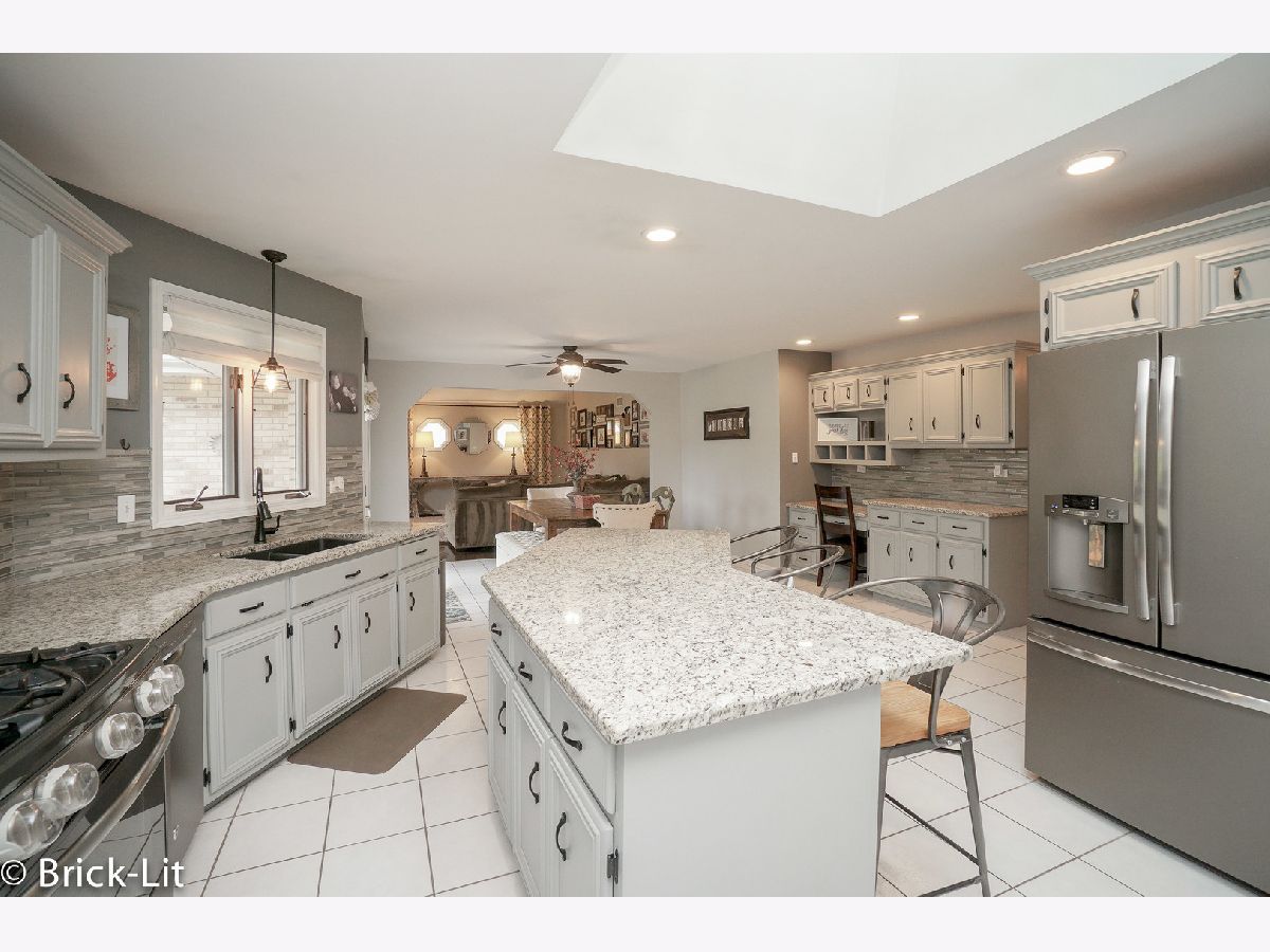 Beautifully updated step ranch nestled in desirable Green Meadows! Boasting all the most popular updates blended into the warmth and comfort of your dream home; the interior of this home is accented with warm decor, spacious room sizes, Colonial trim, 6 panel doors and beautiful light fixtures. Hosted on the main floor is a formal living room/dining room with hardwood flooring; a gorgeous family room with vaulted ceiling and custom fireplace; along with an impressive kitchen finished with grey cabinets, granite counters, glass tile backsplash and stainless steel appliances. For entertaining, the basement features a recreation room, full bathroom and a bedroom. There are 3 main floor bedrooms and 2.1 bathrooms; including a master suite with dual closets (one is walk-in) and an updated bathroom. Additional updates include the roof, furnace, air conditioner, hot water heater, washer, front door and garage door. Come view this immaculate home, its oversized yard with serene views, and the wonderful locale it offers; only minutes to parks, playgrounds, walking paths, the Metra station and interstate access!