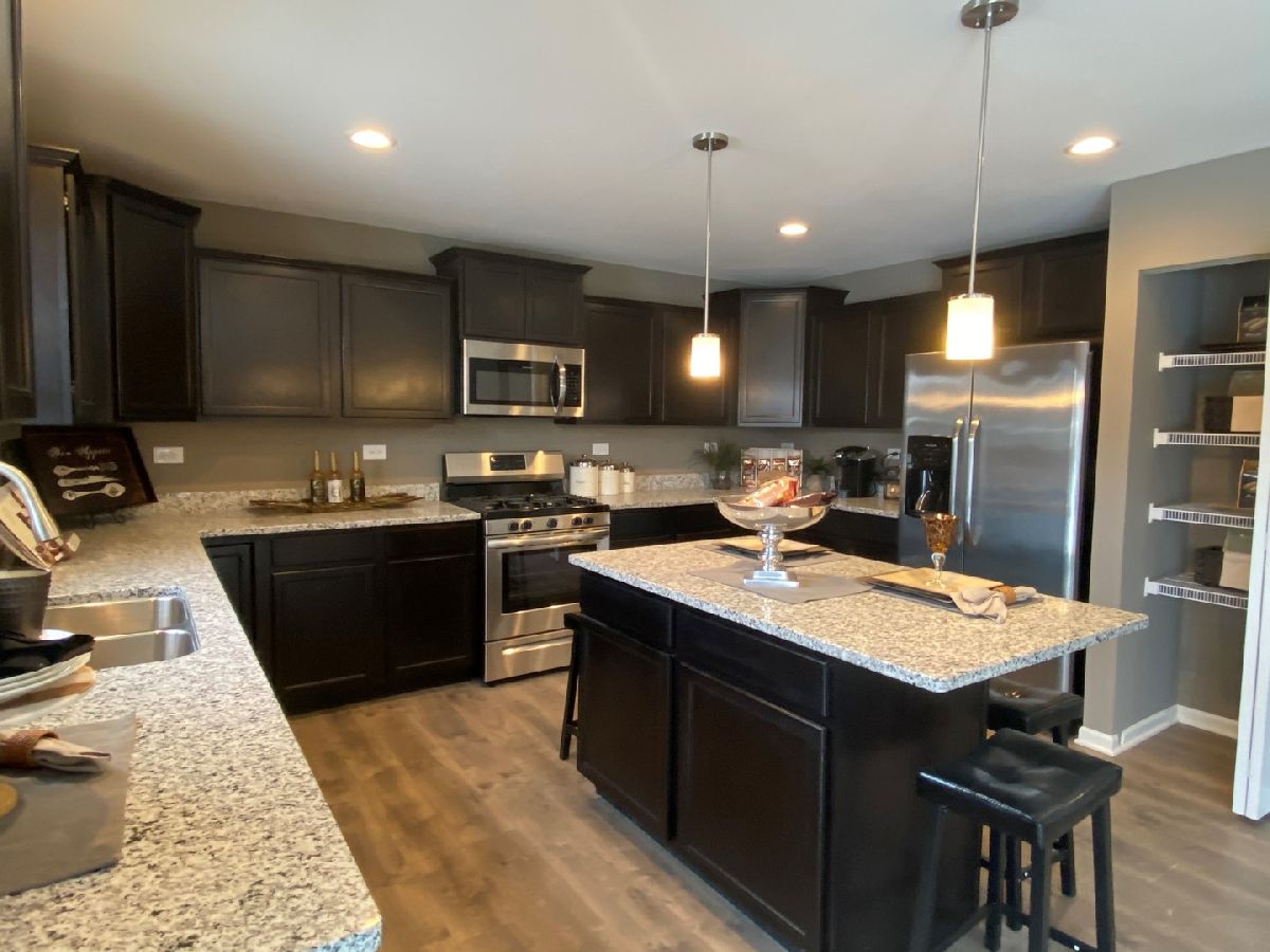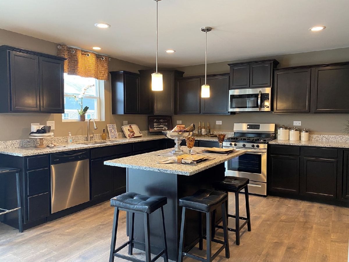 Builder's model home ready for January move in! You will not be disappointed by this popular Glenmont in the well sought Bristol Park Community! 2630 sq. ft. of open concept living space featuring 3 large bedrooms and huge 2nd floor loft plus a flex room on the main floor perfect for an office, playroom, or formal living room. Beautifully appointed kitchen w/designer kitchen cabinetry featuring crown molding, granite countertops, island w/overhang, full set of stainless steel appliances, pantry, plenty of recessed can lights, and wood laminate flooring. Amazing primary bedroom suite, with walk in closet, full private bath has walk in shower, ceramic tiled floors & shower walls, double bowl vanity, and linen closet. All bedrooms feature walk in closets and 2nd floor loft is a great second family room or flex space. Laundry on the 2nd floor for convenience, washer & dryer included. Full basement has a FULLY FINISHED bathroom, private exterior entry and is awaiting your finishing touches. 3 car garage, 1st floor brick, Hardie siding, fully landscaped and sodded homesite, all located in the highly rated New Lenox school district! Do not miss out on one of the final opportunities in Bristol Park - this professionally decorated model home has it all - window treatments, custom paint colors, you must see it TODAY!!