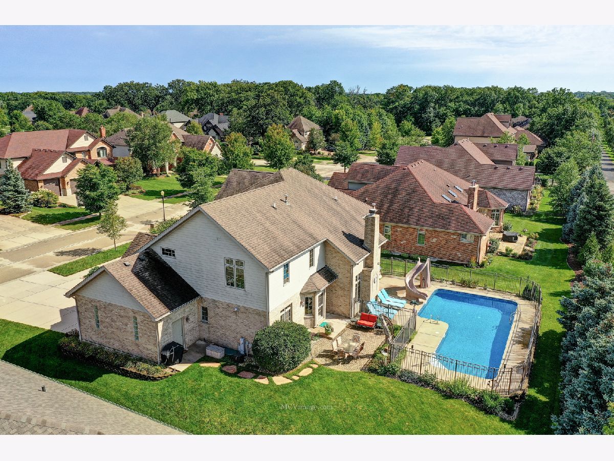Picture Perfect...Absolutely Meticulous 2-story situated in "The Oaks" subdivision. Stunning curb appeal and attention to detail inside and out. Filled with natural light from the 2-story foyer with solid hardwood flooring flowing thru the formal dining room into the spacious kitchen featuring maple cabinetry, an island, granite c-tops and stainless appliances plus an oversized eating area open to the family room with soaring vaulted ceilings and a brick fireplace flanked by windows on either side. The main level (5th bedroom) and its attached bathroom provides terrific flexibility while the upper level boasts 4 spacious bedrooms including the master suite complete with vaulted ceilings, a large walk-in closet and french doors leading to the glamour bathroom with double sinks, separate shower and whirlpool tub. Nicely appointed with gorgeous white trim work and 2-panel doors thru-out carrying into the professionally finished basement featuring a large rec room with a convenient kitchenette area, bathroom, office and plenty of storage space. With no neighbors behind you, the resort like backyard is just as impressive with a beautiful in-ground pool, paver patio and manicured landscaping. Lincoln-Way High School, and a short trip to downtown Mokena's shopping and dining, this very likely could be the perfect home for you. Come take a look and be impressed today!