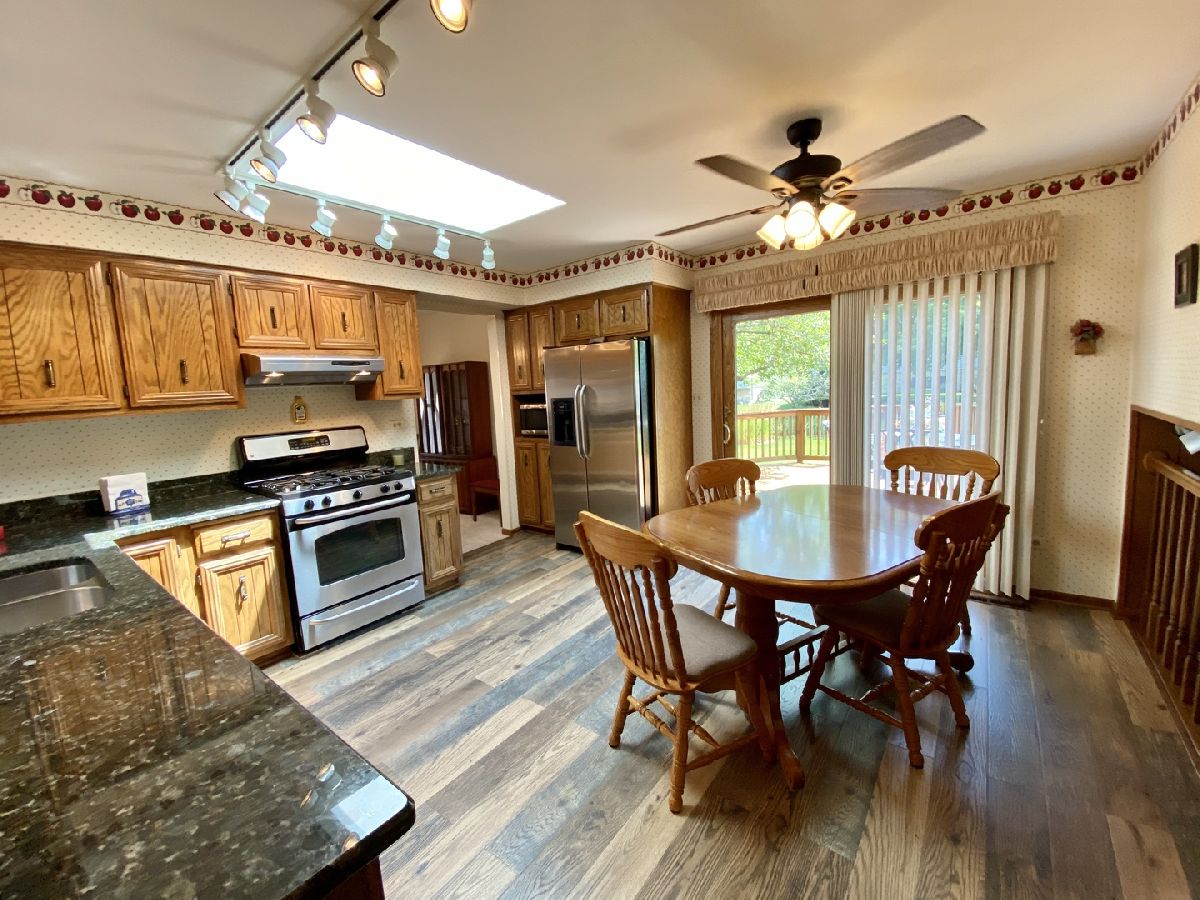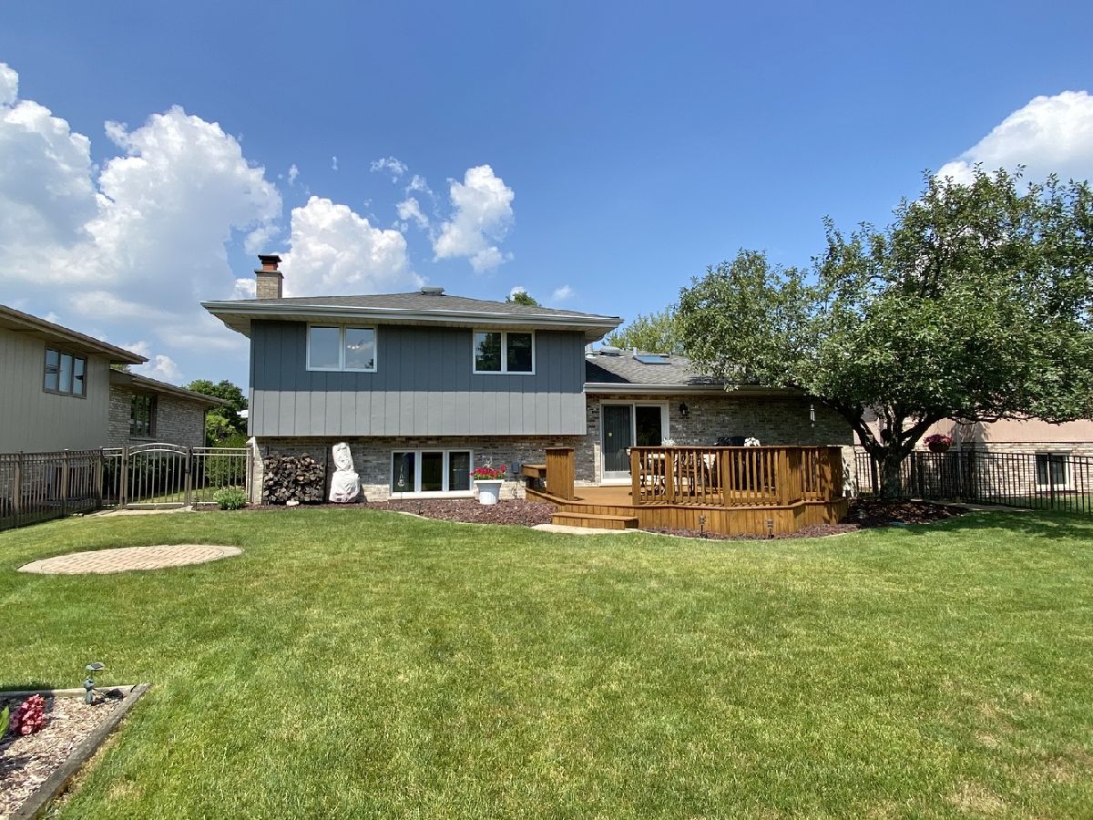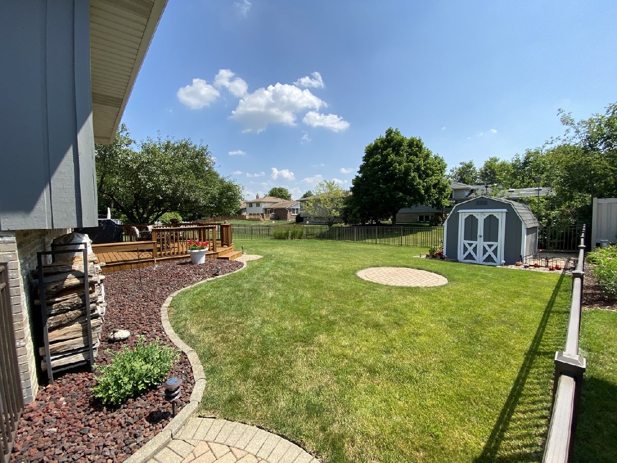 OUTSTANDING home! Extended Quad Level in Green Meadows!! Welcome home to a beautifully updated eat-in kitchen with granite counter tops, stainless steel appliances, plenty of cabinets, and wood plank look laminate flooring! Big formal living room with bay window and formal dining room just off the kitchen. Downstairs boasts a spacious and open family room with brick fireplace, 4th bedroom with closet, full bath and large laundry room with access to the garage! Finished sub-basement with a large rec room for additional living space and still plenty of storage & shelving included! Grand bedroom with double closets and dedicated full bath offers an updated tiled shower with glass sliding door and granite vanity! Big bedrooms, 2.5 car garage measuring 22' x 22', huge fenced in yard with a beautiful deck (stained in 2020!), inground sprinklers, storage shed, and paver walkway to the front! Such a terrific home in a wonderful subdivision, don't let this one get away! Located near forest preserve trails, The Oaks recreation center, Mokena main park & train station. Mokena Grade schools & Lincoln-Way Central high school.