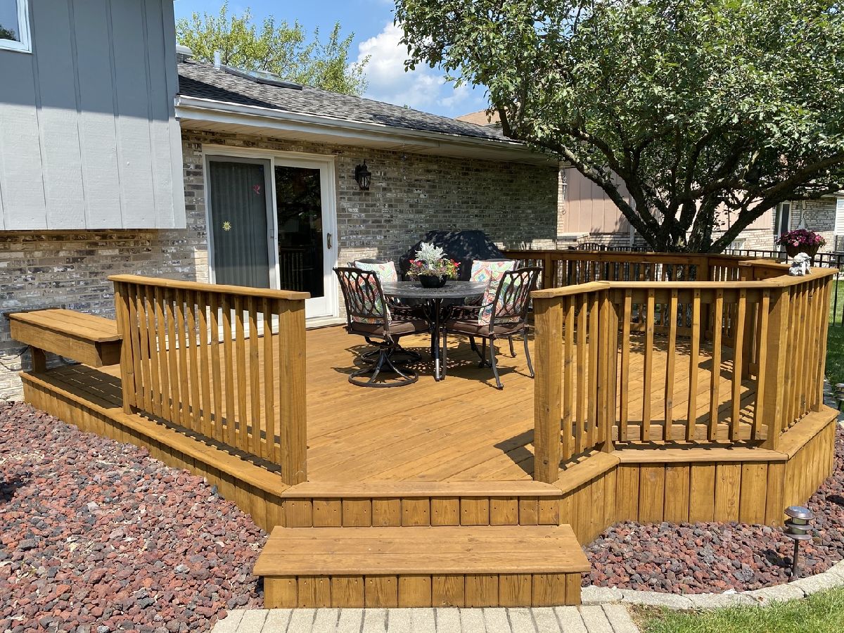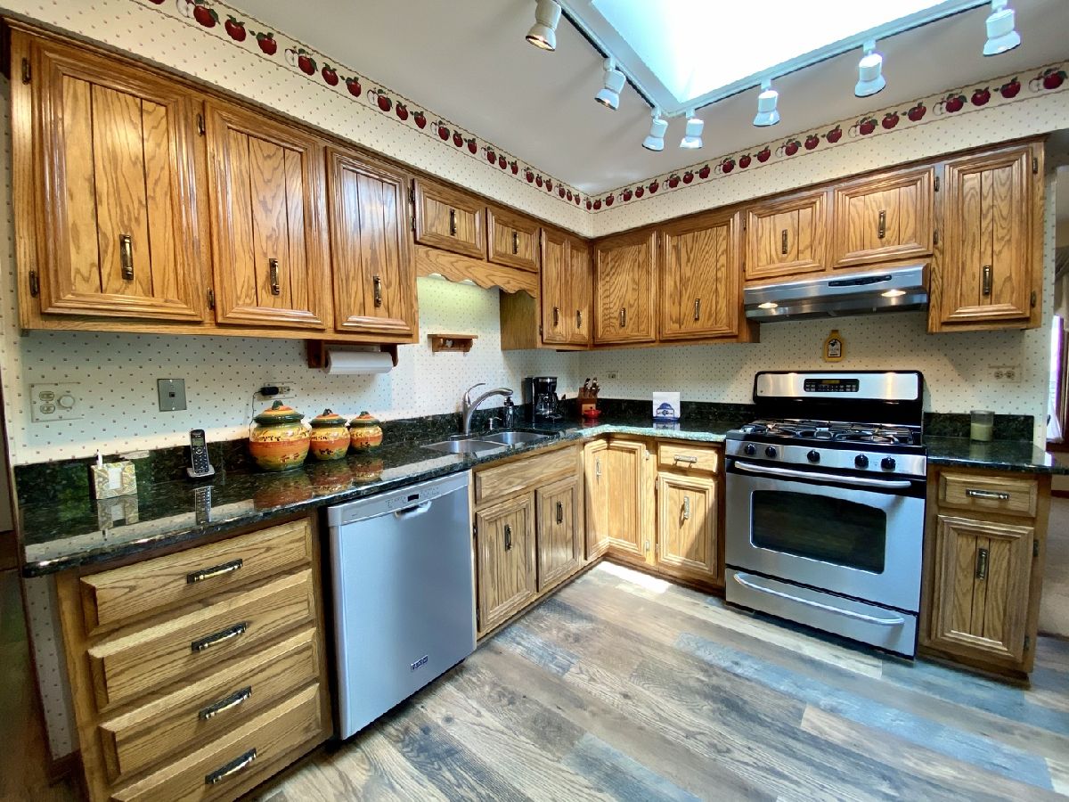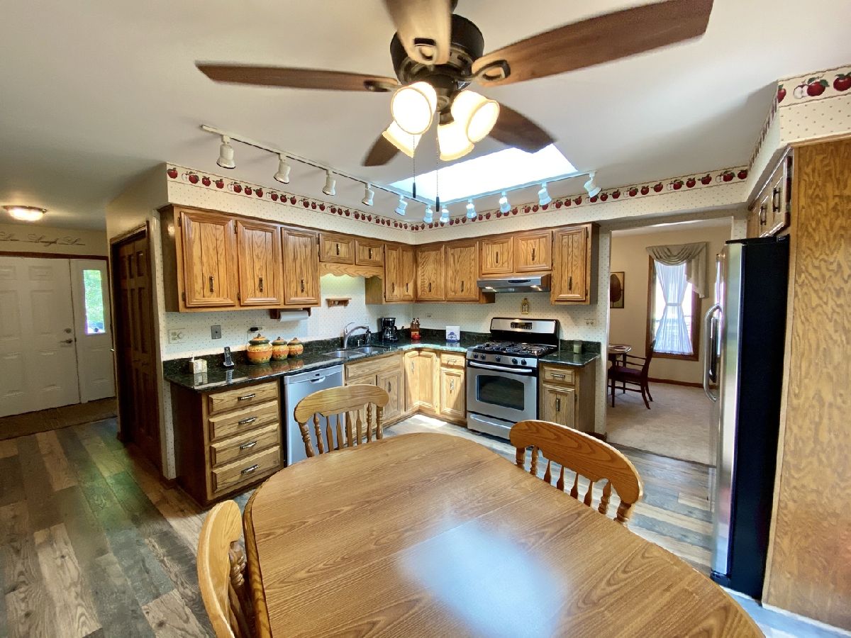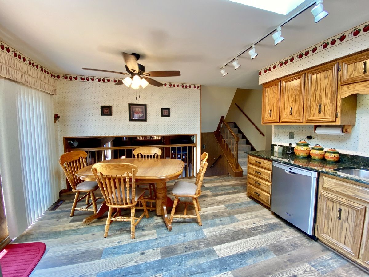 OUTSTANDING home! Extended Quad Level in Green Meadows!! Welcome home to a beautifully updated eat-in kitchen with granite counter tops, stainless steel appliances, plenty of cabinets, and wood plank look laminate flooring! Big formal living room with bay window and formal dining room just off the kitchen. Downstairs boasts a spacious and open family room with brick fireplace, 4th bedroom with closet, full bath and large laundry room with access to the garage! Finished sub-basement with a large rec room for additional living space and still plenty of storage & shelving included! Grand bedroom with double closets and dedicated full bath offers an updated tiled shower with glass sliding door and granite vanity! Big bedrooms, 2.5 car garage measuring 22' x 22', huge fenced in yard with a beautiful deck (stained in 2020!), inground sprinklers, storage shed, and paver walkway to the front! Such a terrific home in a wonderful subdivision, don't let this one get away! Located near forest preserve trails, The Oaks recreation center, Mokena main park & train station. Mokena Grade schools & Lincoln-Way Central high school.