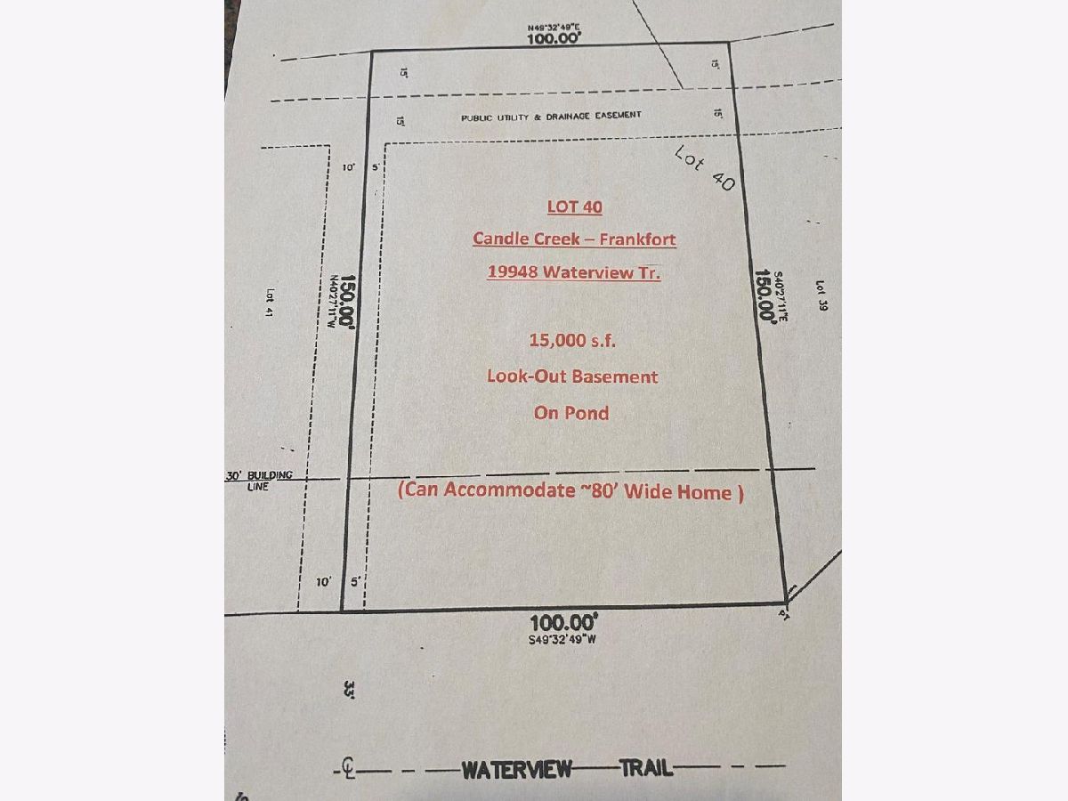 Exclusive Candle Creek Subdivision on North side of Frankfort. Various Lots and Custom Designs by TBL Custom Homes. 157-C & 210 (Lincoln Way EAST) Schools. Fences Allowed, NO HO Association or Fees, Reasonable C&R's, Original Developer Owned and Maintained. Well planned and designed for a variety of custom homes build to suit by TBL. Excellent location - Shopping, Metra & I-80. Additional Standard, Look-Out, and Walk-Out fully improved lots are also available.