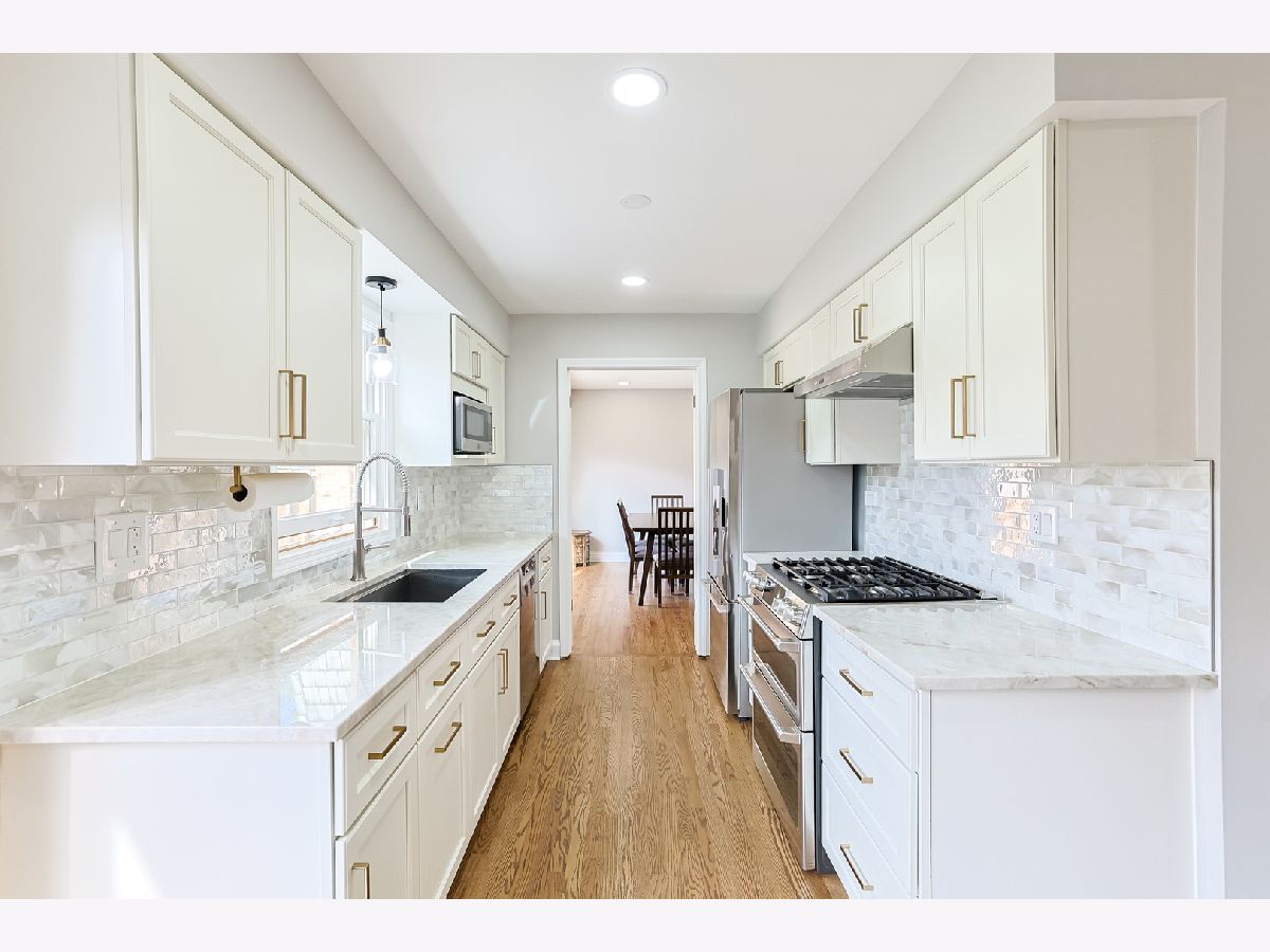 Discover this beautifully renovated townhome boasting 3 bedrooms and 2.5 baths, including 2 spacious en-suite bedrooms. The 1,962 sq ft of living space, complemented by an additional 600 sq ft in the finished basement with a media room and 200sq ft of storage and utility space. Highlights include brand new stunning oak hardwood floors throughout, a gourmet kitchen with under cabinet LED lighting, high-end appliances and counter depth fridge - fisher & Paykel, Bosch, & GE Cafe just to name a few. All appliances are from ABT with a 5yr transferable warranty. Brand new high flush capacity Kohler toilets and shower, top of the line Grohe & Hans Grohe throughout with a professional chefs kitchen faucet & pull down sprayer. All new exhaust fans and fixtures. Every component in this house is brand new inside out; not just a facelift but done correctly throughout. En-suite baths and kitchen counter tops are graced with elegant Taj Mahal Quartzite & marble in the powder room. Brushed brass, matte black, and chrome hardware compliments the color scheme for a modern & contemporary look. New gutters and gutter guard throughout the back and front as well as top and bottom roofs. Brand new solid oak wood staircases with new railing. The custom built master closet is a standout feature, offering ample space and style. New electrical w/over 70 net new canned lights and fixtures. This townhome combines modern luxury with functional living in a highly sought-after location. property is move-in ready and no additional work is required! Purchase with confidence.