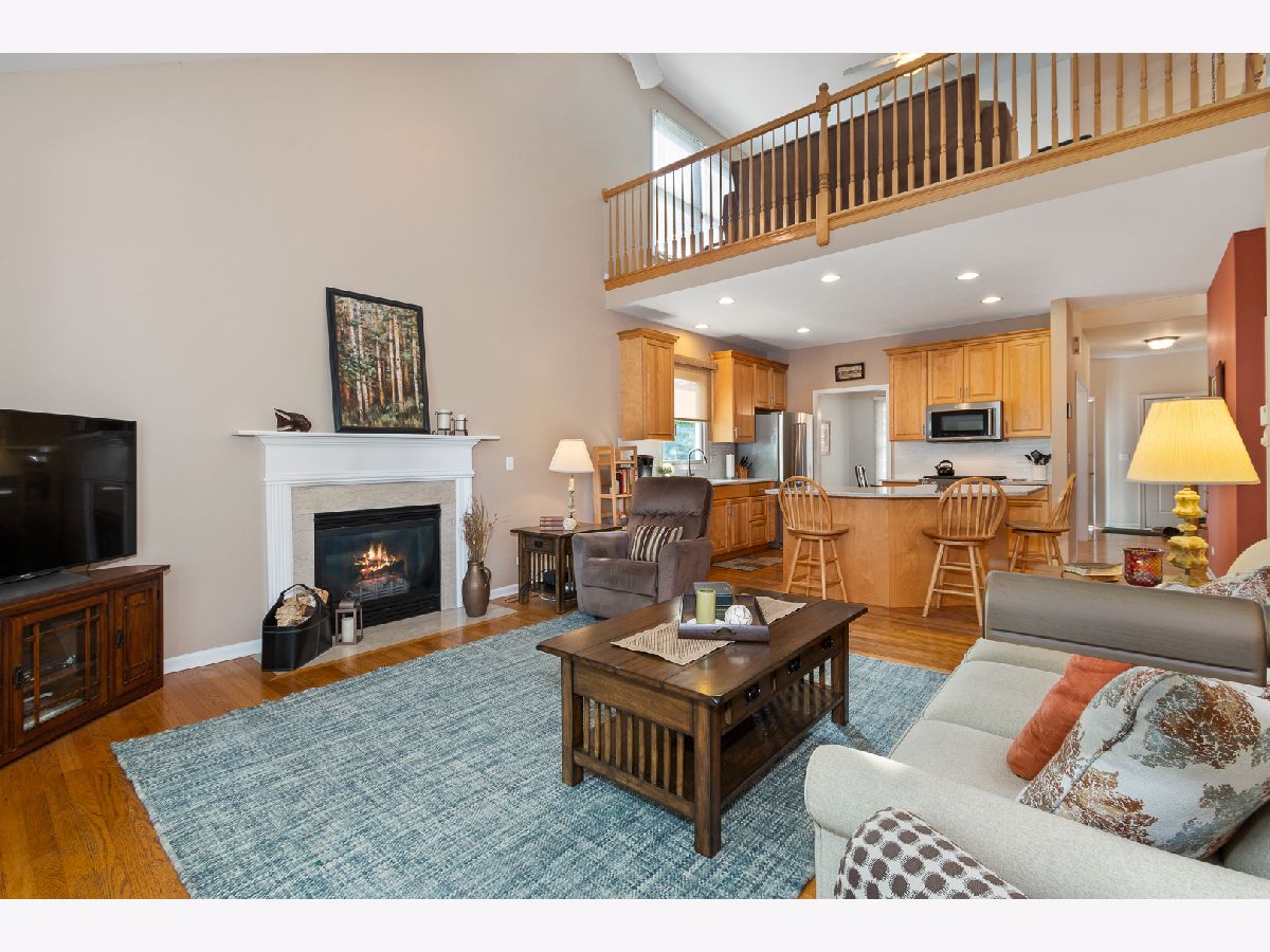 A great 1st Floor Master Bedroom Townhome. Updated Kitchen Quartz Countertops, White Subway Backsplash, Custom Birch Cabinetry, and newer Stainless Appliances. You'll love the Large Island workspace with Breakfast Bar/Counter Seating that is Open to the Family Room. The Family Room has a Vaulted Ceiling, and beautiful Direct Vent Fireplace with Marble Surround and Newer Sliding Door to Deck Area. The Main Floor Owners Suite has 2 Closets, and ensuite Bath with Separate Tub and Shower area plus Tall Counters and Dual Sink Vanity. Convenient Main Floor Laundry Room with Cabinetry and Sink. Nice Bright Dining Room with Hardwood Floor and Main Floor Powder Room. Lovely Welcoming Covered Front Porch. 2nd Floor has BIG Bedroom, Full Bath, and generous sized Loft that could be used as a Family Room, Office, or convert to a 3rd Bedroom. Full Basement gives great Storage Space or a place to Finish additional Space if desired.1820 SF plus Above Grade. Truly a Great Home!
