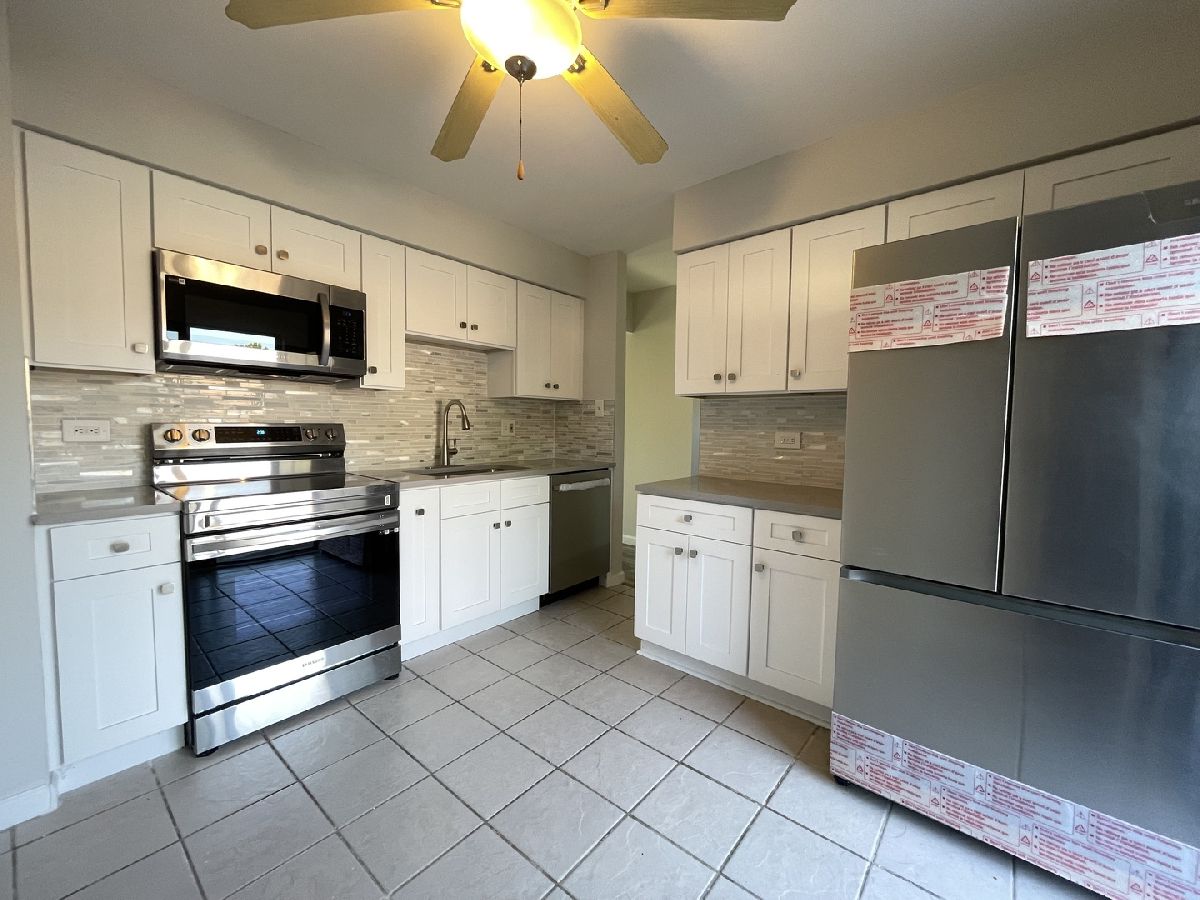 Completely remodeled with all new kitchen cabinets new Quartz countertop, and new SS appliances. New roof, new laminate wood in the living room, new vanities & plumbing fixtures. The unit was updated with central air. Large master bedroom with 2 large closets. Large 17x12 laundry room for more storage. One designated parking and lots of other parking spots. Walking distance to grocery stores and Roosevelt shopping area, minutes to Oak Brook & Yorktown malls.
