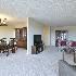 Spacious 2 bed/2 bath END UNIT with two separate outdoor spaces in the lovely Atrium Subdivision. Entrance is located across from the clubhouse, but unit is quietly located on the north side of the building. Lobby with secured entry, elevator access. Spacious foyer leads to carpeted living room and dining room area with sliding glass doors to 20ft balcony. Modest kitchen has table space, coffee bar. In unit walk-in laundry. Guest bed has shared bathroom. Master suit has double doors, access to additional 20 ft balcony, closet, and large master bath with two sinks, gorgeous vanity, separate water closet/step-in shower and walk-in closet. A beautiful and cherished unit waiting for your touch. Attached garage parking included.
