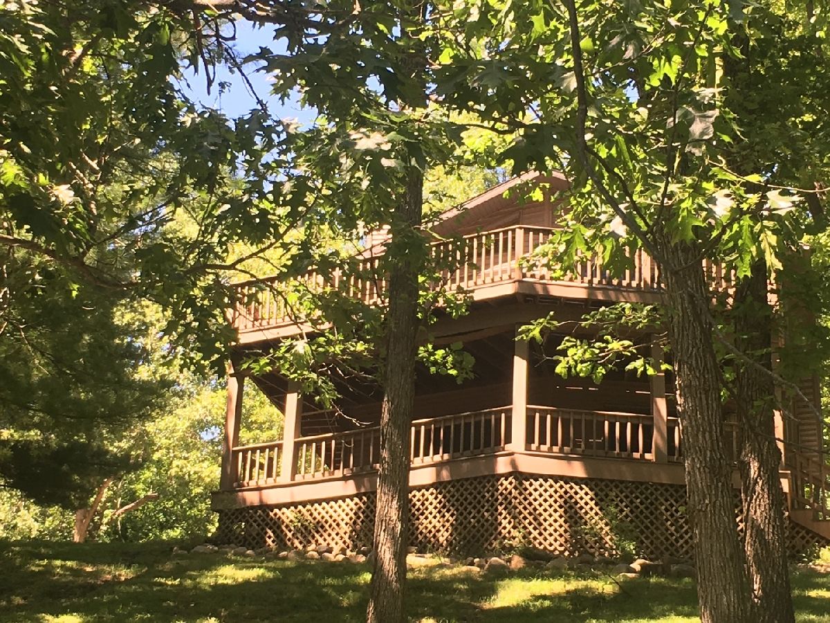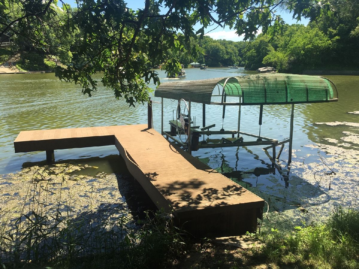 Priced Right! Lovely 3-bedroom, 3-bath lake front home. Lake front 88 ft. Featuring a freshly painted, open great room with vaulted ceiling & cozy fireplace, main level laundry, & eat in kitchen. Finished walk out lower level with family room, 3rd bedroom, full bath & workshop. Square footage includes both finished, heated levels. Doors to sunny deck accessible from both levels offer nice view of the lake. Decking is sturdy Trex. Take steps to lake to find the boat dock, shore lift & paddle boat. Many updates-2016- roof, windows, doors & siding. The roof was a tear off & includes the 2 car detached garage. A great get away at Lake Thunderbird. Boating, fishing, beach, clubhouse, pool & more. Lot next door available for sale, 147' lake front.