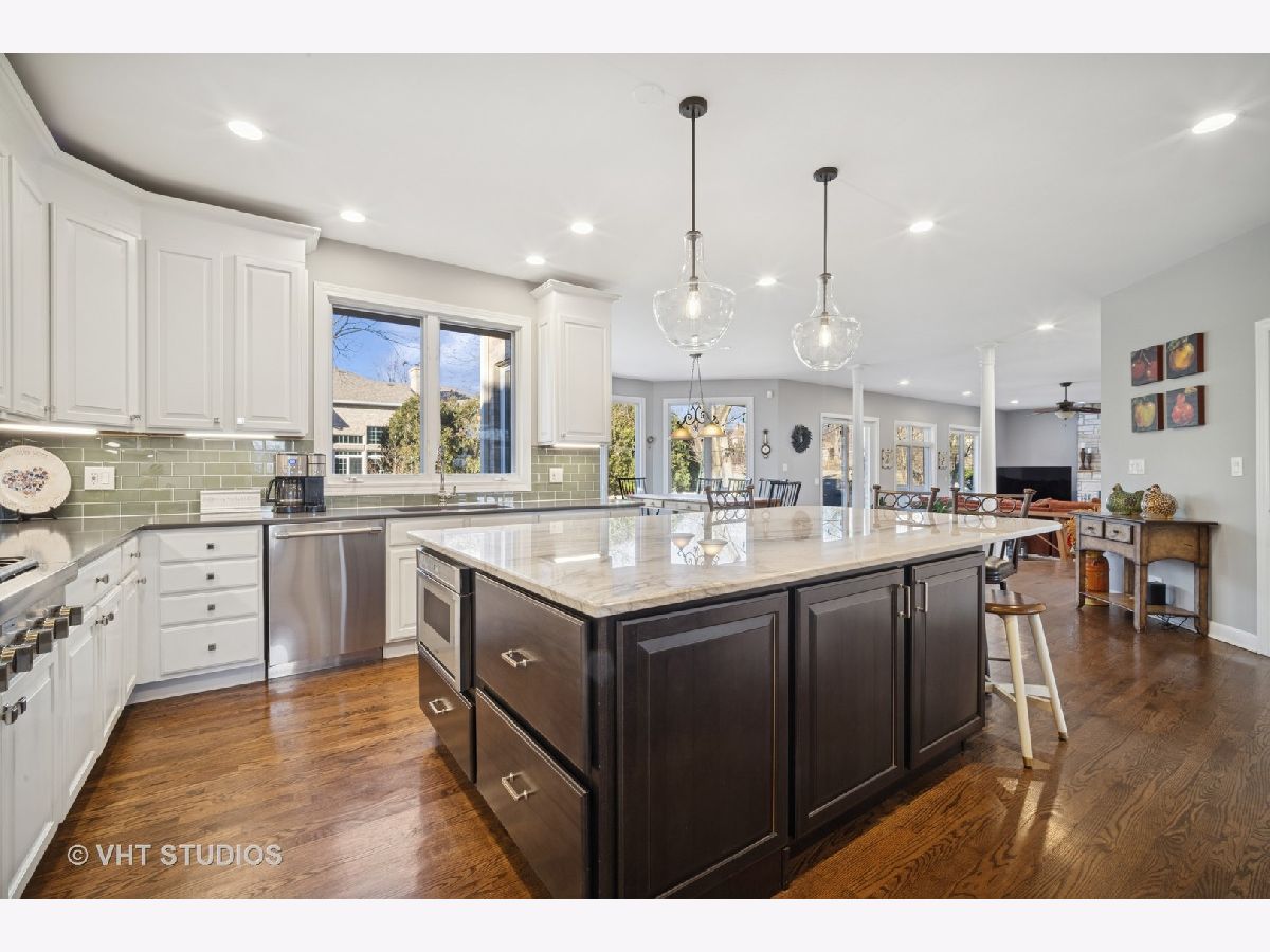 Custom-Built Home with Extensive Upgrades - Located in one of Lincolnshire's sought-after neighborhoods, this stunning 5-bedroom plus loft, 4.5-bath home offers the perfect blend of luxury, comfort, and modern upgrades. A grand two-story entryway welcomes you with soaring ceilings, gleaming hardwood floors, and a seamless open-concept layout. The formal living and dining rooms, adorned with custom plantation shutters, exude timeless charm and refinement. At the heart of the home, the chef's dream kitchen, completely remodeled in 2020, boasts brand-new custom cabinetry, sleek quartz countertops, an oversized quartzite island, and top-of-the-line Thermador appliances. The space flows effortlessly into the grand family room, where a striking stone fireplace creates the perfect ambiance for relaxation and entertaining. Step outside onto the beautiful brick paver patio featuring a built-in firepit, perfect for entertaining. A spacious mudroom and laundry area, conveniently located next to the generously sized three-car garage, ensures effortless organization. Upstairs, four generously sized bedrooms and a versatile third-floor loft provide ample living space. The primary suite is a private retreat with tray ceilings, a spa-like en-suite bath remodeled in 2017 with heated floors, a soaking tub, a private water closet, and a vast walk-in closet. Additional bedrooms include a guest suite with a private en-suite bath, two bedrooms sharing a stylish Jack-and-Jill bath, and a distinctive bedroom with a private staircase leading to the third-floor loft, ideal for a home office, creative space, or cozy retreat. Fully finished in 2018, the expansive lower level is an entertainer's dream offering elevated ceilings, custom built-ins, a large en-suite bedroom, and an oversized work/craft room, perfect for projects, fitness, or hobbies. Unmatched Quality & Recent Upgrades - This meticulously maintained home features zoned heating, and extensive upgrades too numerous to list, including a new roof and 10 skylights (2024). Don't miss this extraordinary opportunity within the award-winning D103 and D125 school districts!