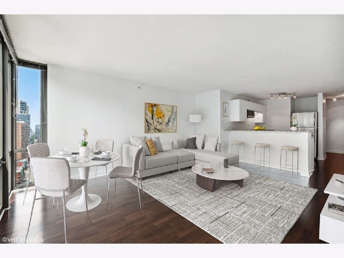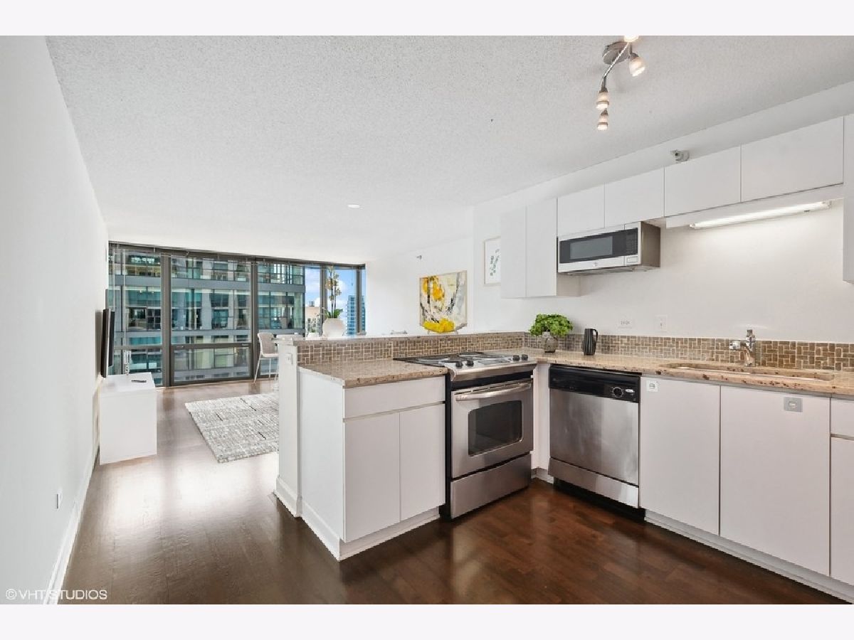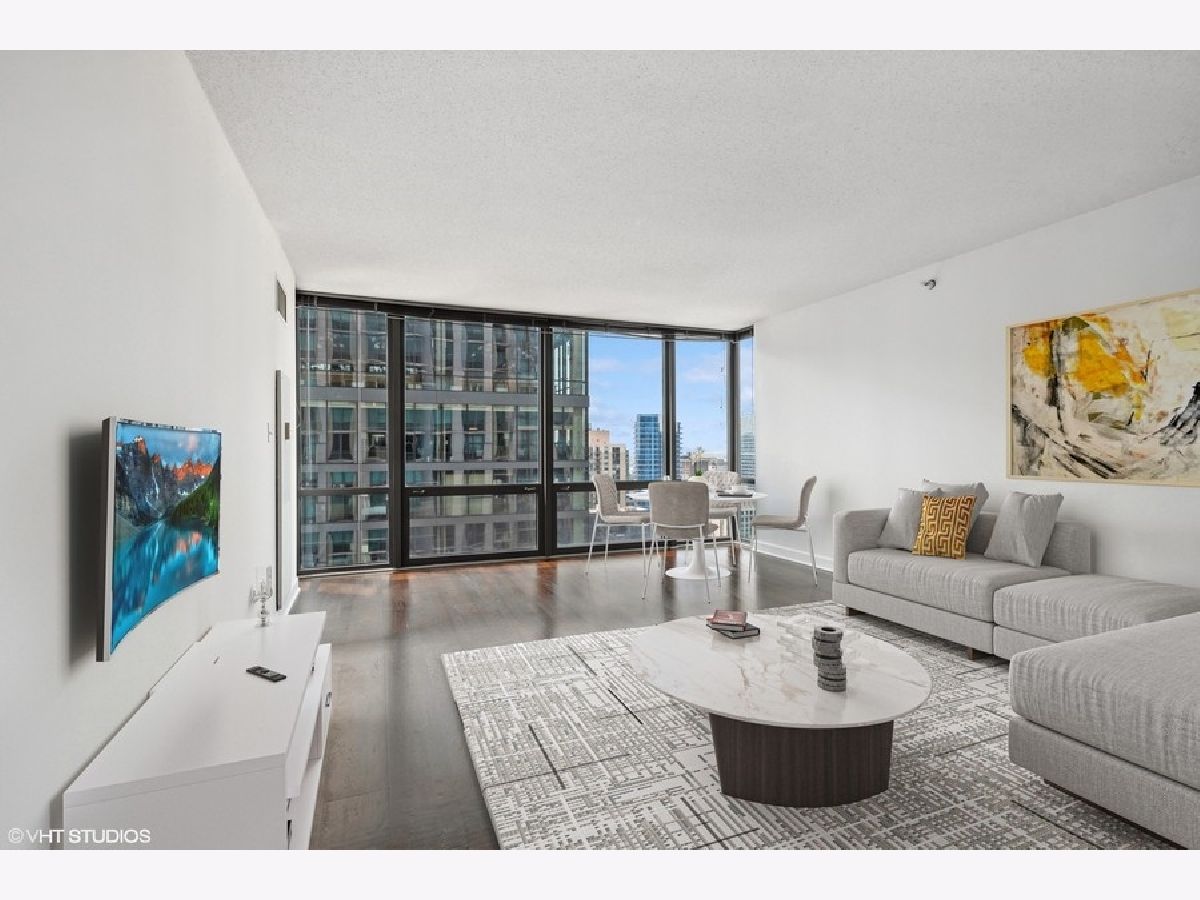 Welcome to Residence 2307-Luxury Living at Its Finest! This sun-drenched, one-bedroom, one-bathroom condominium offers a perfect blend of modern sophistication and urban convenience in a highly desirable building. The moment you step inside, you're greeted by expansive floor-to-ceiling windows that flood the space with natural light, showcasing the elegant hardwood floors throughout. The Chef's kitchen is a true culinary delight, featuring sleek white cabinetry, granite countertops, stainless steel appliances, and a breakfast bar that seamlessly flows into the spacious living and dining areas. Perfect for entertaining or enjoying quiet nights in, this layout offers both style and functionality. The primary bedroom boasts a generous walk-in closet, with additional storage thoughtfully provided by a separate laundry closet and a front coat closet. Enjoy the convenience of an in-unit washer and dryer and peace of mind in this full-service building with premium amenities. Residents have access to a sun deck, a rooftop gym offering stunning city views, a party room, a bike room, and 24-hour doorman service. The building also includes on-site dry cleaning and is pet-friendly, making it perfect for pet owners and investors. Situated in the vibrant Cathedral District, this condo places you steps away from the best of city living, including Michigan Avenue, Eataly, Whole Foods, Trader Joe's, and an array of boutique shops and trendy eateries. With assessments covering all utilities except electricity and parking available. Residence 2307 is an exceptional opportunity to own in one of the city's premier locations. Parking Spot #G633 is available for added convenience. Don't miss your chance to make this stunning residence your new home or investment property!