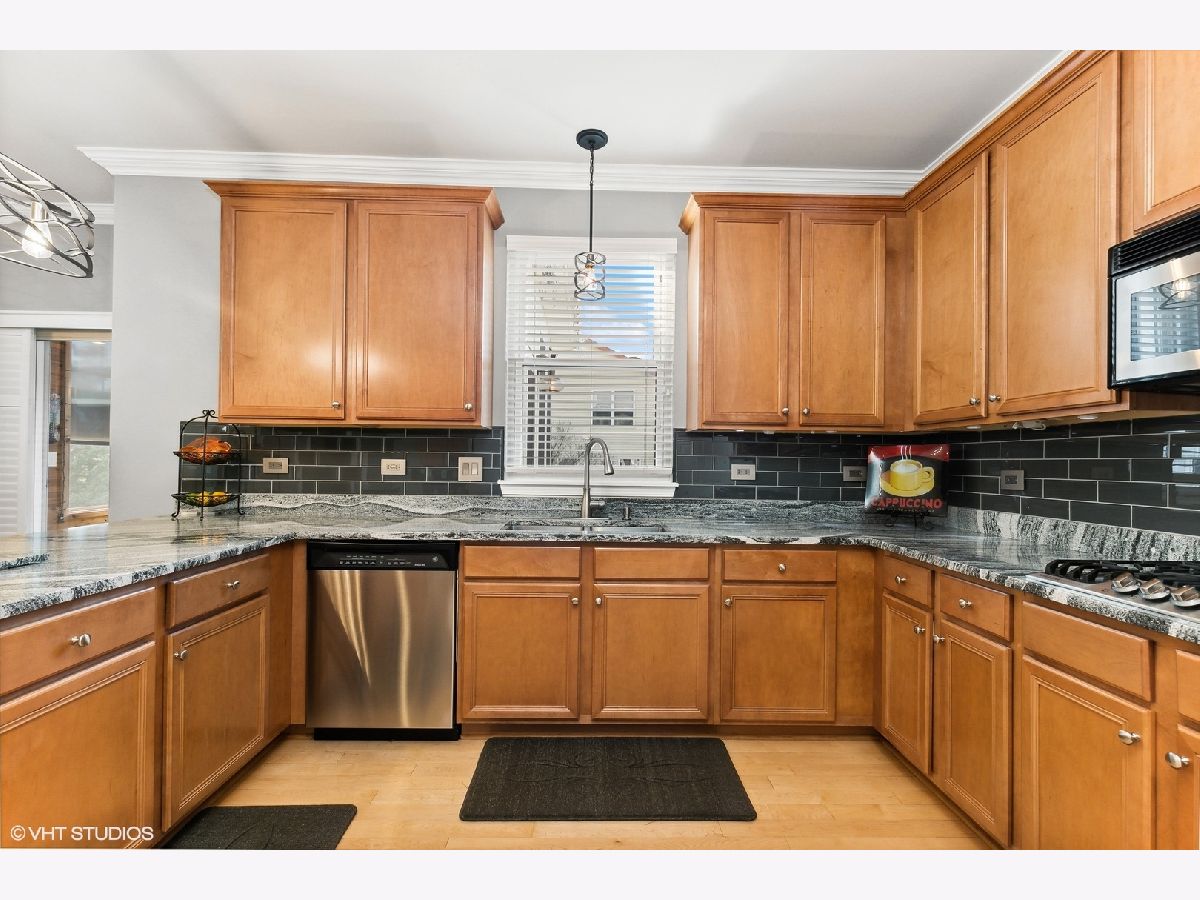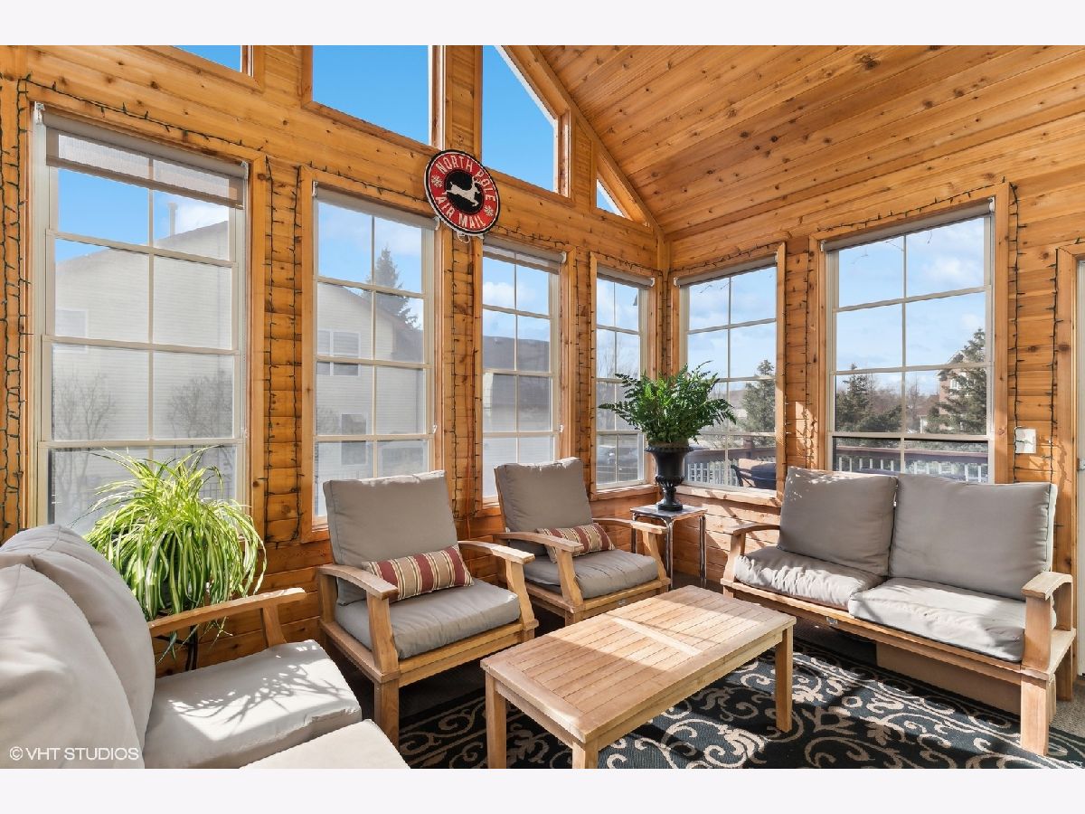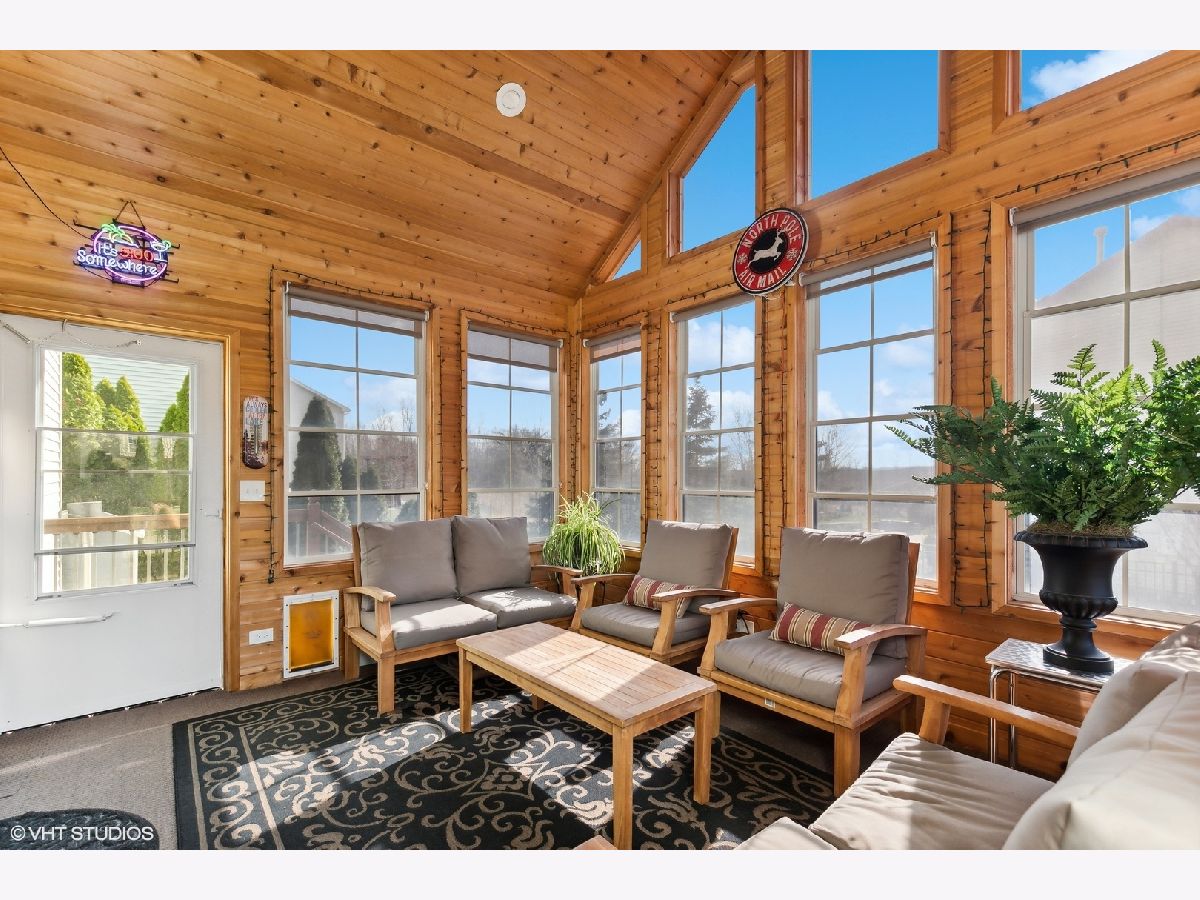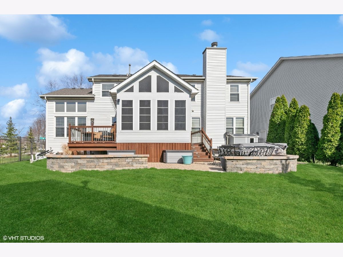 Impressive entry through the front door as you take in the open and spacious floor plan of this Summerhill model. With hardwood floors throughout, this home has so much to offer. A formal living and dining room adorned with dramatic ceilings leads you to the upgraded gourmet kitchen boasting 42"Maple cabinets, newer quartz countertops, and custom backsplash. Newer stainless-steel appliances, recess lighting, crown molding, and breakfast island with eat-in area complete to heart of this home. Newer sliding glass doors lead you to the stunning 3 season room featuring vaulted cedar ceilings, hurricane filmed windows, a tv/bar area, recess lighting, doggie door, and adjacent to two outdoor areas, making this home perfection. Not to be outdone, the sizeable family room showcases a stone surround gas log fireplace that can also be converted to a woodburning option. French doors lead you through to the den/office space, featuring recess lighting. A convenient laundry room completes the first floor. Make your way upstairs to the primary luxury suite that includes tray ceiling, massive walk-in closet, a separate spare closet, and a luxury on suite. With a separate soaker tub, dual vanity with upgraded faucets, a shower featuring glass doors, and a skylight this primary bath could you be your own private oasis. The second and third bedroom are of ample size and share the Jack-n-Jill bath. The fourth bedroom to showcase the upgraded princess suite with a full private bath and walk-in closet. A full basement highlights 9ft ceilings, roughed-in bath, and framework ready for your finishing touches. Professionally landscaped surroundings make this backyard your own retreat. Easy maintenance provided to your outdoors with a sprinkler system and 6ft wrought iron style fence with grand double lock gates. Extensive brick work done has been done throughout the front and back, giving you many areas for entertaining, complete with a hot tub. This home was freshly painted (2023), has new carpet (2023), a High Efficiency hybrid furnace (2022), central a/c (2022), hot water heater (2021), roof (2018), and upgraded replaced windows throughout (2005). Don't miss out on this meticulously maintained home situated in a cul-de-sac of the desirable neighborhood of Algonquin Lakes featuring walking/biking paths, elementary school, park/playgrounds, basketball courts, baseball fields, frisbee golf and so much more... Hurry this one will not last long!