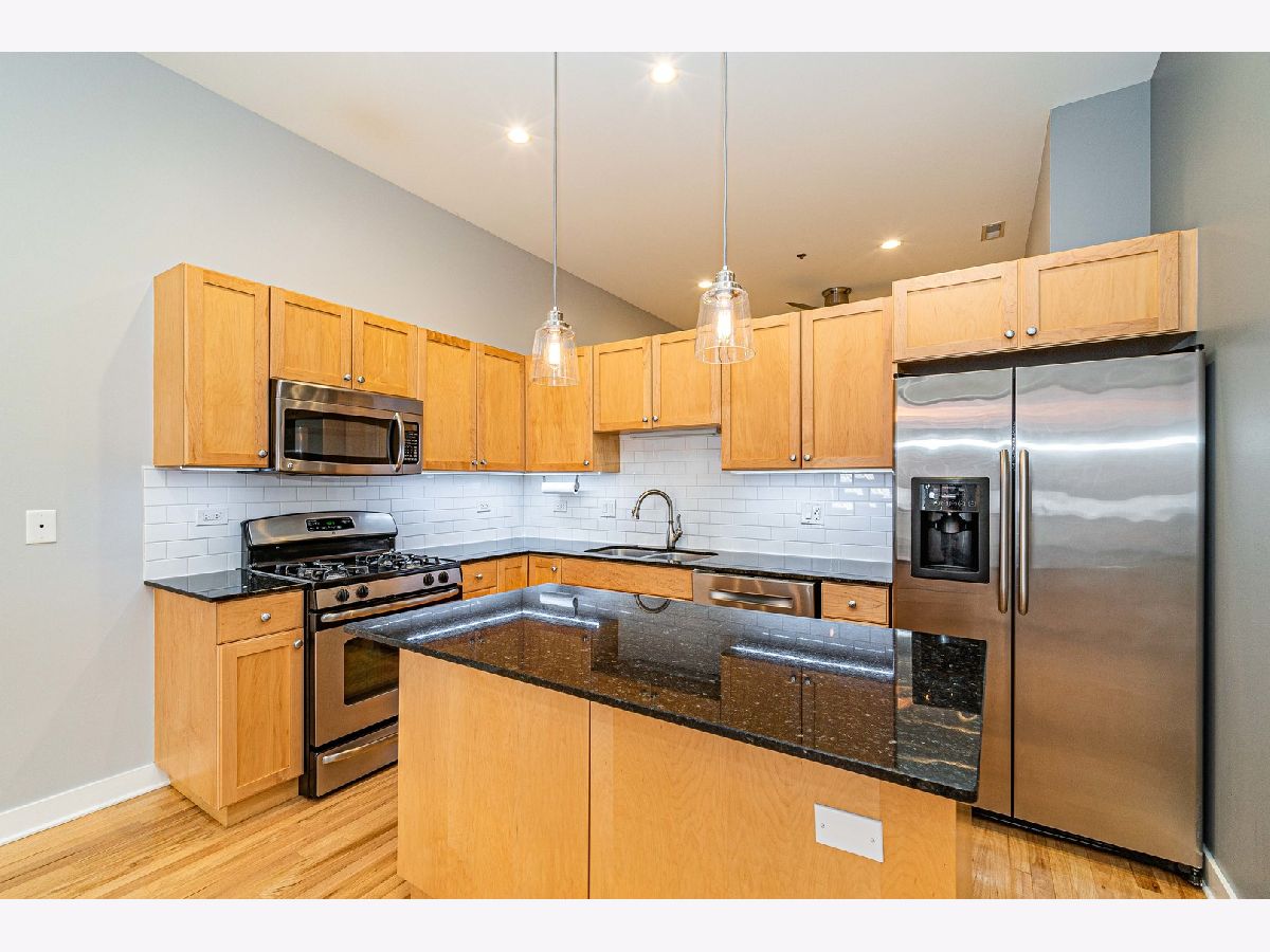 A truly great opportunity to acquire a Spectacular, Immaculate, Spacious, Contemporary 2BR/2BA PENTHOUSE condo in the building w/elevator located in very Fast Growing Area. ATTENTION ALL BULLS & HAWKS FANS AND CONCERT LOVERS - 2 blocks west of the UNITED CENTER. Right by the West Loop! From the balcony view of the Willis Tower. Unit features: Hardwood Floors, kitchen with Granite Countertops, large Island Breakfast Bar, custom maple cabinets, SS Appliances, Huge Windows saturating your home with lot of Sunlight. Tons of storage space. Closets with Elfa system. Energy efficient LED mini "cans" added throughout all ceiling areas. In unit Washer and Dryer. Private Balcony with stainless steel grill included. Heated garage, parking space # 31. Low Assessment and reasonable property taxes. Well maintained building. RENTAL ALLOWED. Near: public transportation including: Blue Line and new green line Damen train stop that's being built, Grocery Store, Walgreens, top notch Restaurants/nightlife in the vibrant West Loop, Medical District and Library. Easy access to downtown, I 290 access. Fantastic opportunity for Owner-Occupant, Investor. Nothing to do but Move In and enjoy this fantastic unit. Come check it out, you will love living here!!!