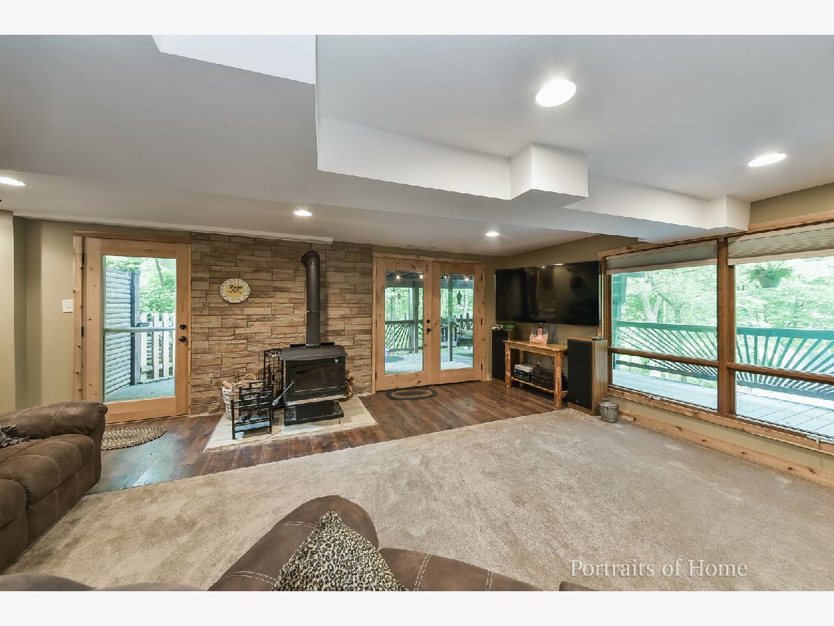Enjoy resort style living with this "in town" classic ranch home with a full walk out basement. Be welcomed by the front deck with plenty of room to sit and take in the beautiful weather. From the 2 wood burning stoves to the 3 decks overlooking the pool area find plenty of ambiance for all seasons. This home has been updated with a consistent cabin style throughout with hardwood floors, hickory cabinetry, wood details, and solid doors. Kitchen has gorgeous cabinetry with stainless appliances. Old barn wood log railings open to the fully finished basement. Dining nook is separated from the vaulted and beamed living room by a wood burning fireplace. 3 bedrooms including the primary suite all have new windows. The primary has a luxury bath with a stand alone tub, stone shower and double vanity. The full walk out basement is open and spacious with ample amount of windows overlooking the lower deck and also a private patio surrounded by mature landscaping. Come have good times with newer pool surrounded by a deck. This versatile space is perfect for an additional family room, game room or whatever your needs. Newer roof, HVAC and some windows. Fall in love with the multiple porches, decks, and landscaping... a true nature lover's dream!!!