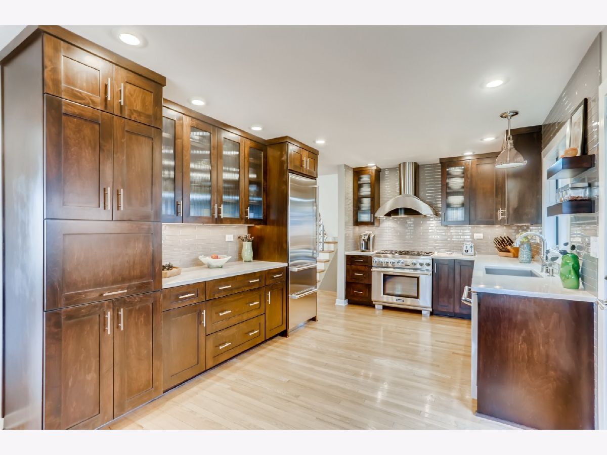 Stunning mid-century contemporary beauty! Located in one of Arlington Heights finest tree-lined streets with top schools within walking distance. This bi-level has been lovingly renovated from architectural roof to double pane windows to all new solid wood doors, recessed lighting, sparkling light fixtures and much, much more. The sellers have painstakenly worked on the details to express their unique style; this home has an elegant feel the moment you set foot; you will feel at peace with the clean lined interior and expressions its modern attributes. The three-bedroom, three-bathroom show-stopper invites you in with a paver block walk to the main entrance which is tucked between the garage and the house. Step inside the sleek home and there you will see how the rooms seamlessly flow into each other. The inviting well-lit sunny living room is open to the dining room that faces the designer chef's kitchen. With 6-burner Thermador range & dishwasher and slimline Subzero, custom stainless steel Vent-a-Hood and hidden microwave it appeals to novice as well as expert cooks. Kitchen also features mission style cabinets, quartz countertop, Kohler farmhouse sink, Milano glass tile and more. Don't miss the three full bathrooms that have been totally updated with modern finishes including quartz, marble, and all Kohler. Family room includes custom cabinetry and updated wood fireplace. The home also includes a finished gym/utility room and plenty of closets. You can step outside from lower level and find yourself in a gated backyard retreat complete with Chicago paver block patio, stone sitting wall, and flagstone sitting area for relaxing and taking in the professional landscaped expansive yard with assorted trees and plants. Most of the renovations occurred in 2014. New high efficiency furnace and AC in 2020.