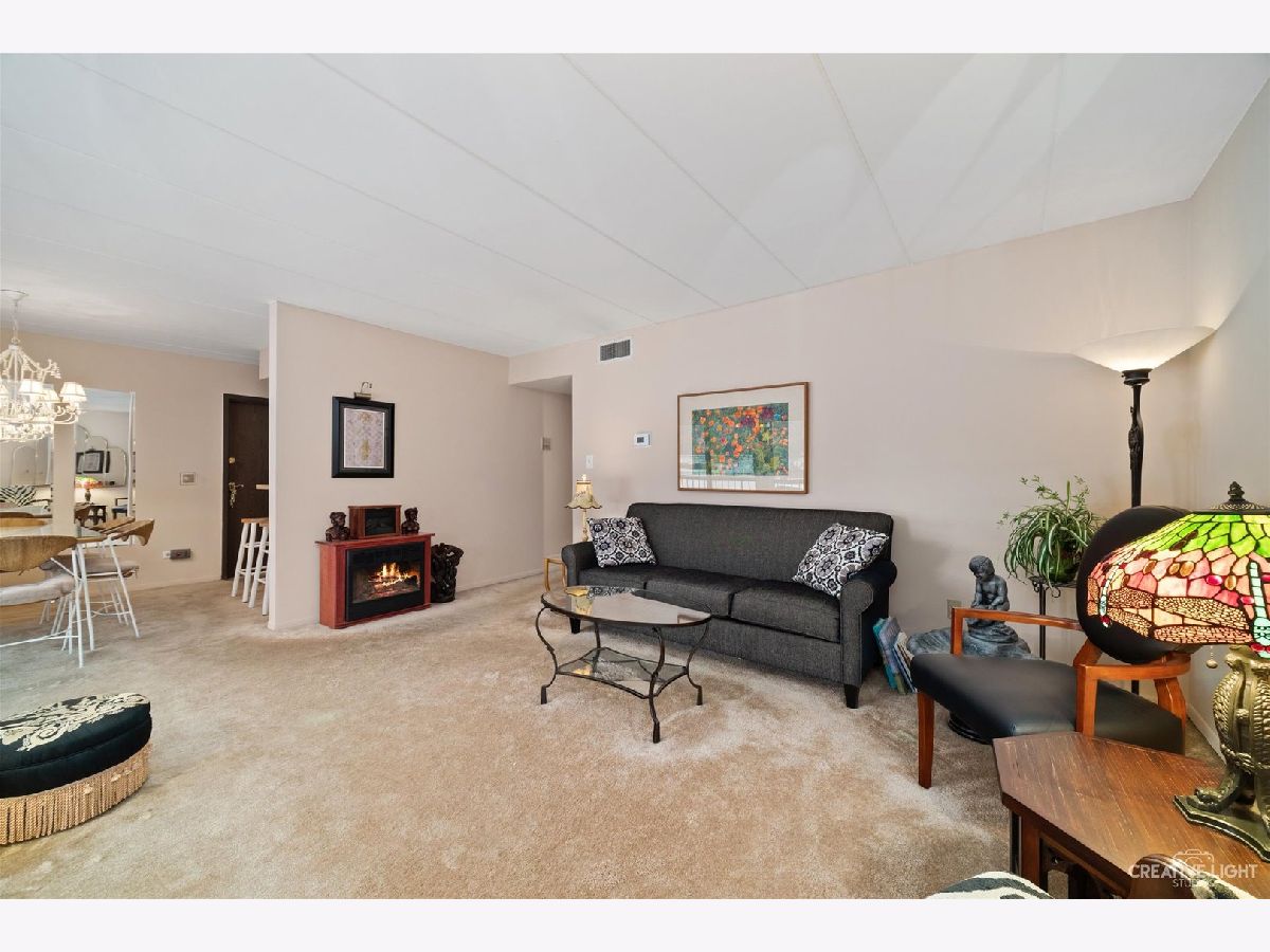 A ground-floor two bedroom condo with serene pond view is waiting for you in Lombard! Remove your shoes in the tiled foyer upon entry and relax in the spacious and bright living room which features a new glass sliding door with access to the patio and its peaceful views of the tranquil nature setting. The kitchen boasts new appliances and is open to the dining area, allowing you to entertain seated guests while preparing meals. A hall bathroom nearby is perfect for guests and fellow residents and closet with IN UNIT Laundry. A sizable master bedroom suite includes it's own private, full bathroom for your convenience. A second large bedroom, which could be used for a variety of different purposes, completes this unit. Additional updates include newer windows, newer furnace and central air conditioning, newer washer and newer dryer. All of this...located near prime shopping at Yorktown Mall, amazing schools and tons of great restaurants with easy expressway access. This is your chance, don't miss this one!