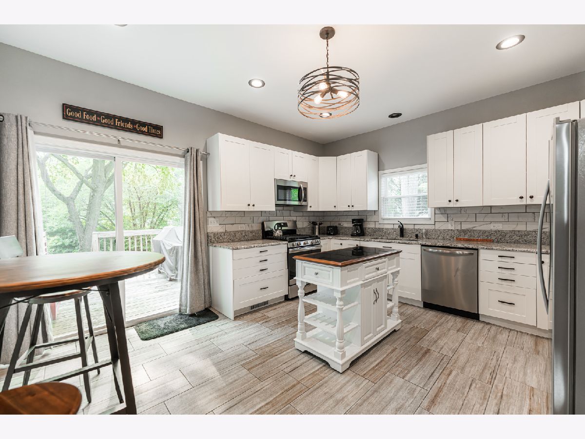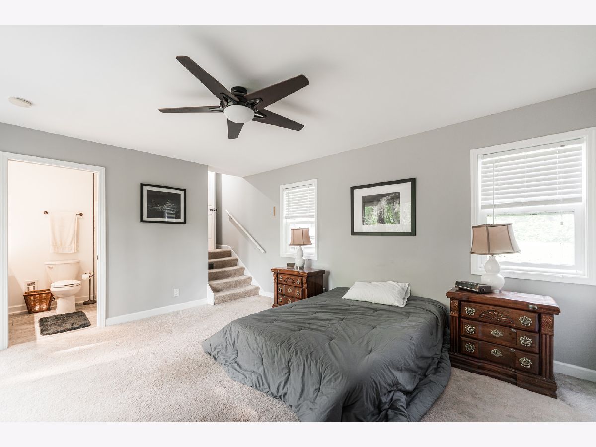 Beautiful riverfront property! From the moment you walk in the foyer you'll know it's the one! Spacious living room and dining room with hardwood floors and a bay window in the dining room. Updated kitchen with 40" white shaker cabinets, two lazy susans, newer tile flooring, stainless steel appliances and granite countertops. Relax on the wood deck off the kitchen overlooking the river. Three full bathrooms all updated. First floor has over 9 foot ceilings. Master suite has a triple sliding door that leads out to the paver patio, two closets and beautiful attached bath with solid wood vanity, double sink bowls, marble top and decorative tile shower. 2nd floor features a loft / sitting area, full bathroom, and two large bedrooms with walk in closets and brand new carpeting. 4th bedroom would be a perfect office, playroom, or in-law suite. Close to Fox River Trail, park, dining. This is it!