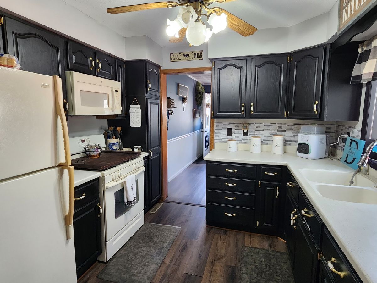 Move right into this well maintained 3 bedroom, 2 story home close to schools, park and the business district,. Spacious throughout. Large living room and separate dining room. Updated kitchen with newer cabinets and solid surface countertops and back splash. There is also a Main floor master bedroom, main floor full bath and Laundry room. Newer 3/4 bath and 2 bedrooms on 2nd floor. New flooring throughout. Outside you have a nice patio area overlooking the extra large fenced backyard with firepit (.46 acre).and a large 2 car garage.