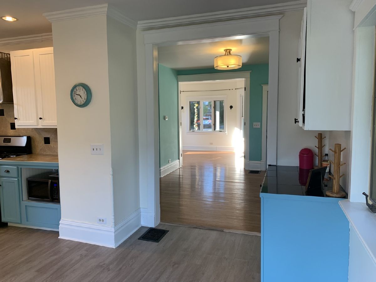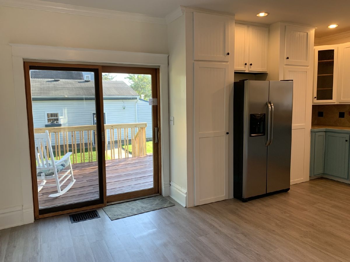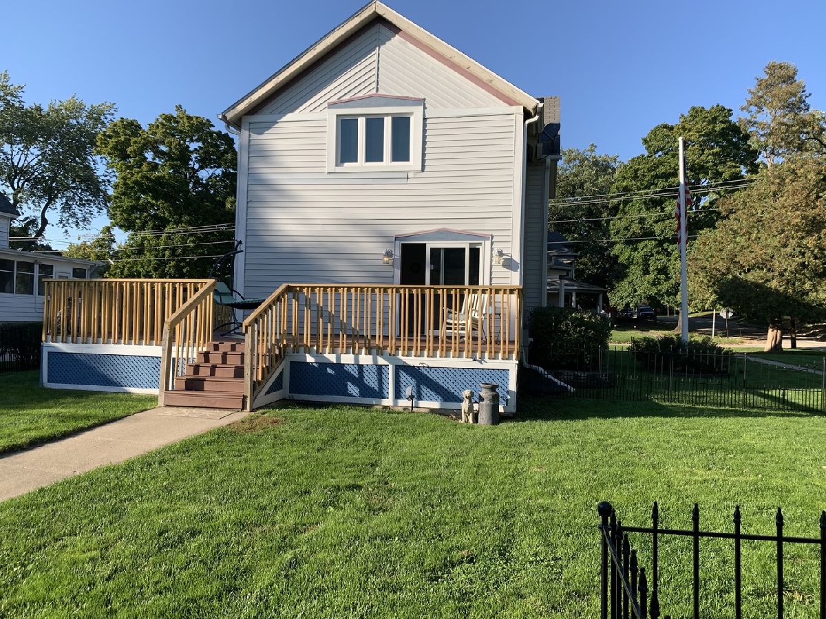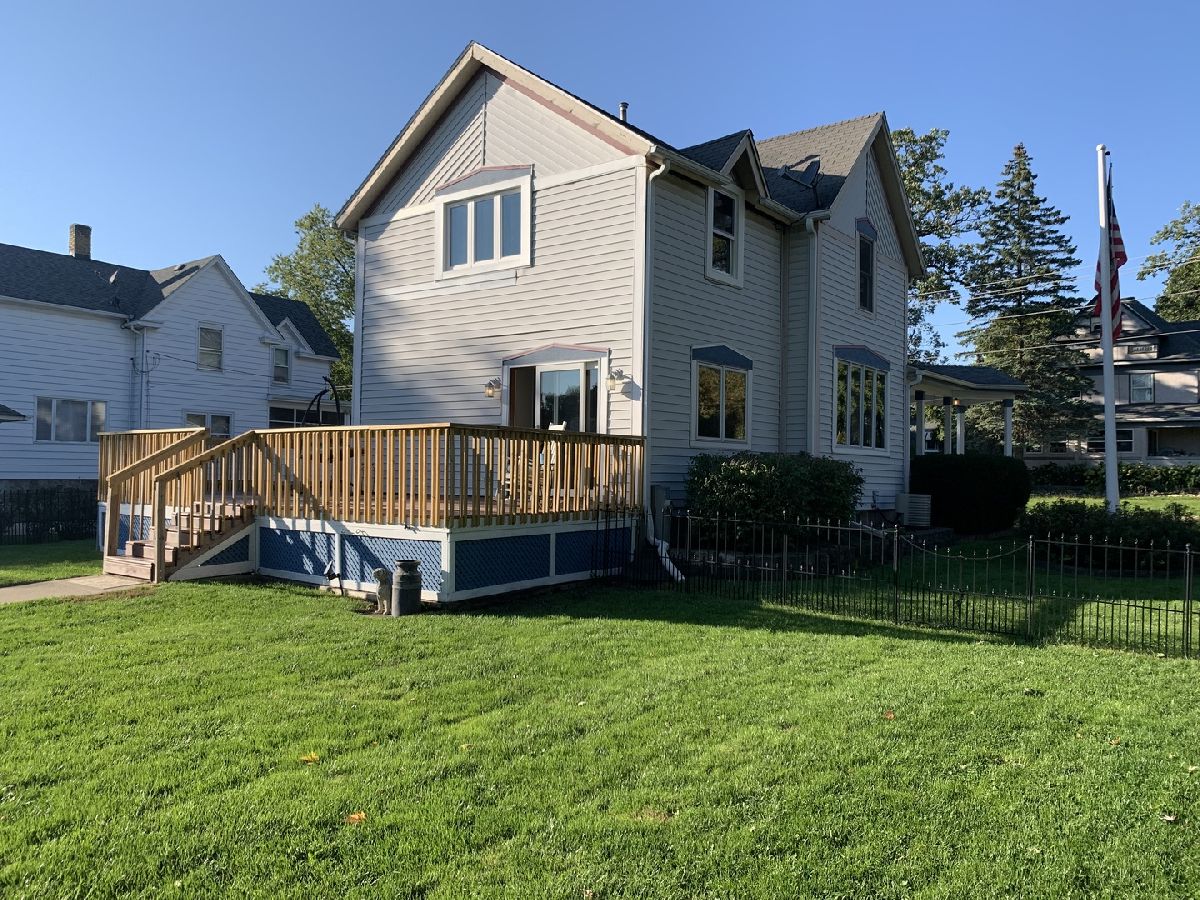 This modern-inspired residence showcases a perfect blend of timeless elegance and contemporary design, offering a comfortable and stylish living experience. Enter the charming covered front porch to check out this sharp century old home. Built in 1908, it has hardwood floors, clean lines, open floor plan, 3 good-sized bedrooms, and bathrooms on all 3 floors.The dining room is spacious & opens to both the living room & kitchen which has a wine bar area. Full unfinished basement with laundry and potential for workshop, hobby area, and/or storage. Garage is oversized with a workshop area. Don't be fooled by the corner lot cause it has plenty of fenced in yard space plus huge deck that wraps around the back of home.This home is also incredibly dog-friendly, featuring a convenient doggy door that allows your furry friend to come and go as they please.