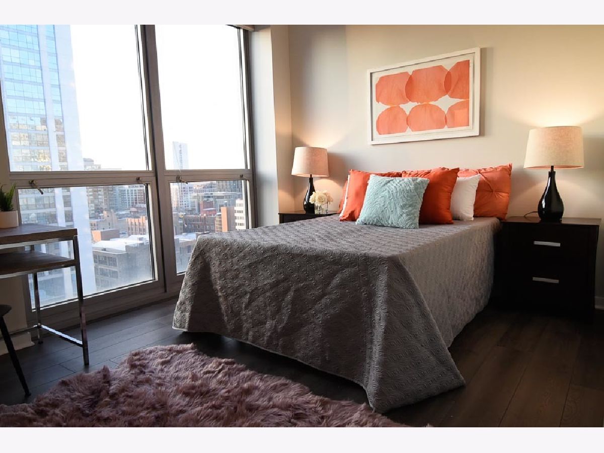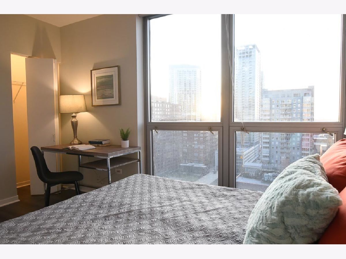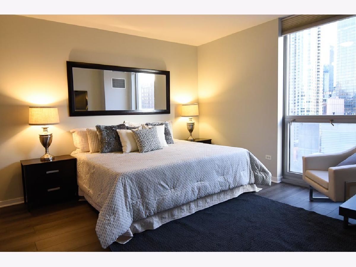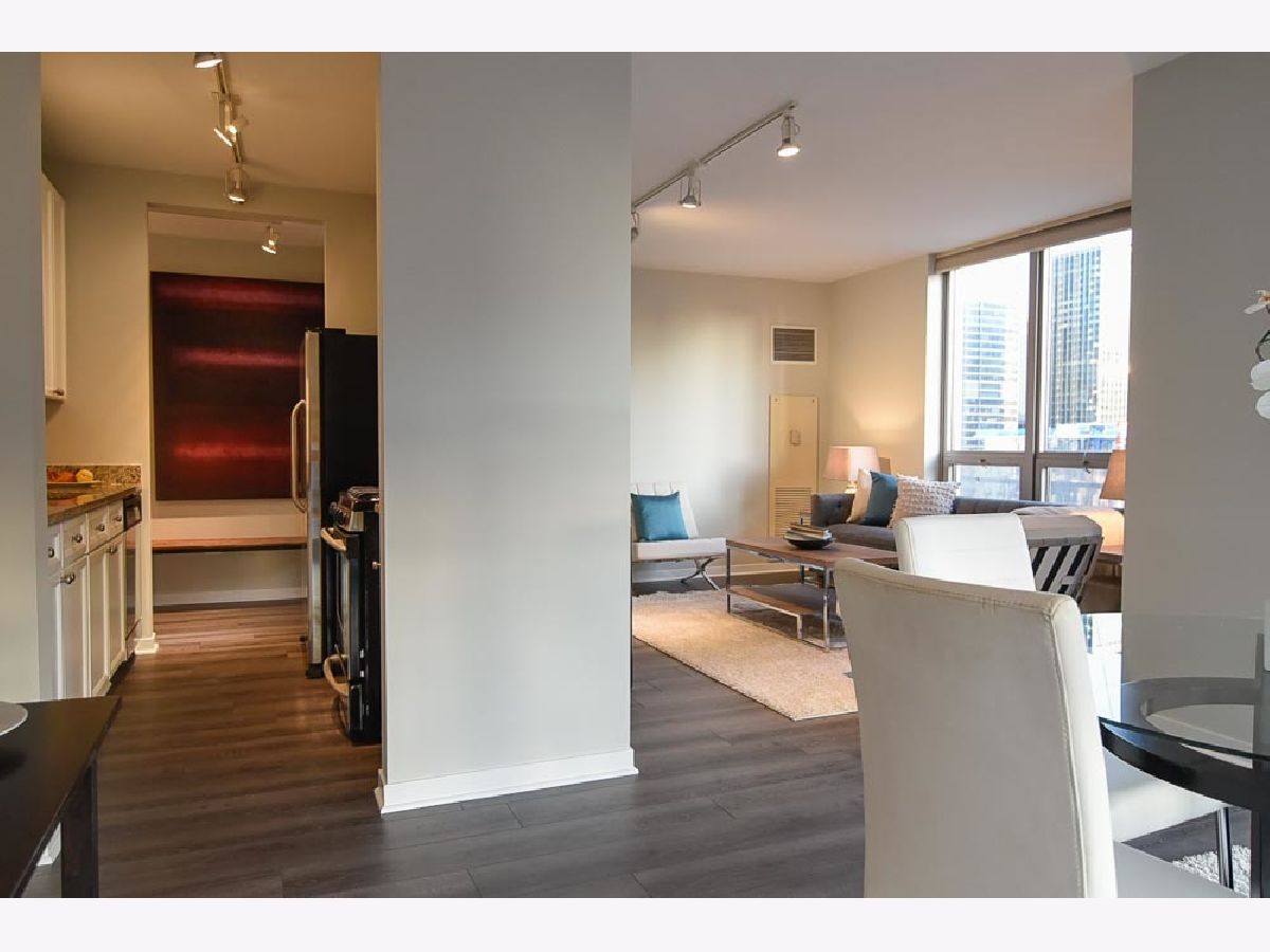 Spectacular views in River North! Relax after work and watch the sun set over the city from your 18th floor balcony! SW corner unit with floor to ceiling windows overlooking Merchandise Mart, Willis Tower and Binny's Beverage! The views are gorgeous from this split 2 Bedroom, 2 Bath home. Classic granite counters and Stainless appliances offset the recently painted white wood cabinetry! Floor to ceiling windows in the living and dining rooms create a bright and expansive feel to the space. Freshly painted with brand new vinyl plank flooring - so this unit looks sharp and is available for immediate occupancy! The primary suite features a spacious walk-in closet and large bath with soaking tub and separate shower. The guest bedroom has an entire wall of closet space! The in-unit washer/dryer room is wonderfully convenient and features additional storage. Garage spot #101 is included in the asking price! Well-managed building with an excellent door and engineering staff means that it's a pleasure to come home here! Workout facility and sundeck located on the sixth floor, and the convenience store is right out front Right in the heart of the city - fun, food, and transportation - and just a short stroll to the lakefront & park that is such a jewel for Chicago. Assessment includes heat, air, wifi, gas & cable TV. Put this one on your "must see" list!