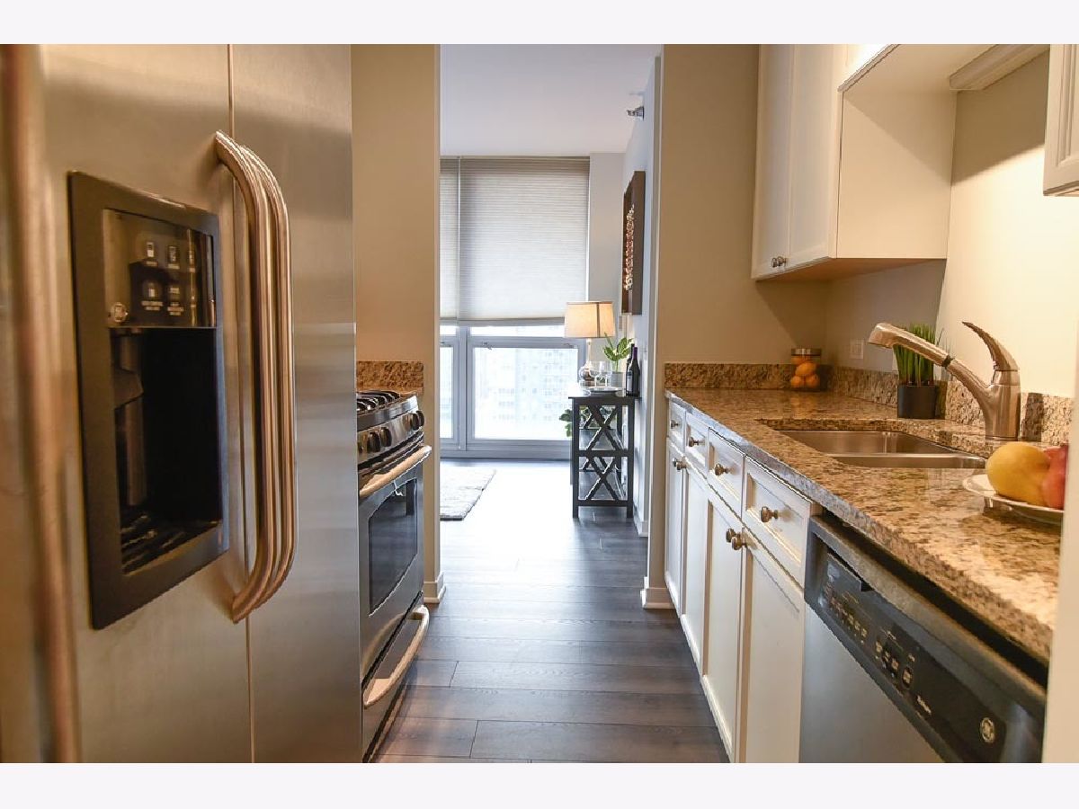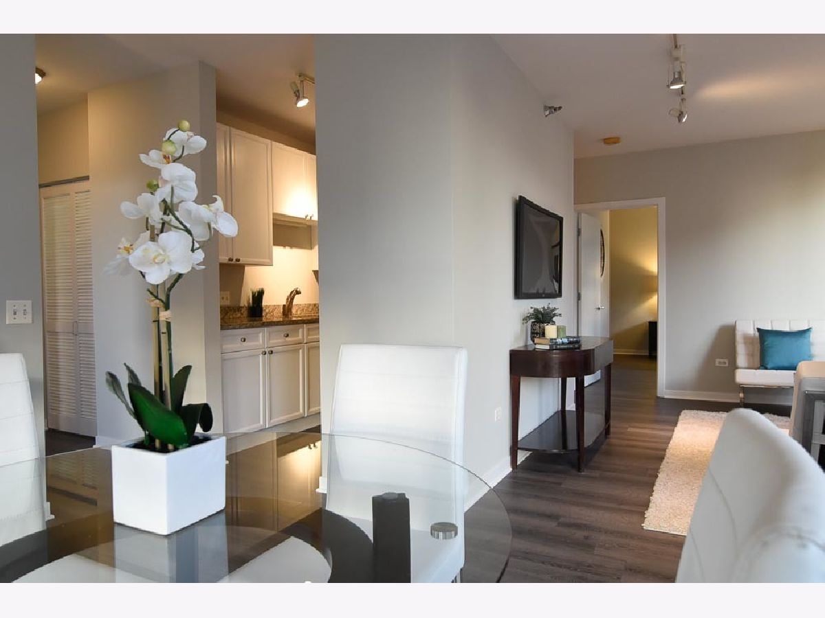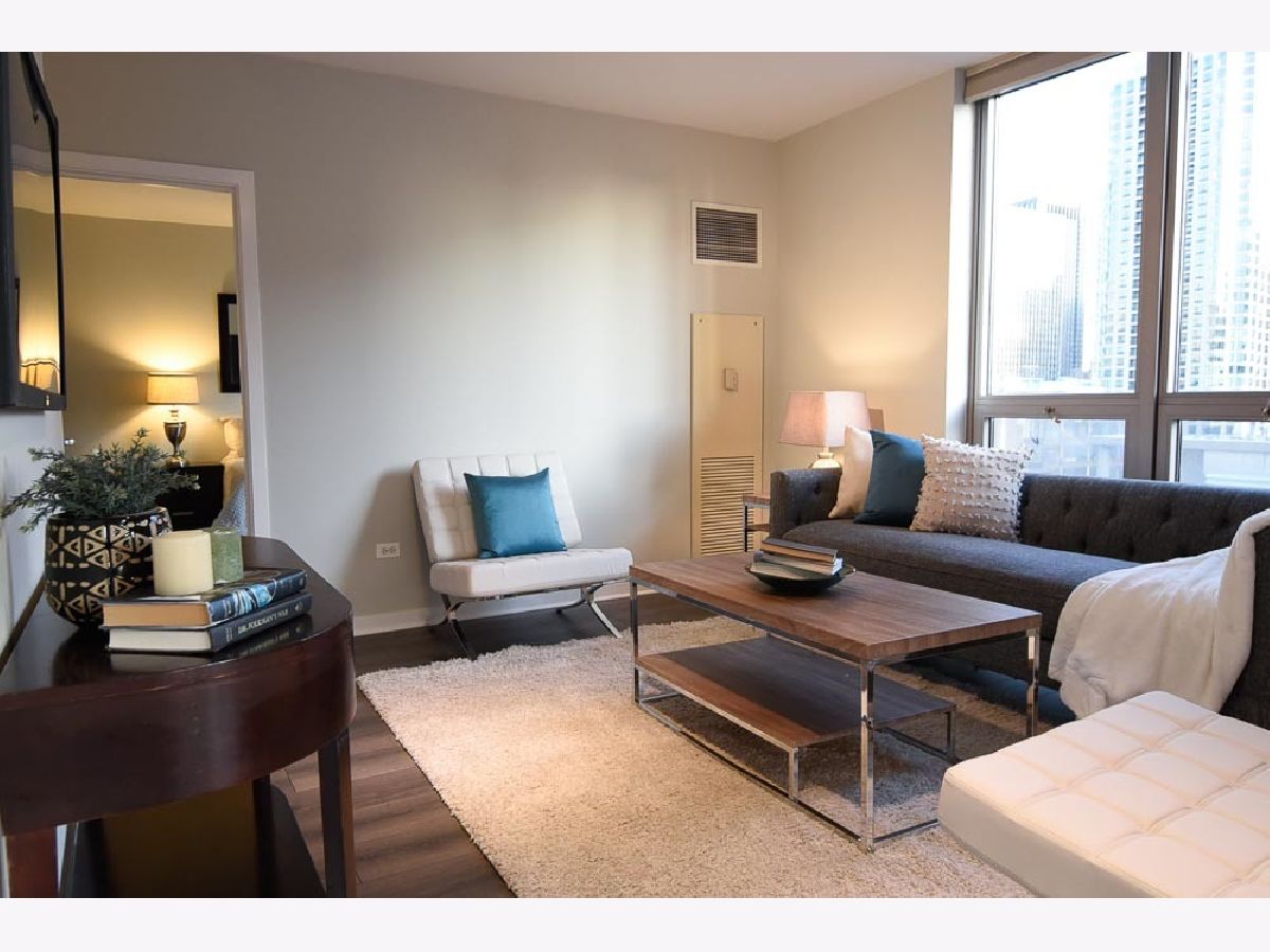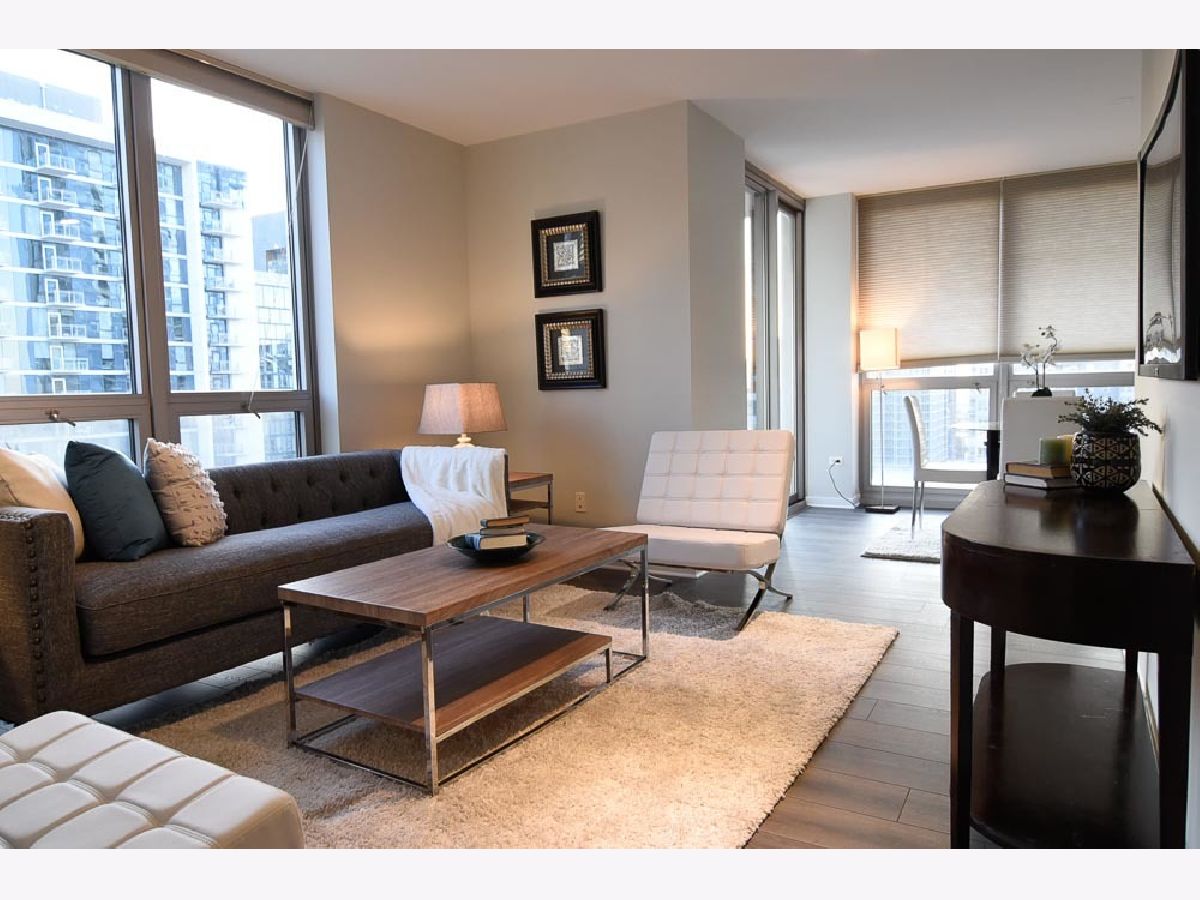 Spectacular views in River North! Relax after work and watch the sun set over the city from your 18th floor balcony! SW corner unit with floor to ceiling windows overlooking Merchandise Mart, Willis Tower and Binny's Beverage! The views are gorgeous from this split 2 Bedroom, 2 Bath home. Classic granite counters and Stainless appliances offset the recently painted white wood cabinetry! Floor to ceiling windows in the living and dining rooms create a bright and expansive feel to the space. Freshly painted with brand new vinyl plank flooring - so this unit looks sharp and is available for immediate occupancy! The primary suite features a spacious walk-in closet and large bath with soaking tub and separate shower. The guest bedroom has an entire wall of closet space! The in-unit washer/dryer room is wonderfully convenient and features additional storage. Garage spot #101 is included in the asking price! Well-managed building with an excellent door and engineering staff means that it's a pleasure to come home here! Workout facility and sundeck located on the sixth floor, and the convenience store is right out front Right in the heart of the city - fun, food, and transportation - and just a short stroll to the lakefront & park that is such a jewel for Chicago. Assessment includes heat, air, wifi, gas & cable TV. Put this one on your "must see" list!