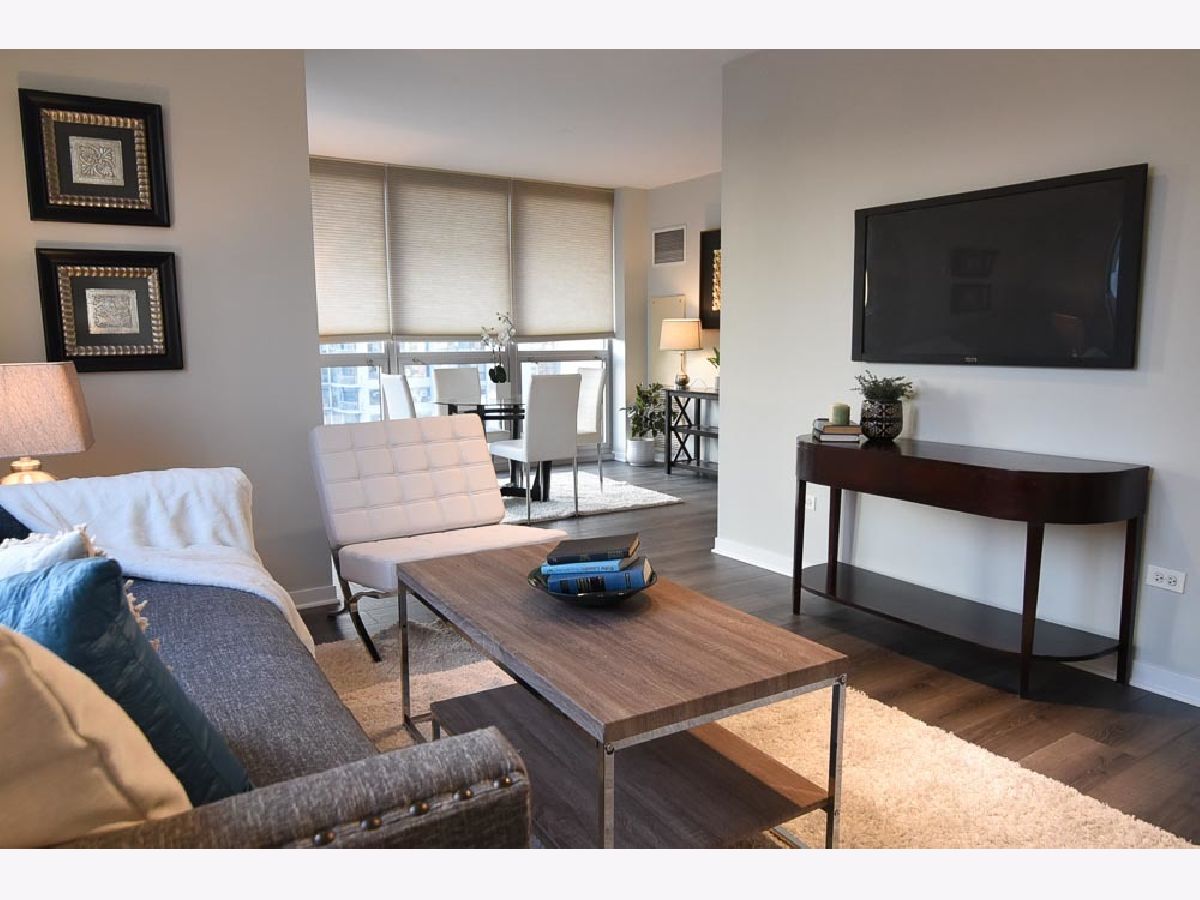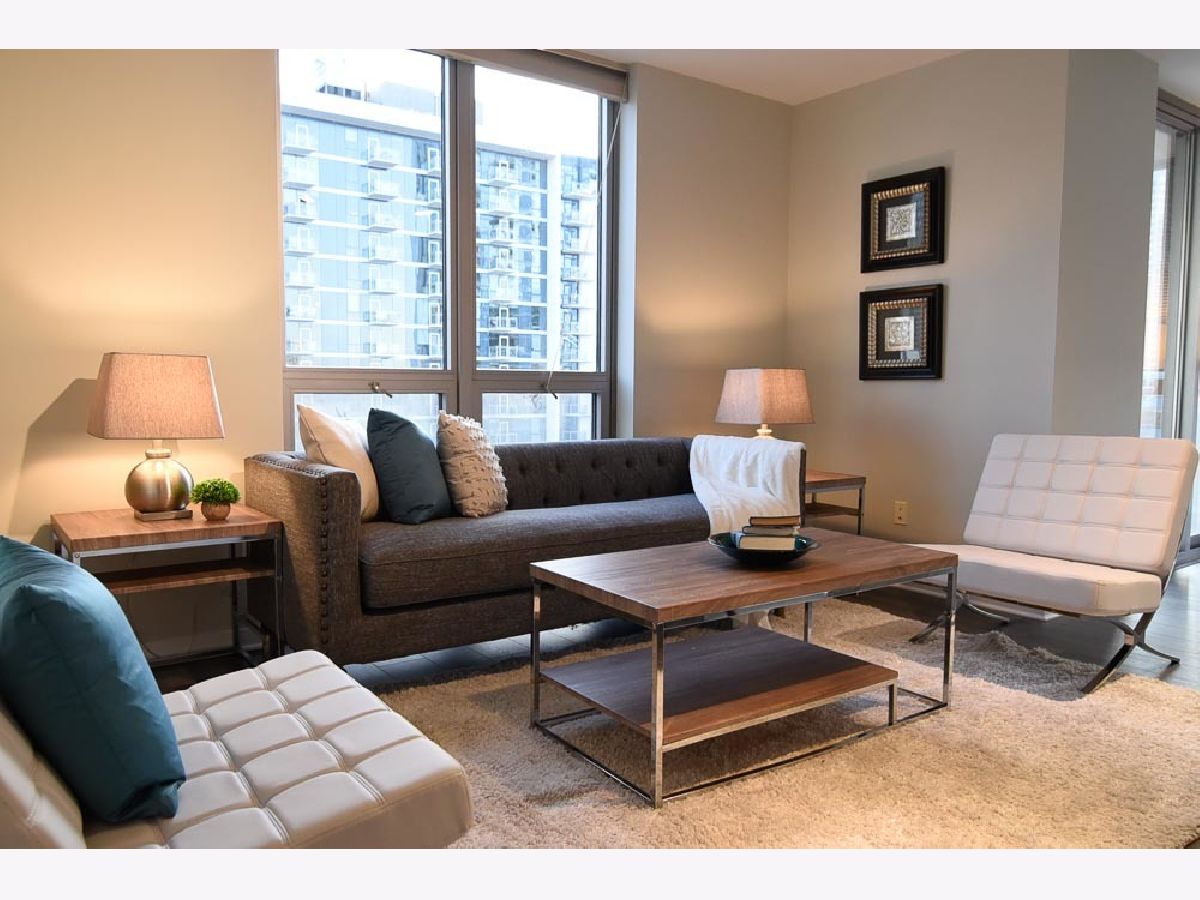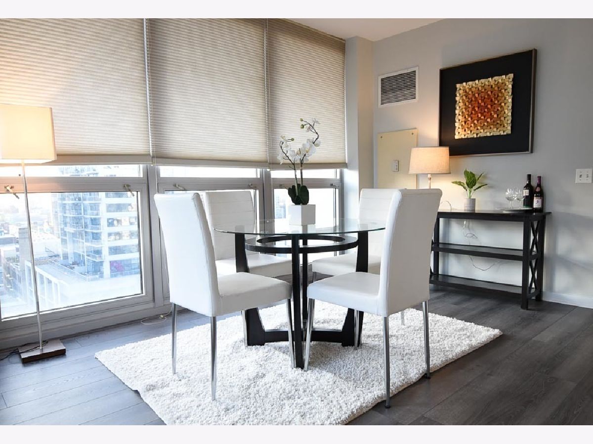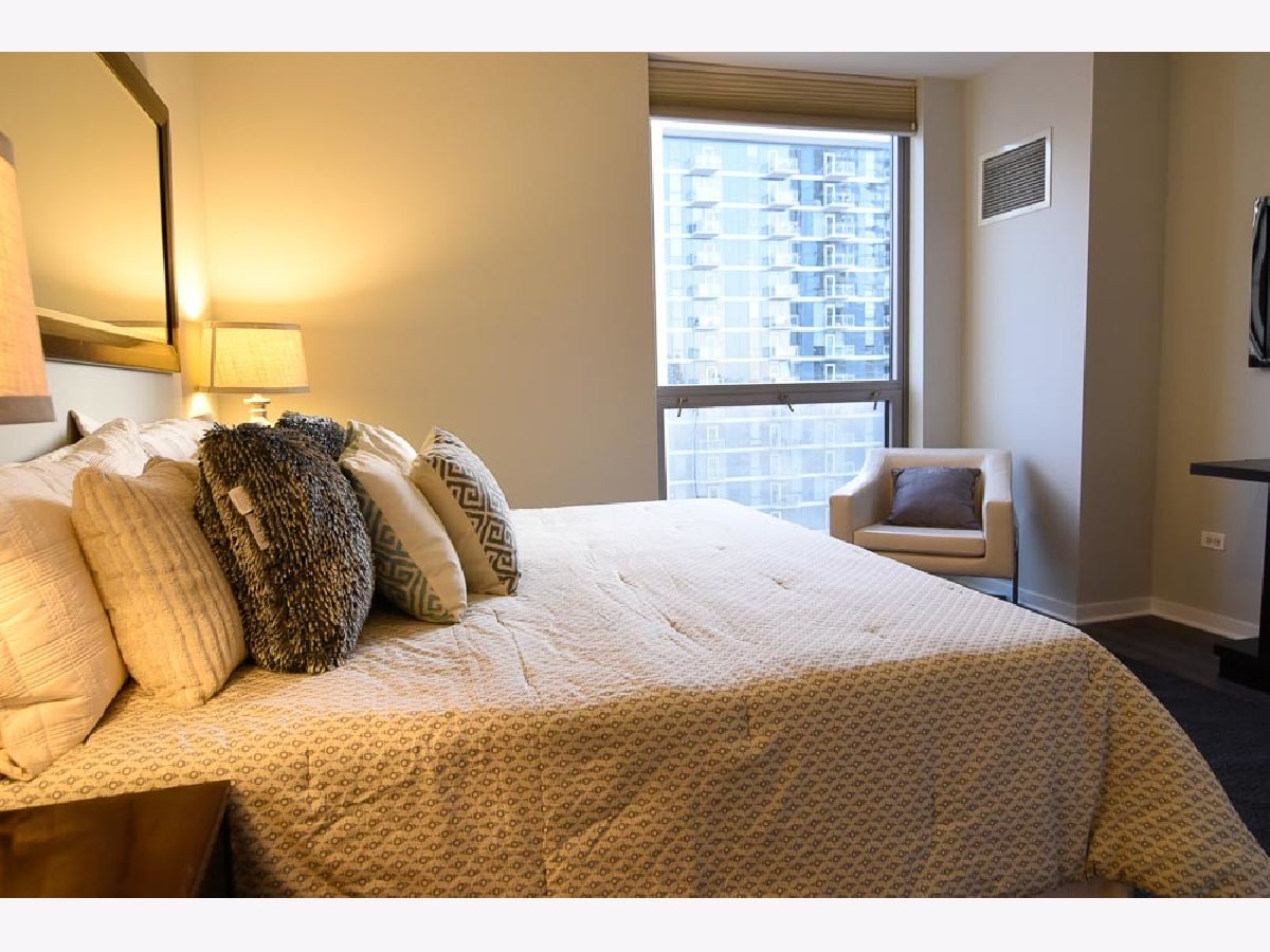 Spectacular views in River North! Relax after work and watch the sun set over the city from your 18th floor balcony! SW corner unit with floor to ceiling windows overlooking Merchandise Mart, Willis Tower and Binny's Beverage! The views are gorgeous from this split 2 Bedroom, 2 Bath home. Classic granite counters and Stainless appliances offset the recently painted white wood cabinetry! Floor to ceiling windows in the living and dining rooms create a bright and expansive feel to the space. Freshly painted with brand new vinyl plank flooring - so this unit looks sharp and is available for immediate occupancy! The primary suite features a spacious walk-in closet and large bath with soaking tub and separate shower. The guest bedroom has an entire wall of closet space! The in-unit washer/dryer room is wonderfully convenient and features additional storage. Garage spot #101 is included in the asking price! Well-managed building with an excellent door and engineering staff means that it's a pleasure to come home here! Workout facility and sundeck located on the sixth floor, and the convenience store is right out front Right in the heart of the city - fun, food, and transportation - and just a short stroll to the lakefront & park that is such a jewel for Chicago. Assessment includes heat, air, wifi, gas & cable TV. Put this one on your "must see" list!