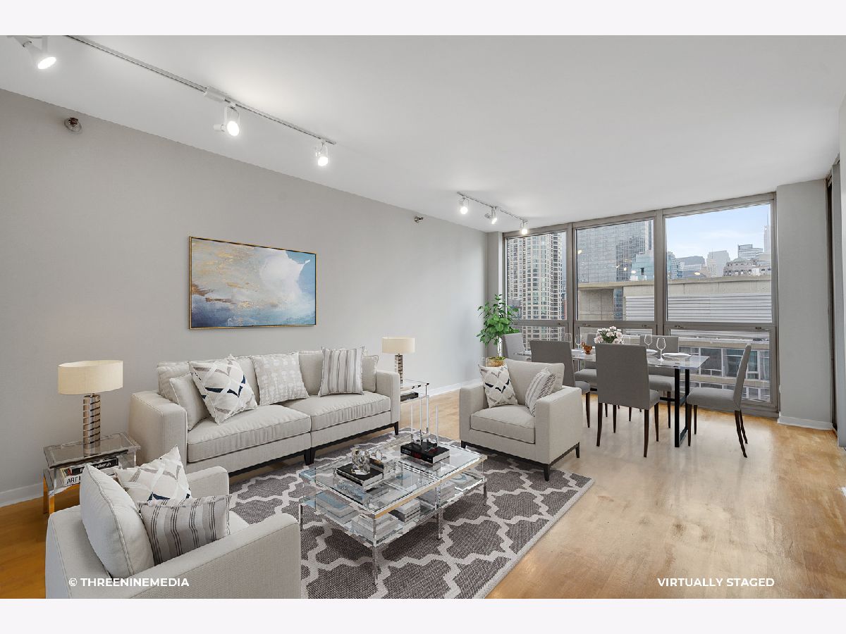 PARKING INCLUDED! Beautiful updated south facing 1 bedroom with a spacious balcony in one of River North's best buildings (The Grand on Grand) Available NOW! Updated kitchen cabinets, freshly painted, this unit has floor to ceiling windows and the best views of Chicago! The kitchen includes granite countertops and opens into a spacious living and dining room space perfect for entertaining! The large master bedroom boasts a great custom walk in closet. Washer/dryer included in the unit. The building includes a 24-hour door staff, fitness center, a spacious sun deck, a convenience store, and more! This unit is steps from the best restaurants, CTA, coffee shops.