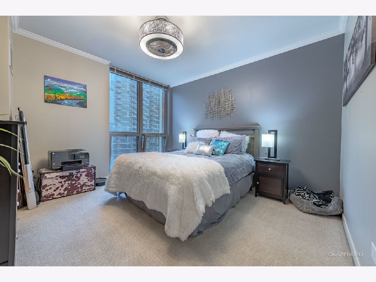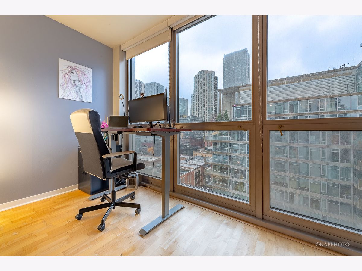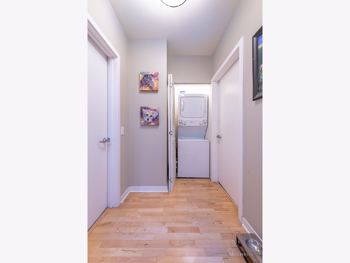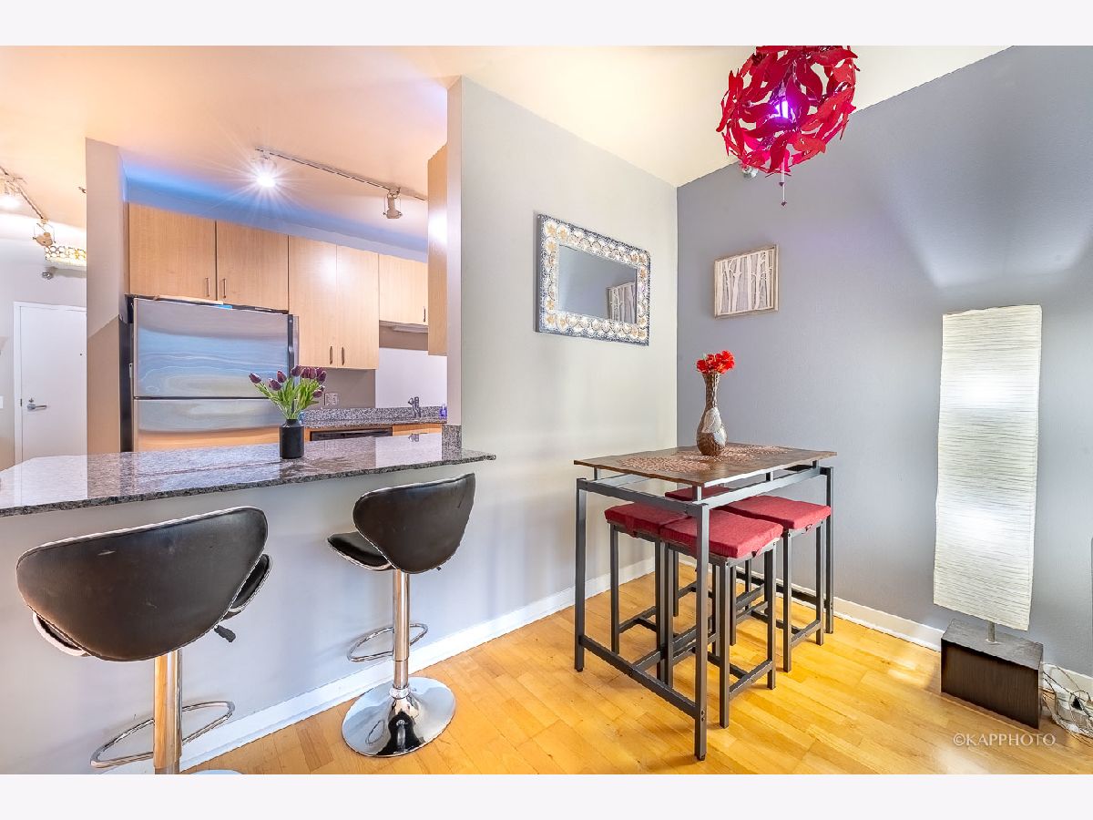 Welcome home to this spacious 1 bed/1 bath condo just on the border of Fulton River District, River West, & River North! This unit is the preferred tier in the building with a layout that maximizes space. The wide living room has floor-to-ceiling windows & access to the private balcony. South-facing exposure with breathtaking city views that span east & west, truly allows you to soak up the sun all day - even in the winter! Open concept with room for a full living area, work from home space, dining area, & an eat-in kitchen island. The kitchen is fully equipped with cabinetry, dishwasher, & stainless steel appliances. The in-unit laundry has been recently updated. There are updated fixtures throughout that really set this unit apart - bathroom vanity, cabinet storage, thoughtful light fixtures, & built-in organization systems in the walk-in closet. Featuring hardwood floors throughout the living area & a large entry foyer! The bedroom can comfortably host a king-size bed & more! The building features 24/7 doorstaff, elevators, bike storage, a fitness center, & a common patio deck with furniture & incredible views. The HOA fee covers gas, water, trash, DirectTV, internet, security, building maintenance, fitness center, & outdoor patio. You are steps away from multiple trains & bus stops, as well as local shops, restaurants, groceries, the river, & a dog park! There is also assigned garage parking sold separately for $35,000. Easy access to schedule a showing - hope to see you soon!