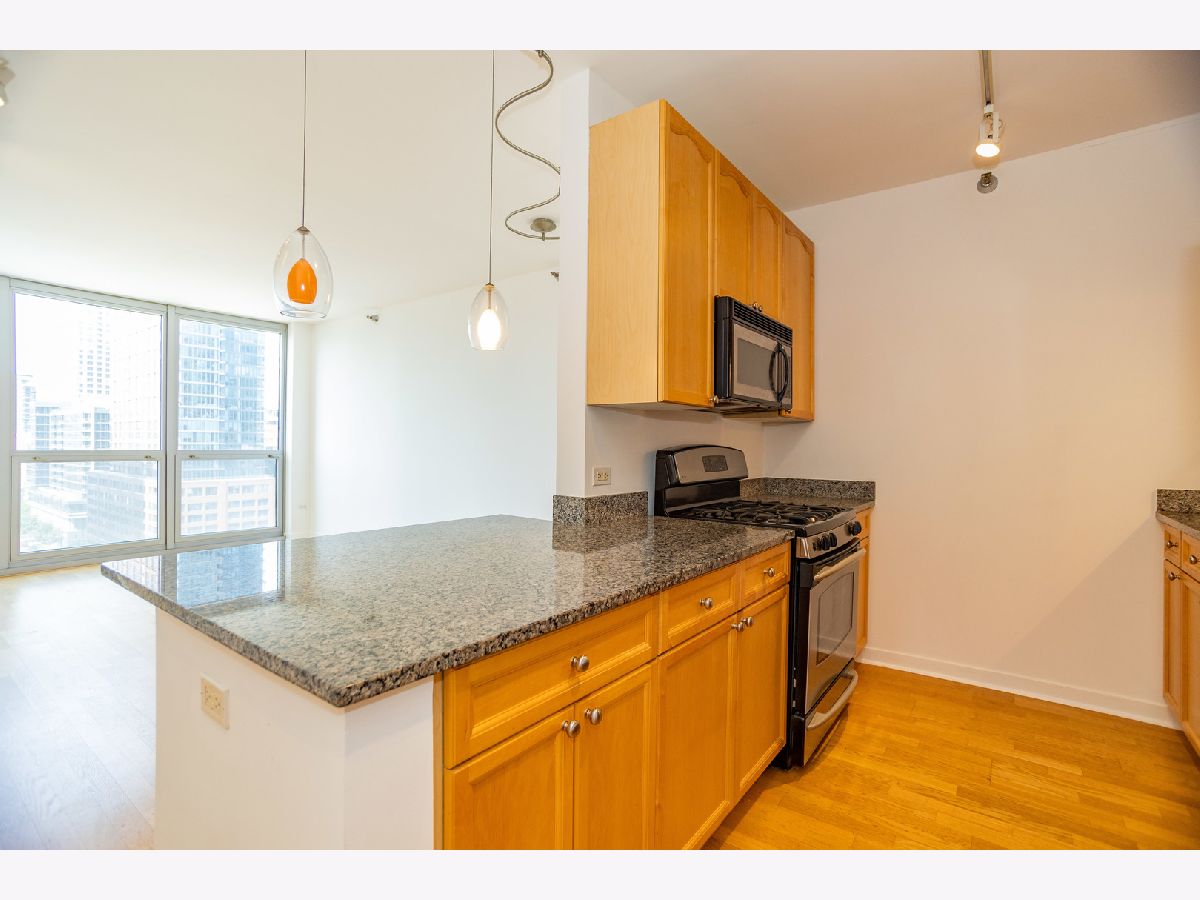 Are you searching for a large one-bedroom condo in the vibrant neighborhood of River North? Look no further! This exceptional condominium offers an array of desirable features, including beautiful hardwood flooring throughout, expansive floor-to-ceiling windows, modern stainless-steel appliances, spacious 42" cabinets, sleek granite countertops, the convenience of an in-unit washer and dryer, a generous walk-in closet, a private balcony, and breathtaking city views. Grand on Grand provides comprehensive services such as a 24/7 door staff, a well-equipped fitness center, a delightful sundeck, an on-site convenience store, a dry cleaners, storage and bike room. Within walking distance, you'll find CTA stops, the renowned East Bank Club, charming coffee shops, and an incredible selection of River North's finest nightlife venues and restaurants. The monthly HOA fee covers essential amenities like heat, cooking gas, central air conditioning, high-speed internet, cable, and access to the fitness center. This remarkable home in the heart of River North offers a perfect blend of comfort, convenience, and a vibrant city lifestyle.