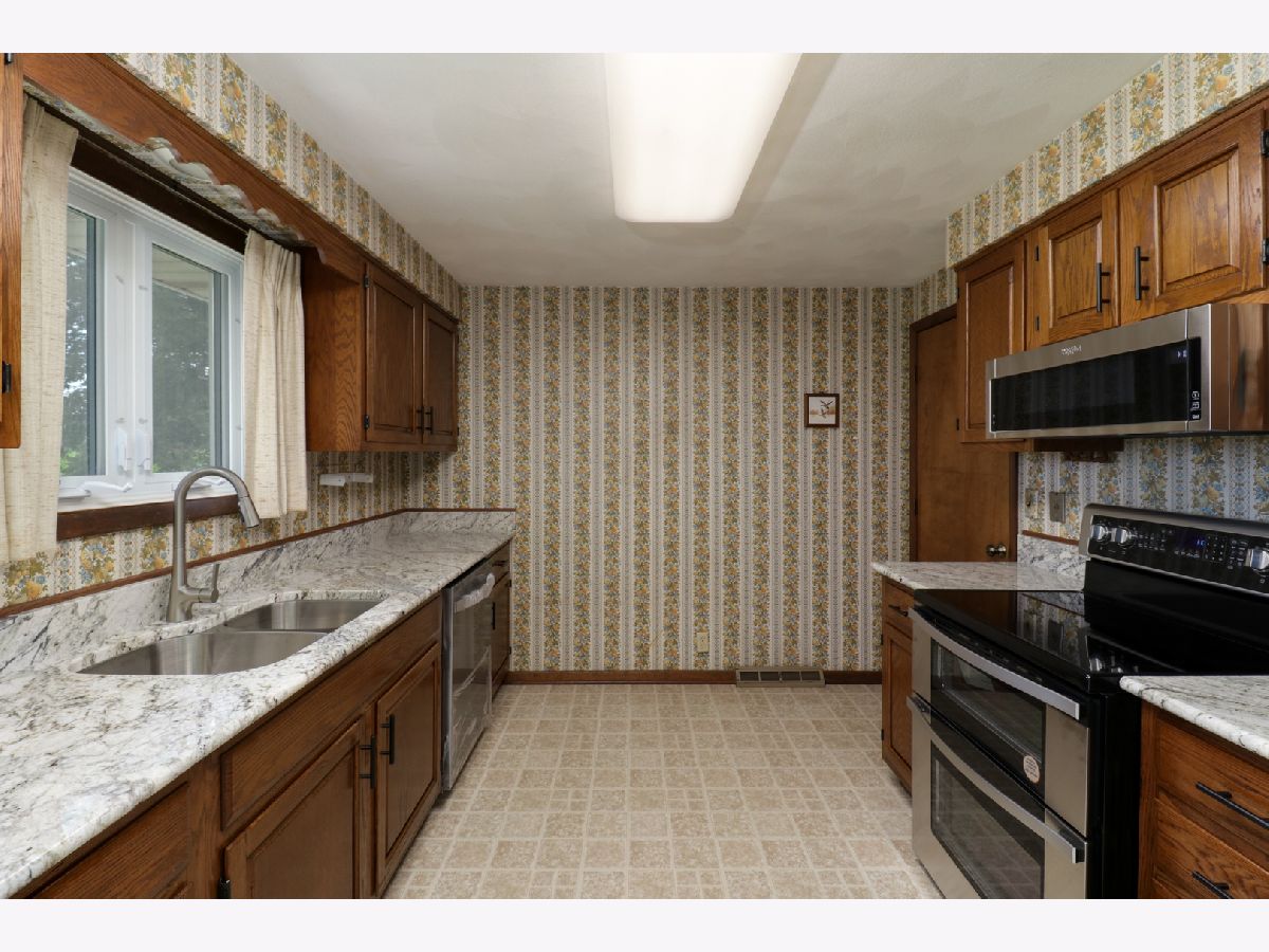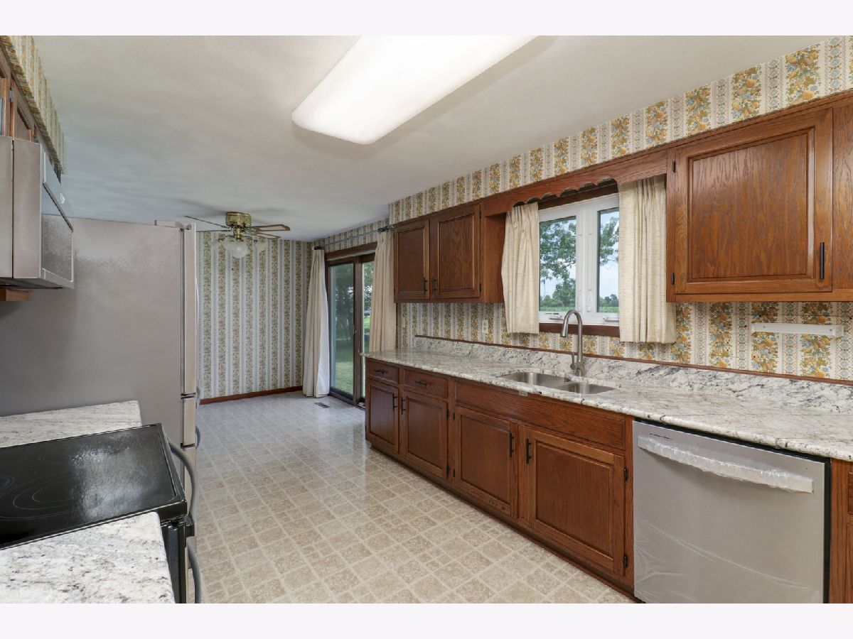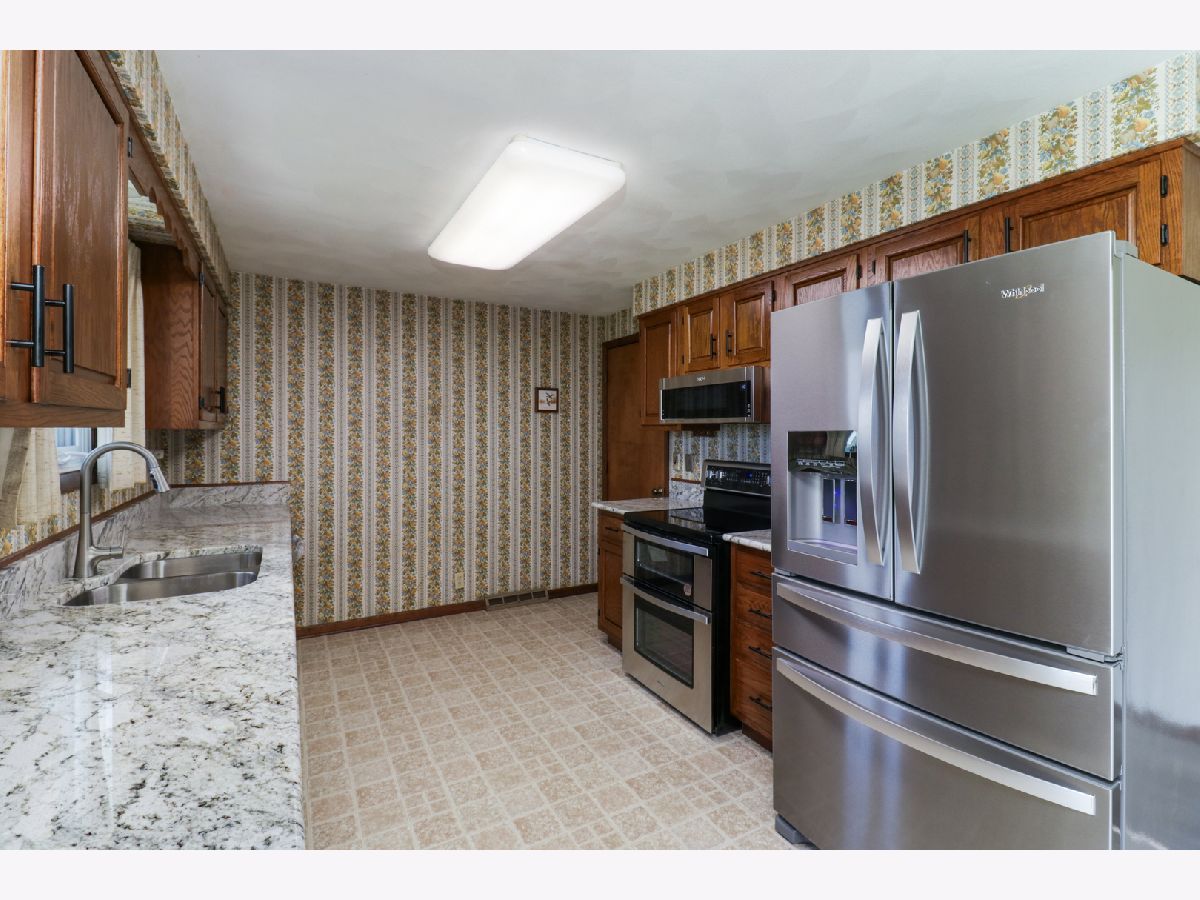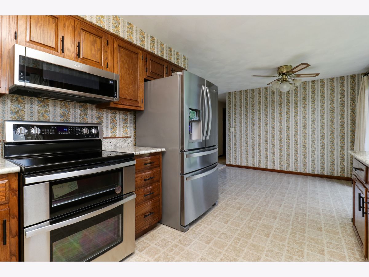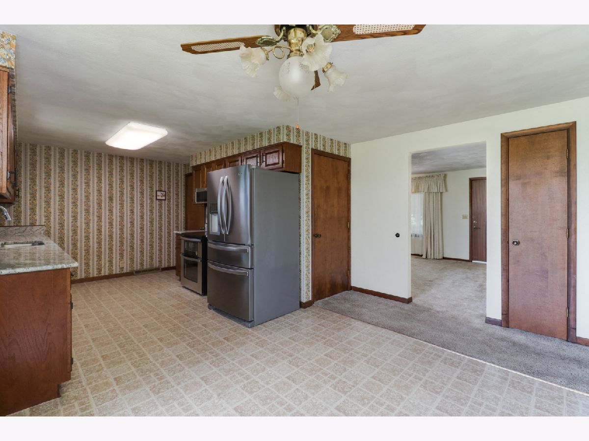 Rare find! Three bedroom 1.5 bath ranch in desirable Heritage Lane. Kitchen boasts lots of refinished cabinets, brand new countertops, high-quality stainless appliances, and dining area with slider to backyard. Huge living room with beautiful brick fireplace Both bathrooms upgraded. Whole house fan. Newly painted exterior. Oversized, heated, two car attached, plus large storage shed in back. Main floor, laundry, hook ups so no need to go downstairs. Full sized and dry, basement with plenty of headroom, ready for you to customize your additional living or storage area. Such a peaceful location! Dead end Street in front. Farm field in back. Great yard with room for additional parking.