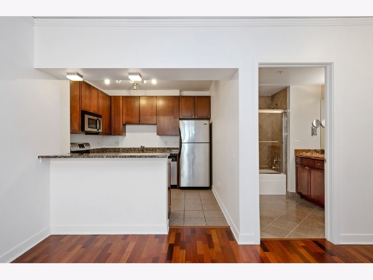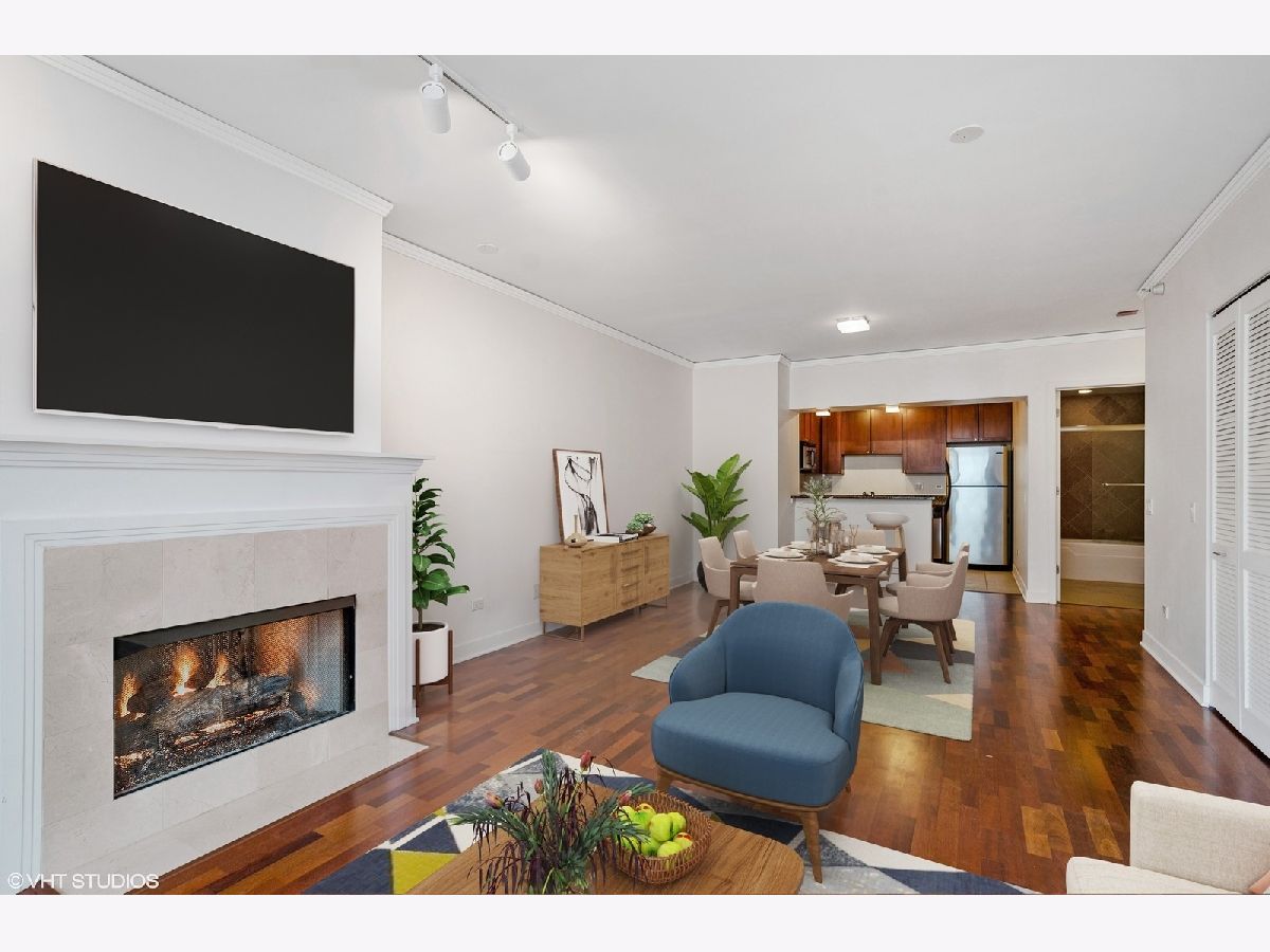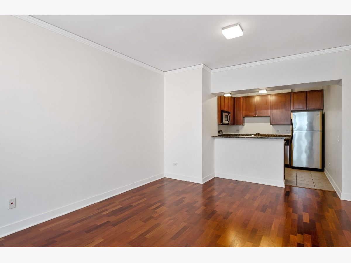 Welcome home to this updated one bedroom, one bath home in the highly desirable Fulton River District/West Loop neighborhood! As the second largest one bedroom floorplan in the building, this generously sized unit provides ample space for both living and dining areas which make this unit perfect for entertaining. The kitchen features 42" cabinets, granite countertops and stainless steel appliances. Additional unit features include hardwood floors in living area, in-unit washer/dryer, central heat/air and a large balcony offering south city views. The primary bedroom includes a spacious walk-in closet. Floor to ceiling windows in living room and bedroom allow for an abundance of natural light during the day. The building offers a full range of amenities, including on-site management, door person, package receiving, exercise room, bike storage, outdoor sitting area, additional storage and a Starbucks/cleaners located right next door. This location is unbeatable, situated in the heart of the Fulton Market, steps from the West Loop and River North. It's conveniently close to the Loop, public transportation options, Metra stations, expressways, expanded Chicago Riverwalk leading east to Lake Michigan, various grocery stores, retail shopping, green parks and the vibrant dining scene along Randolph Street and Fulton Street. One garage parking space is included in price.