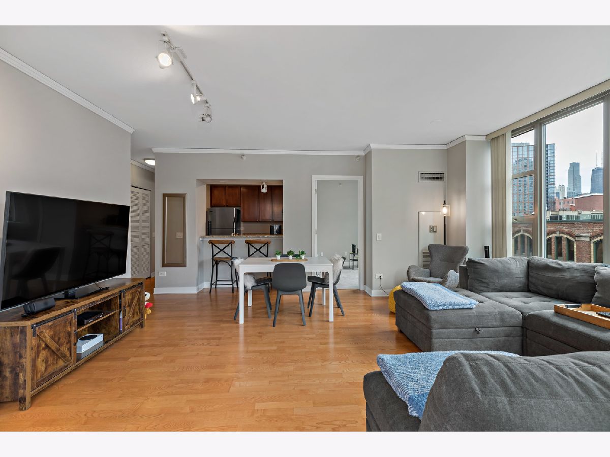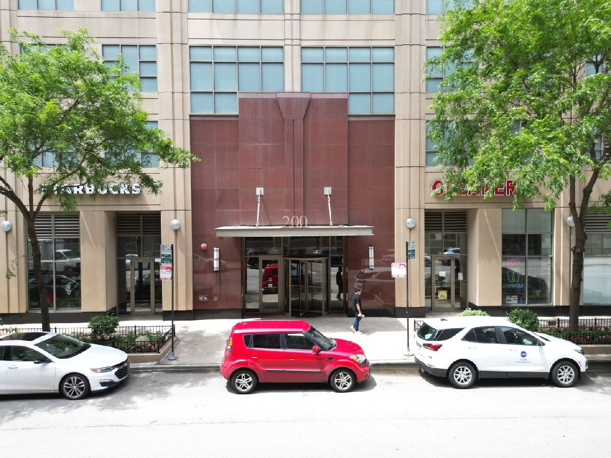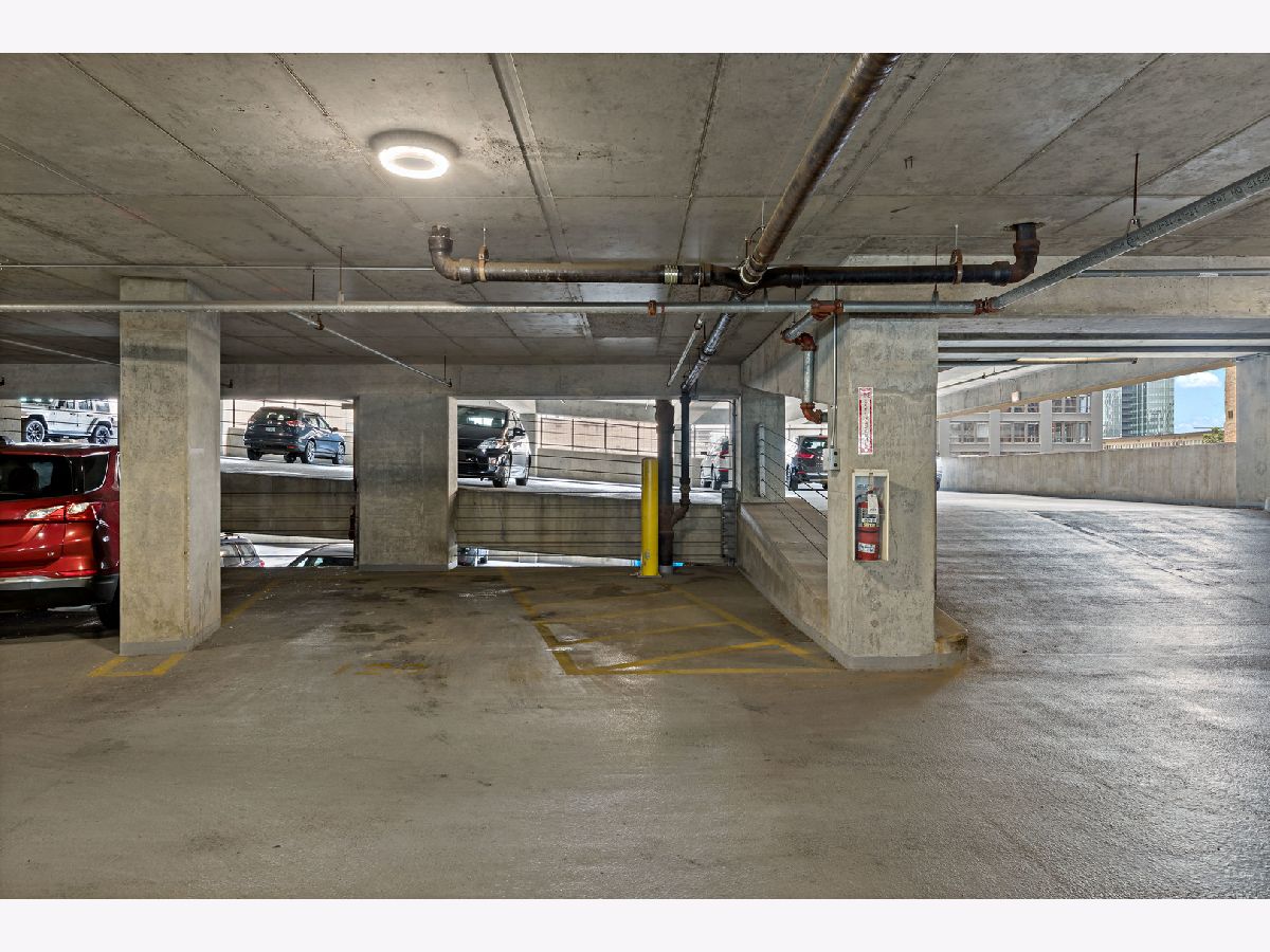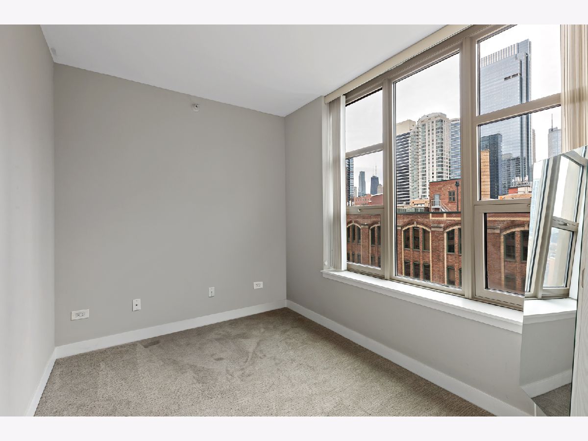 The 200 Jefferson building offers a spacious one bedroom primary ensuite with a separate den, and a half bath corner unit in popular Fulton Market located between River North & West Loop! This unit boasts North, East and South skyline views from every room! Unit features include granite countertops, 42" cabinets, stainless steel appliances, hardwood floors, balcony, central heat/air, newer carpet in bedroom/den & in-unit washer/dryer. A prime garage parking space included in price. This is a full amenity building which includes exercise room, bike room, sundeck, Starbucks, Fedex, Jimmy Jones, additional storage and cleaners. Assessments include everything except electric and internet. Great walking location close to Metra/public transportation, grocery stores, Randolph & Fulton Street restaurants and the expanded Riverwalk! Come experience upscale living and unmatched convenience today!