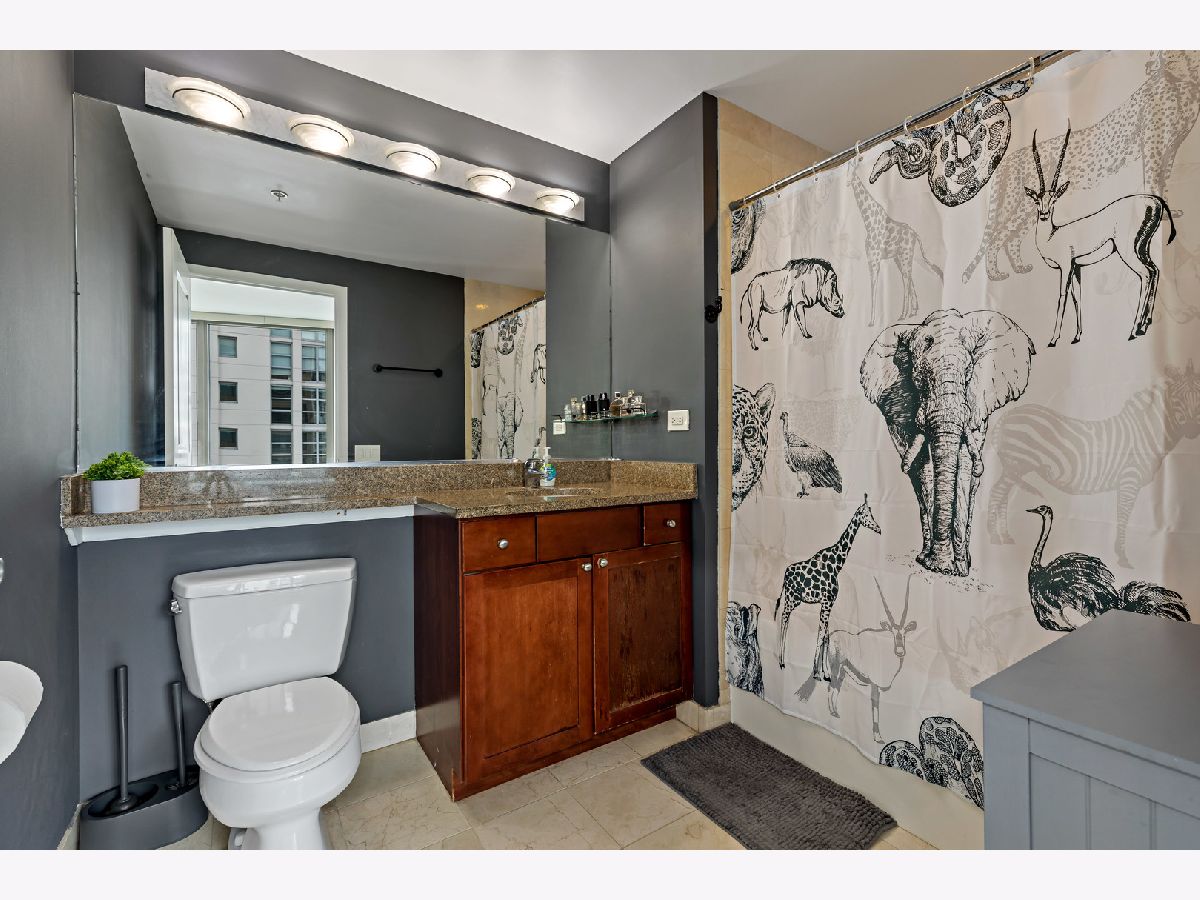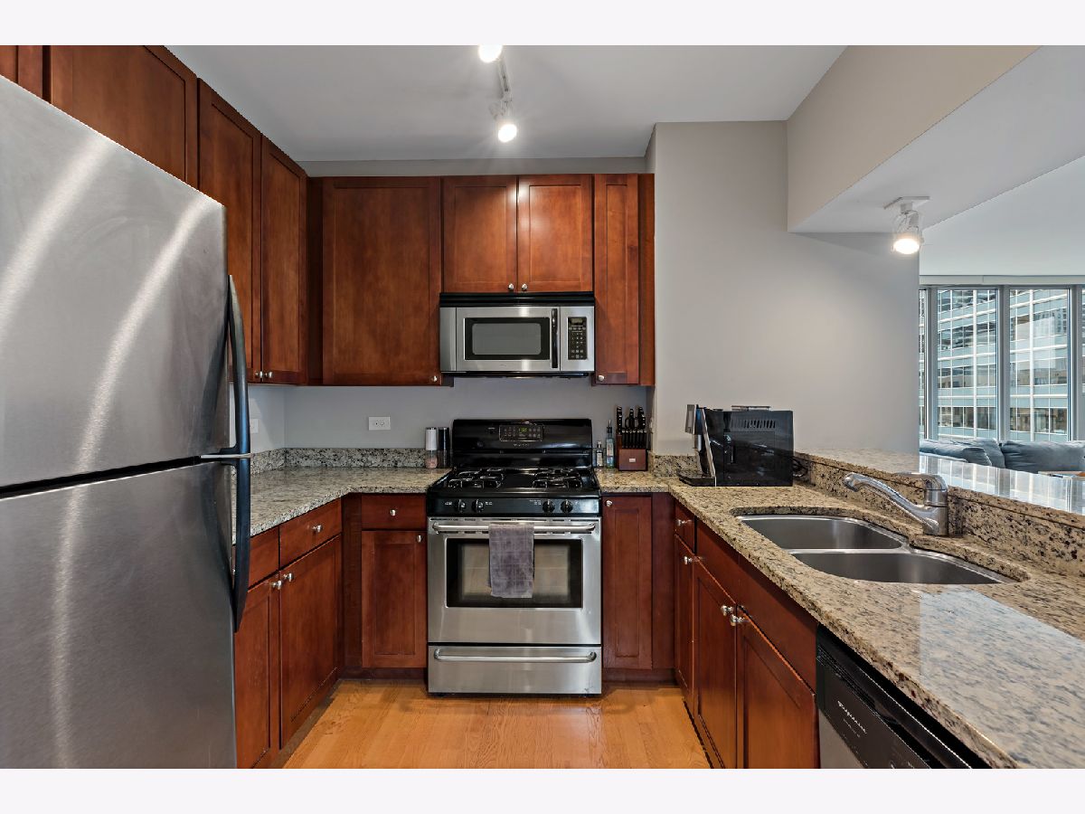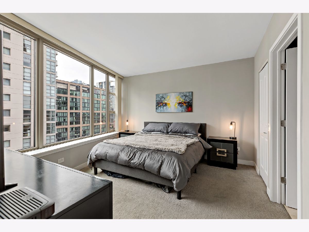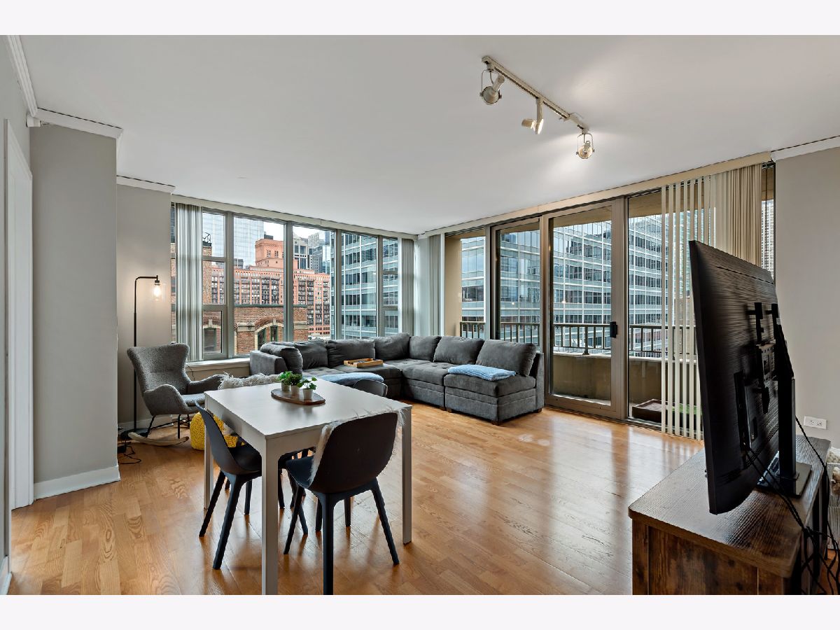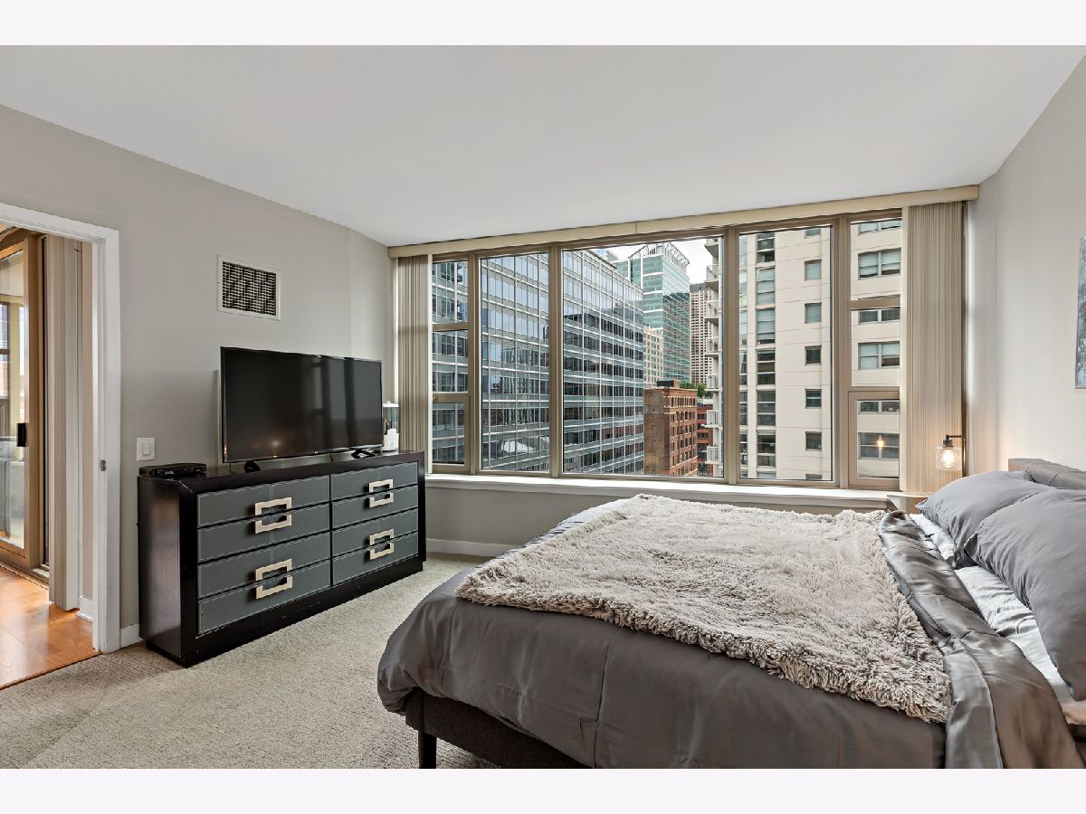 The 200 Jefferson building offers a spacious one bedroom primary ensuite with a separate den, and a half bath corner unit in popular Fulton Market located between River North & West Loop! This unit boasts North, East and South skyline views from every room! Unit features include granite countertops, 42" cabinets, stainless steel appliances, hardwood floors, balcony, central heat/air, newer carpet in bedroom/den & in-unit washer/dryer. A prime garage parking space included in price. This is a full amenity building which includes exercise room, bike room, sundeck, Starbucks, Fedex, Jimmy Jones, additional storage and cleaners. Assessments include everything except electric and internet. Great walking location close to Metra/public transportation, grocery stores, Randolph & Fulton Street restaurants and the expanded Riverwalk! Come experience upscale living and unmatched convenience today!