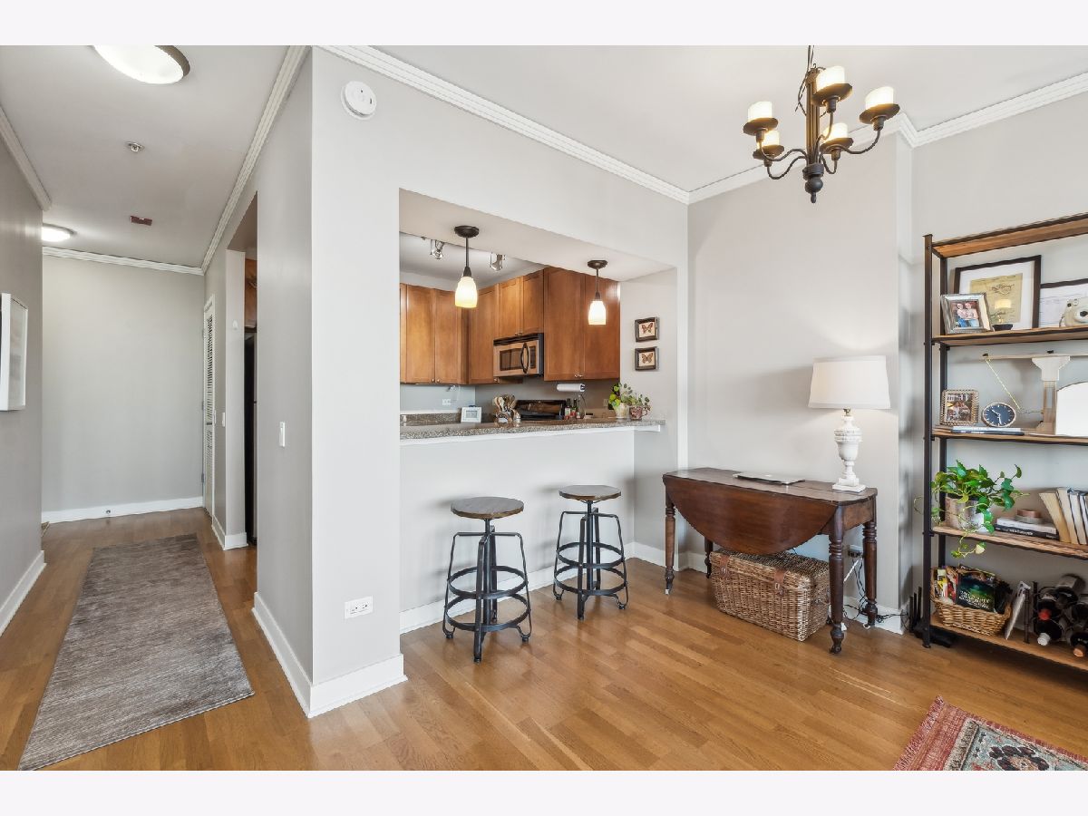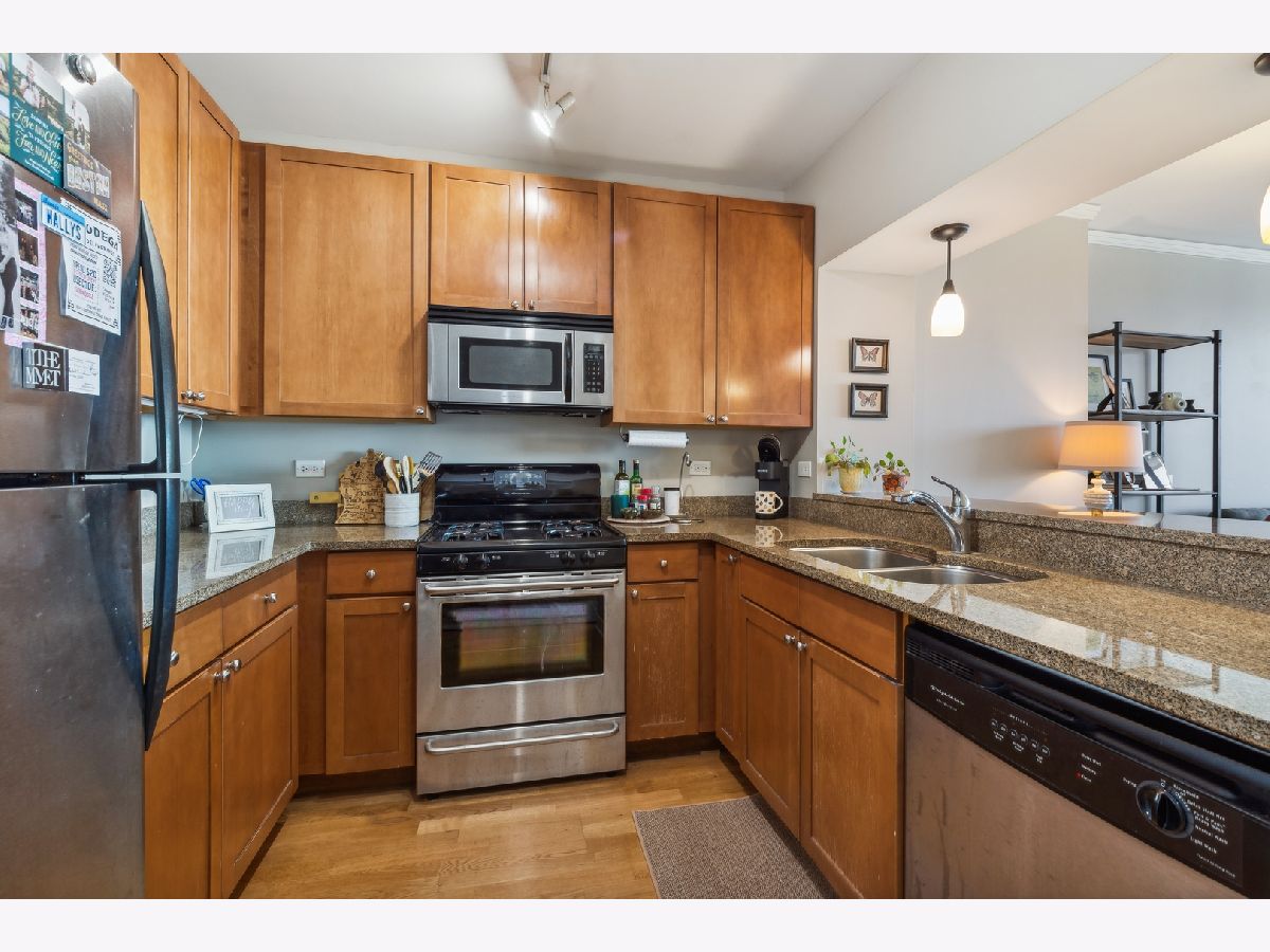 Top floor one bedroom/one bath condominium that offers expansive west views in the sought-after Fulton River District/West Loop neighborhood! This spacious floorplan has large floor to ceiling windows in living room that flood the space with an abundance of natural light and beautiful views all day. The updated kitchen features 42" cabinets, granite countertops and stainless steel appliances. Additional features include hardwood floors throughout the living area, in-unit washer/dryer, central heat/air and a large balcony offering stunning sunset views at night. The master bedroom has a large walk-in closet and newer carpet. The building offers a full range of amenities, including on-site management, door person, package receiving, exercise room, bike storage, outdoor sitting area, additional storage and a Starbucks/cleaners located in building. This location is unbeatable, situated in the heart of the Fulton Market, steps from the West Loop and River North. It's conveniently close to the Loop, public transportation options, Metra stations, expressways, expanded Chicago Riverwalk leading east to Lake Michigan, various grocery stores, retail shopping, green parks and the vibrant dining scene along Randolph Street and Fulton Street. Garage parking included in price. Tenant in place through 9/30/24.