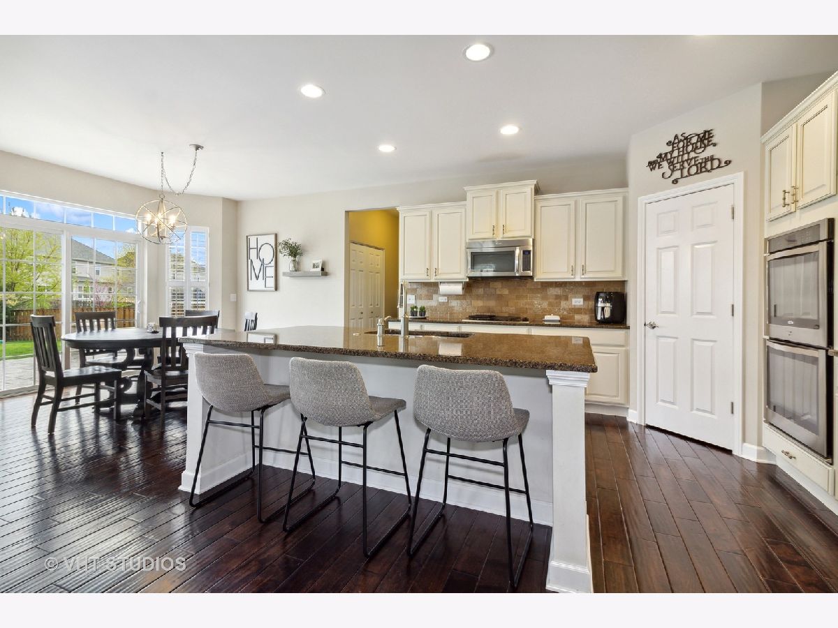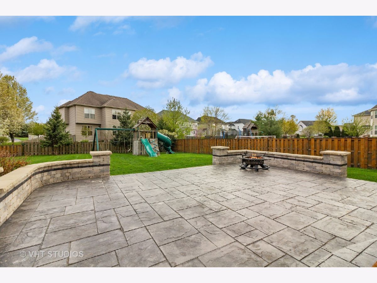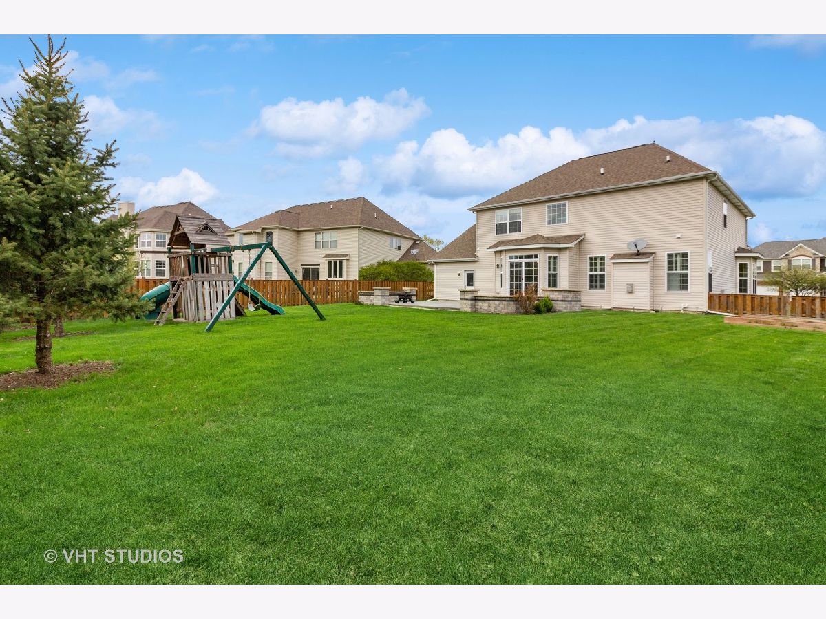 This lovely home will blow you away!! Tremendous corner location on a Cul-de-sac block, with an open floor plan and drenched in natural sunlight. All top-of-the-line finishes, stunning open floor plan. Features include hand scraped hardwood floors throughout the first floor, vaulted ceilings, tray ceiling in the Dining Room, crown molding, recessed lighting, first floor office. The gourmet kitchen is a Chef's dream as this amazing kitchen includes a huge Island with ample seating space, double oven, huge walk-in pantry, all Stainless-Steel appliances. Family Room is open to the kitchen and features a fireplace with gas logs and plantation shutters. A luxury Master Suite featuring his and hers sinks, soaking tub and an oversized shower with a huge walk-in closet. Huge bonus room above the garage has endless possibilities ( being used as play room ), the bedrooms have overhead lighting and offer ceiling fans. Deep pour basement with high ceiling and ready for your ideas to add more usable space. 3 car garage with additional bump out space for easy storage away from living area. A fantastic fenced in yard with an amazing patio. This a great clubhouse community with a pool, walking paths and ponds. Highly acclaimed Oswego schools walking distance to the Jr High. Great location near shopping and dining.