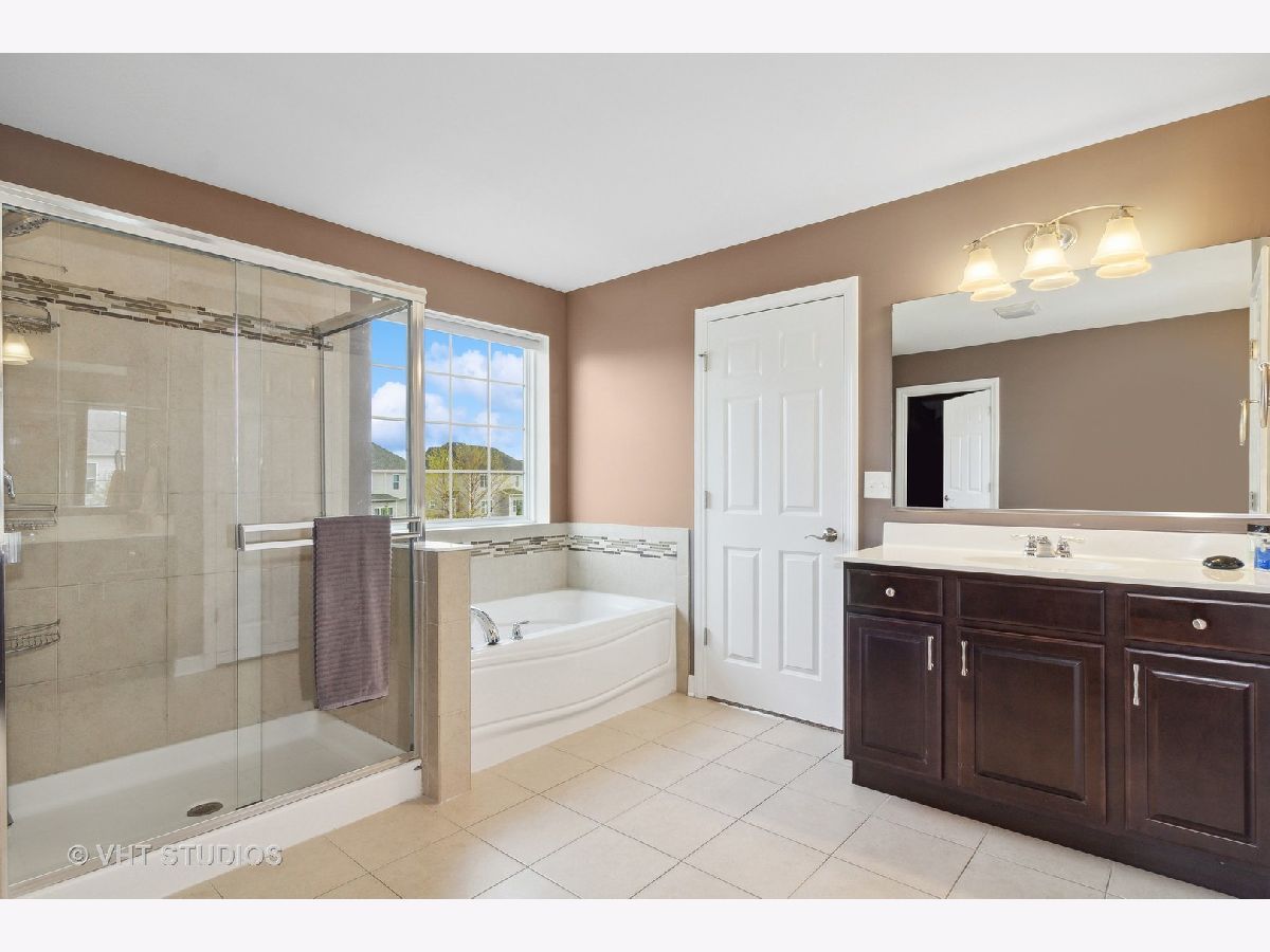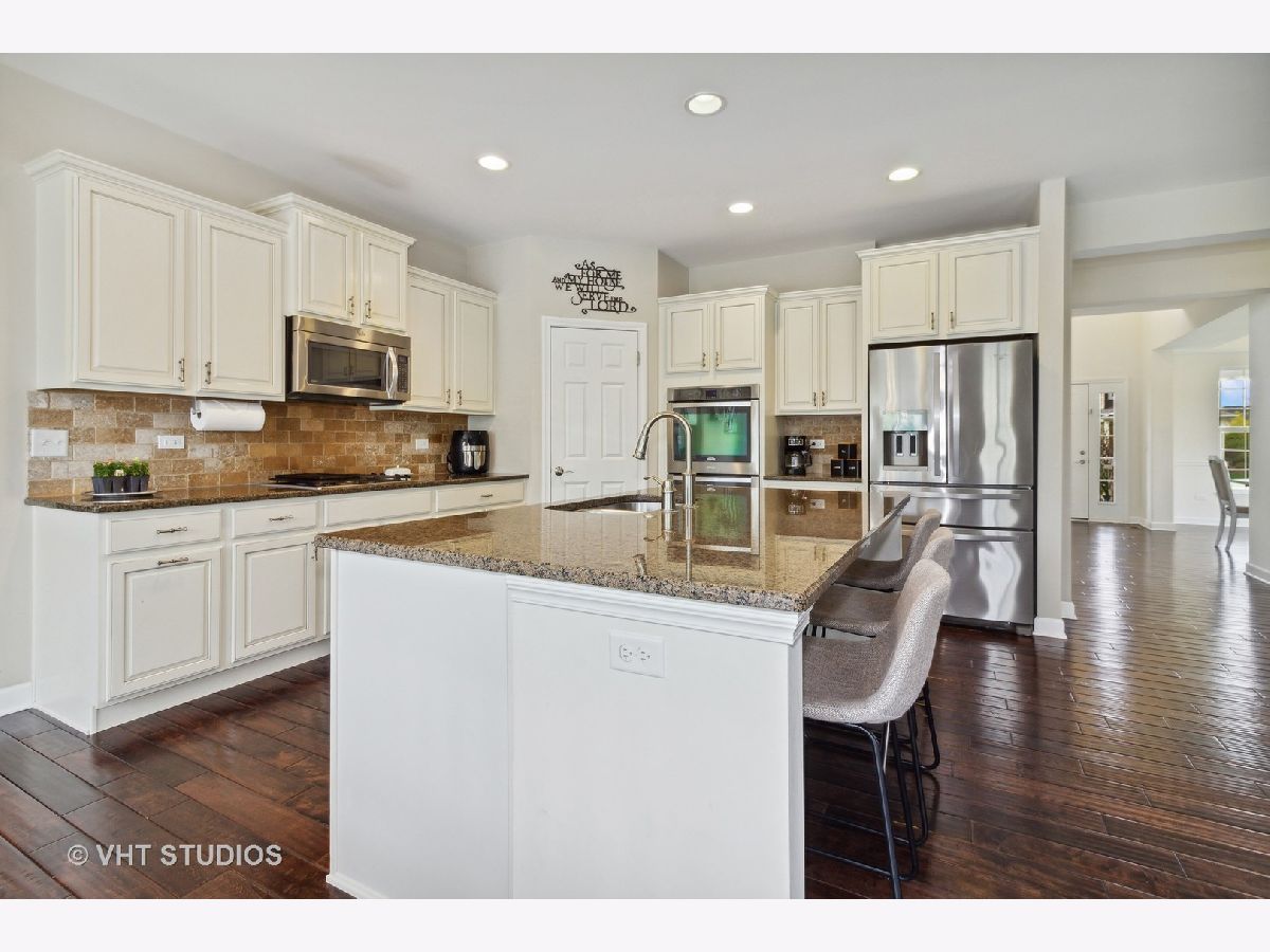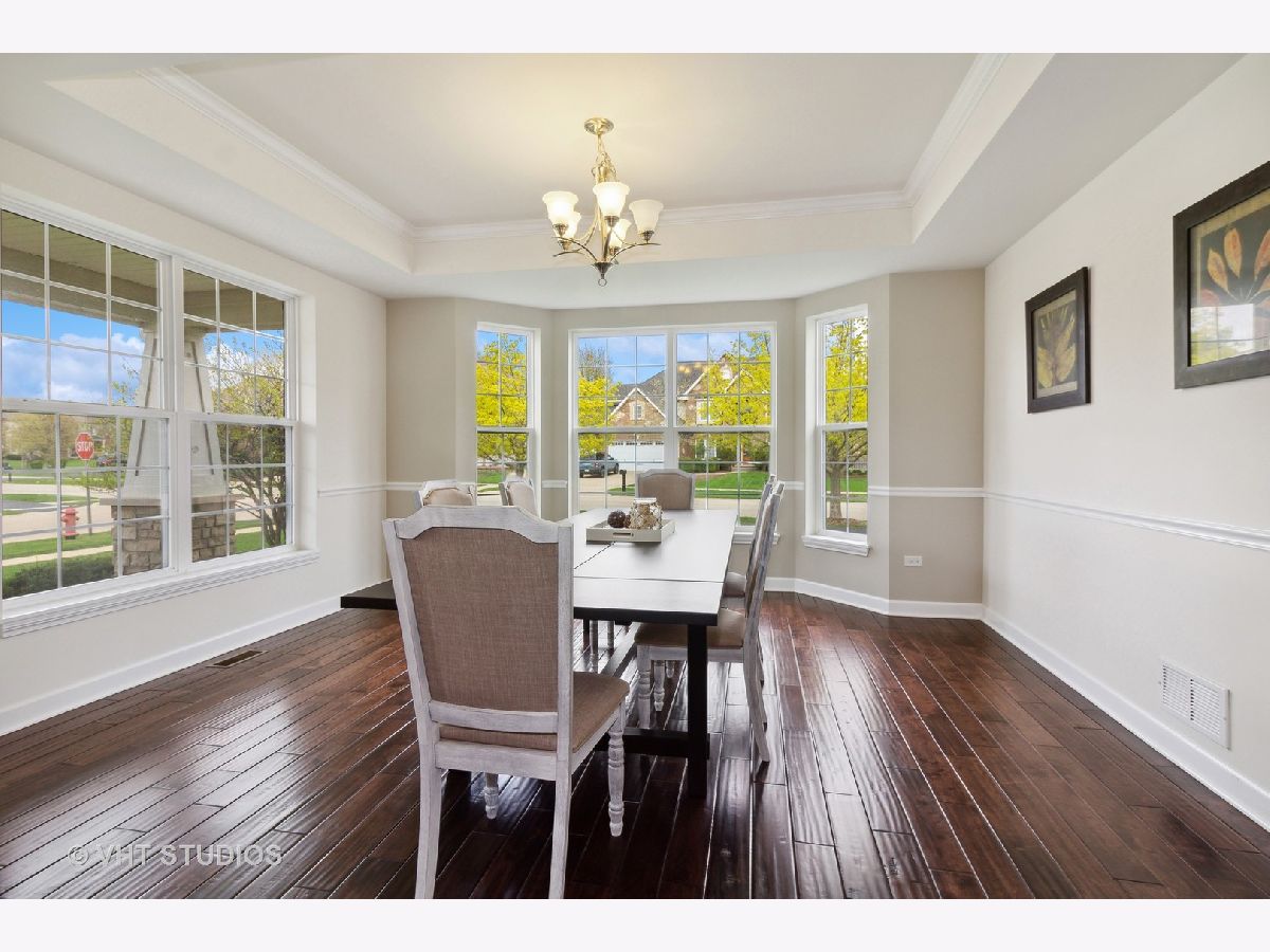 This lovely home will blow you away!! Tremendous corner location on a Cul-de-sac block, with an open floor plan and drenched in natural sunlight. All top-of-the-line finishes, stunning open floor plan. Features include hand scraped hardwood floors throughout the first floor, vaulted ceilings, tray ceiling in the Dining Room, crown molding, recessed lighting, first floor office. The gourmet kitchen is a Chef's dream as this amazing kitchen includes a huge Island with ample seating space, double oven, huge walk-in pantry, all Stainless-Steel appliances. Family Room is open to the kitchen and features a fireplace with gas logs and plantation shutters. A luxury Master Suite featuring his and hers sinks, soaking tub and an oversized shower with a huge walk-in closet. Huge bonus room above the garage has endless possibilities ( being used as play room ), the bedrooms have overhead lighting and offer ceiling fans. Deep pour basement with high ceiling and ready for your ideas to add more usable space. 3 car garage with additional bump out space for easy storage away from living area. A fantastic fenced in yard with an amazing patio. This a great clubhouse community with a pool, walking paths and ponds. Highly acclaimed Oswego schools walking distance to the Jr High. Great location near shopping and dining.