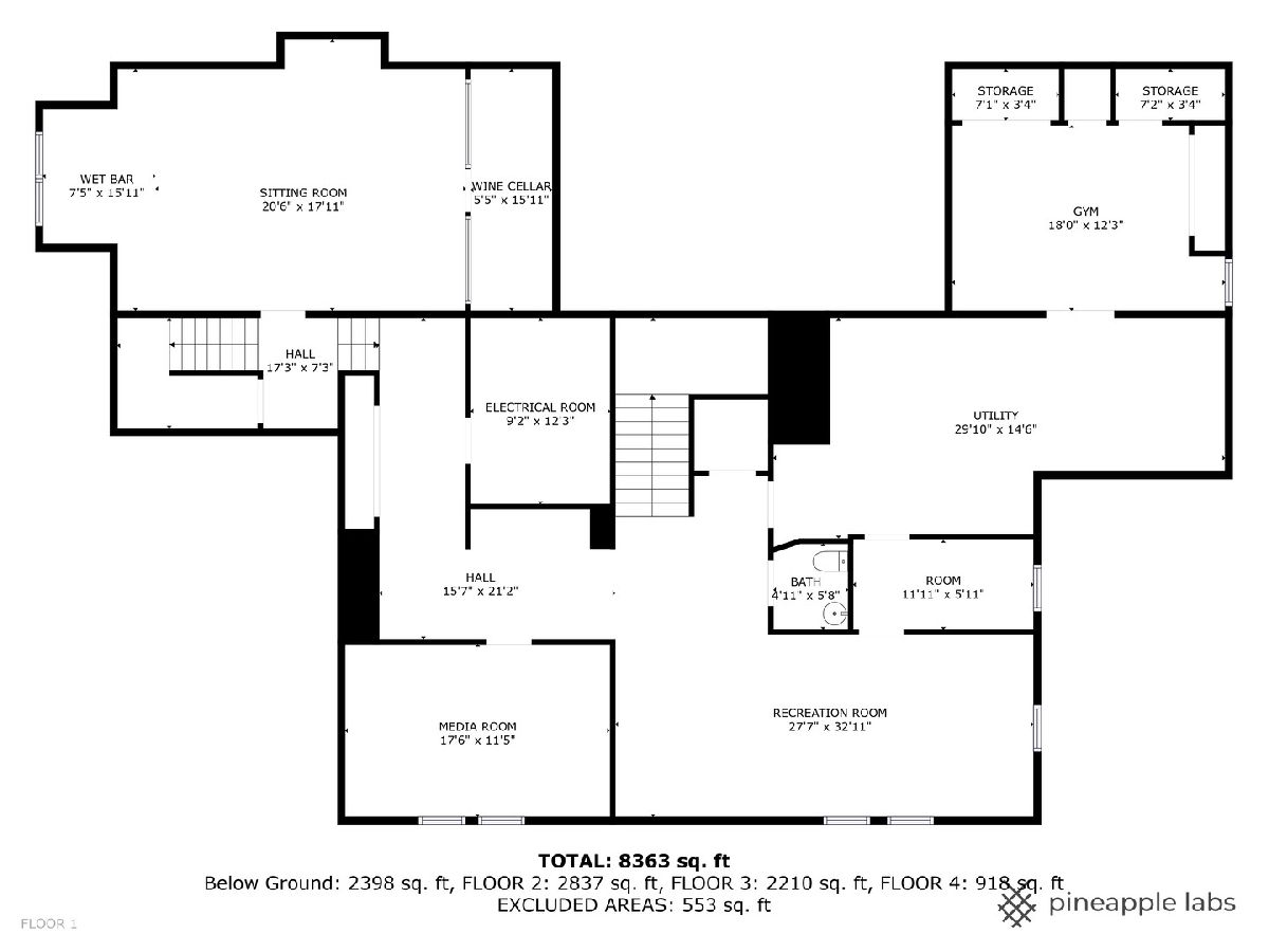 Bathroom in Basement: 1