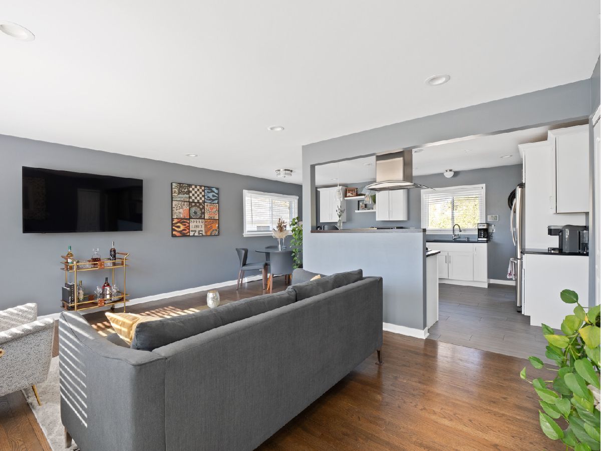 Welcome to this beautiful Sun soaked 4 bedroom 2 full home on the perfect corner LOT. With an open floor plan that will capture your heart, a spacious updated kitchen that is perfect for any cook and a backyard/ patio that is perfect for entertaining family and friends. Stainless steel appliances, granite countertops, 42 inch white cabinetry, breakfast bar, all that looks onto the living and dining area. Hardwood throughout, newer plumbing, newer roof, new clean out, Central AC, Sump Pump, and brand new EV electric installed in garage/ 200 AMP service coming to home, and the list goes on and on. Additionally a sprawling LL that has a family room, custom built bar, 4th bedroom, full bath, laundry, and huge storage room. Beautifully manicured landscaping, brand new white stain on the exterior of the home with wood detailing. Simply a stunning look. Prime location in award winning schools, close to shopping, transportation, and parks