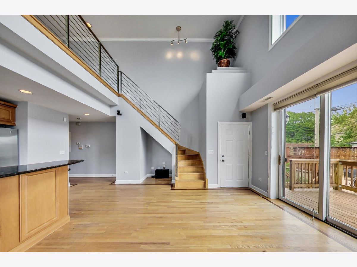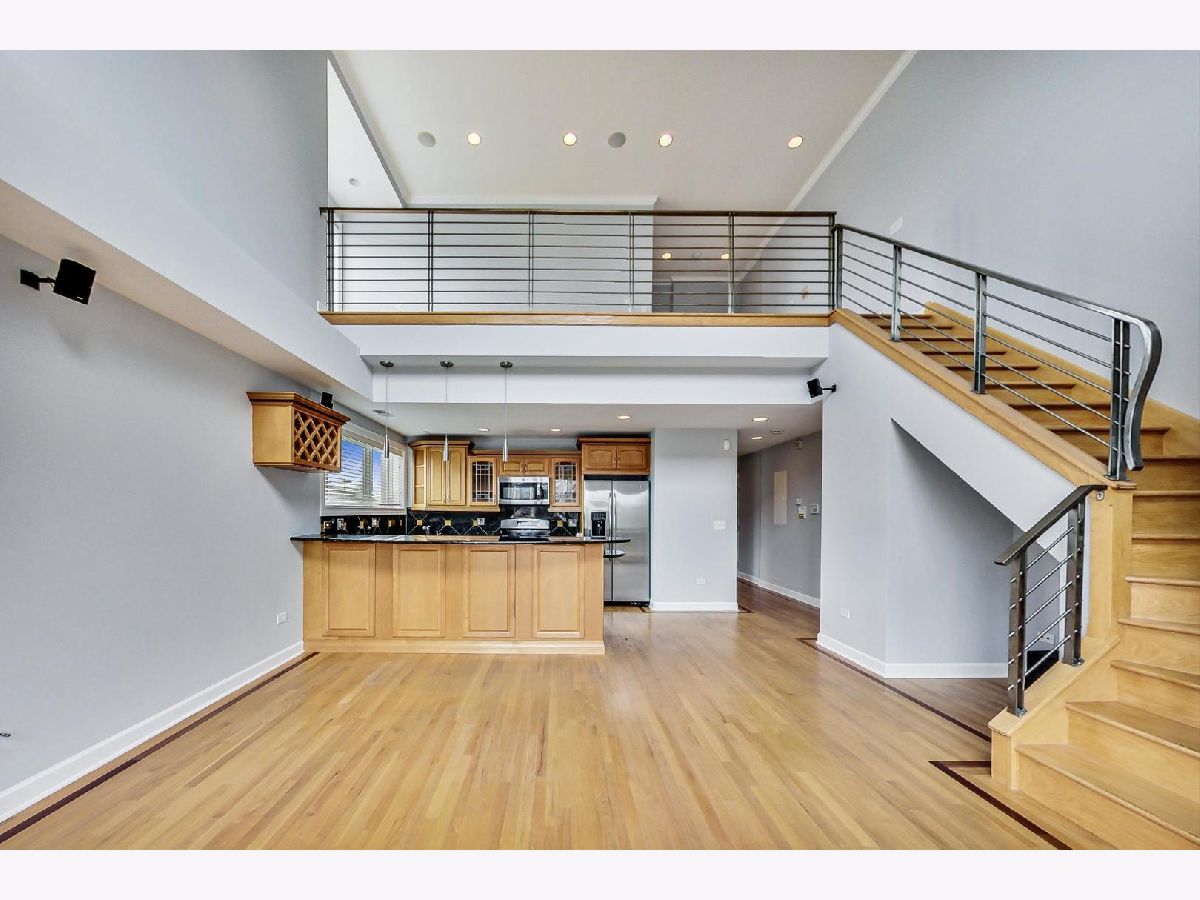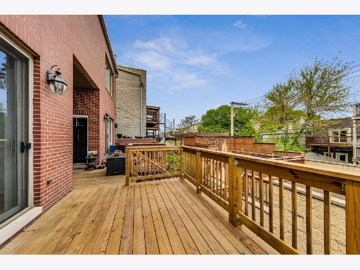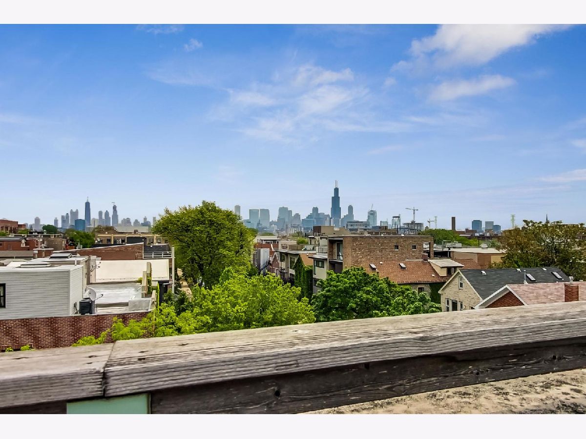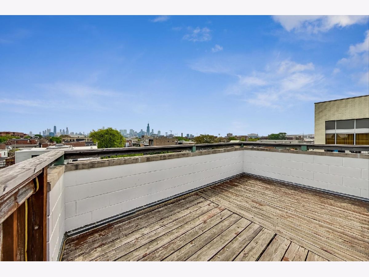 Top-floor duplex-up with private roof deck featuring expansive skyline views, and 2-car garage in West Town. Flooded with natural light this corner unit offers two large bedrooms plus a lofted flex space perfect for a den/family room/office/sitting room or close off a create a 3rd bedroom. Four outdoor spaces - a large deck right off the family room/kitchen, terraces off each bedroom, and an approx. 16'x16' private roof top deck with the opportunity to be expanded into a 40 x 24 oasis. Home is in original condition and has been meticulous maintained. Hardwood flooring and Hunter Douglas window treatments throughout, and granite/marble/slate/maple finishes in the kitchen and baths. Also features surround sound and security system. All masonry constructed condo building with detached block/brick garage that was recently sealed. Between thriving Chicago Ave. and Grand Ave. stretches of restaurants, breweries, shops, etc. and the West Loop/Fulton Market district. Easy access to expressways, and a quick walk/bus ride to the anticipated Damen/Lake Greenline L stop.