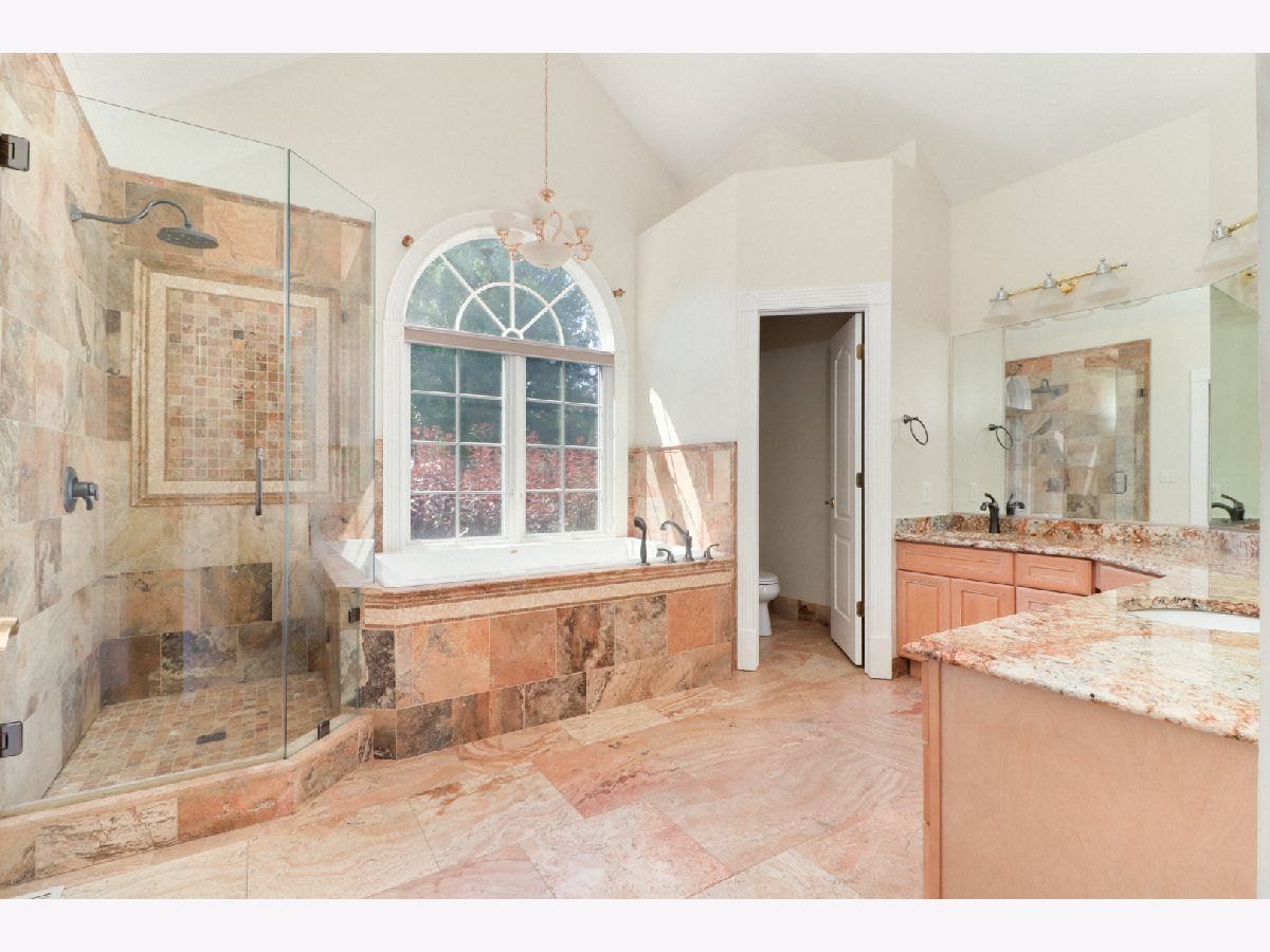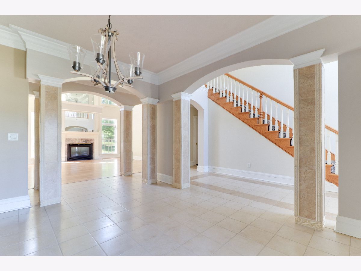 The Impressive two-story Foyer is complete with stunning marble columns, double trey ceilings, indirect lighting and a catwalk. The Gourmet Kitchen has ample maple cabinets, newer granite counters, a walk-in pantry, huge center island and breakfast area with newer ceiling and pendant light fixtures. The Main Floor Owner's Suite is complete with vaulted ceilings, whirlpool tub, vanity and arch-top windows. This home has an abundance of three stage crown moldings and fluted trim throughout, Hardwood floors (most of it newer) & Tile throughout, 6 bedrooms, 2 gas fireplaces, 4.5 baths and 3-car garage. The Basement has newer plush carpets throughout and is finished with: a bedroom, a huge 2nd Family Room (an area with plumbing for a future wet bar), Full Bath, a Newer Media Room with built-in premium speakers that stay. The Tankless Water Heater, Roof, Sprinkler System and an Invisible Fence are all newer. A huge patio with a gas grill and newer granite counters for all your outdoor summer entertaining! The newer kitchen stainless steel appliances and the washer and dryer, all stay. This home, has over 5600 finished square feet, some newer light fixtures, 2 furnaces and air conditioners to ensure comfort on all levels.