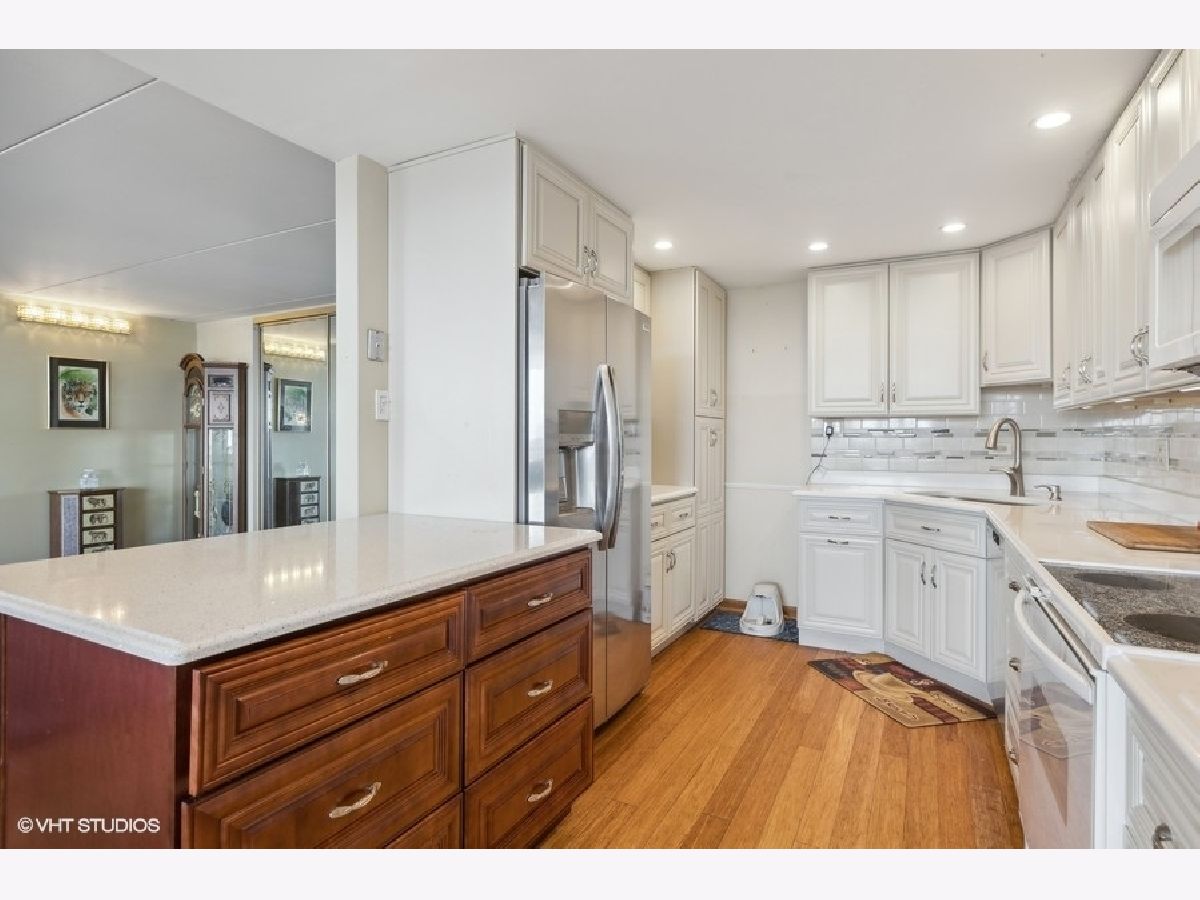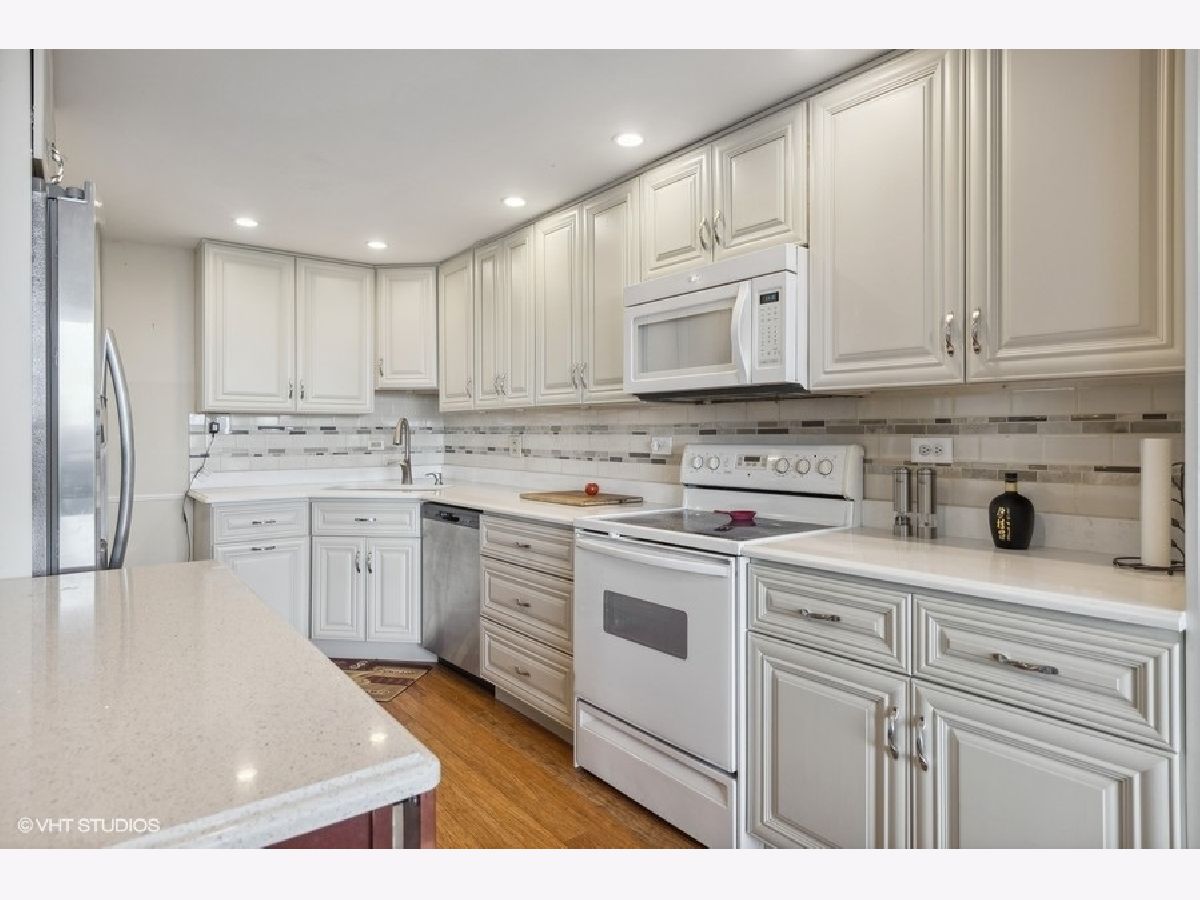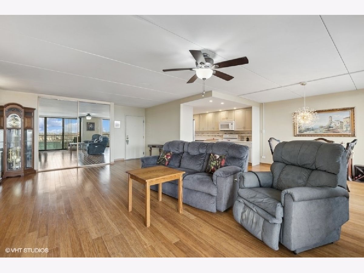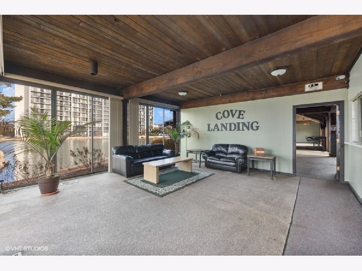 Enjoy resort style living at Cove Landing Condominiums! This oversized penthouse home (1,450 square feet) is rarely on the market! Previously a three bed, two bath, it was converted to a two bed, two bath home. Enjoy a beverage on one of your expansive balconies, overlooking the clubhouse, pool and pond with lights and fountain. The East side of the unit has floor-to-ceiling windows and a total of four new sliding glass doors that welcome you to two different oversized balconies. One large balcony is off the dining room and living room, and the other is off the bedrooms. This East view bathes the residence in the morning light and offers a spectacular view of the sunrise! This home features an updated kitchen with newer appliances, quartz countertops and under-cabinet lighting. The large island can be moved to alter the layout if desired. Bamboo flooring in the kitchen, living/dining room and hallway. Wood laminate flooring in the bedrooms. Newer six-panel doors were installed throughout the home. The owner wisely added plumbing shut-off valves throughout the unit for easy plumbing access. In addition to the storage/pantry room within the home, there are two storage cages conveniently located on the same floor, on the other side of the elevator. Looking for something to do? Residents can enjoy the outdoor pool with spacious sun deck, indoor fireplace, party room, game room, picnic/grill area, exercise room, theater and sauna. All of these wonderful amenities are located in the clubhouse area. You do not have to travel far to be entertained! Don't forget about is great location! Cove Landing is located with close expressway access (I88/355) and plenty of retail shopping, entertainment and restaurants nearby. This sincere Seller has priced this home lower than the per square foot price of recent sales. Please note: residence can ONLY be rented after 2 yrs of Seller occupancy. Drapery door on second bedroom will be replaced with 6 panel door prior to closing. 2023 Monthly assessments: HOA $396.60 + $39.76 (cable) = $436.36 + Master Association Assessment of $156.51 = Total Monthly Assessment of $592.87 2024 Monthly assessments: HOA $424.25 + $40.19 (cable) = $464.44 + Master Assoc. $162.36 = Total Monthly assessment of $626.80