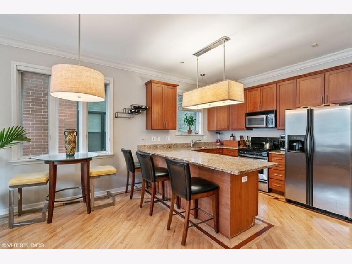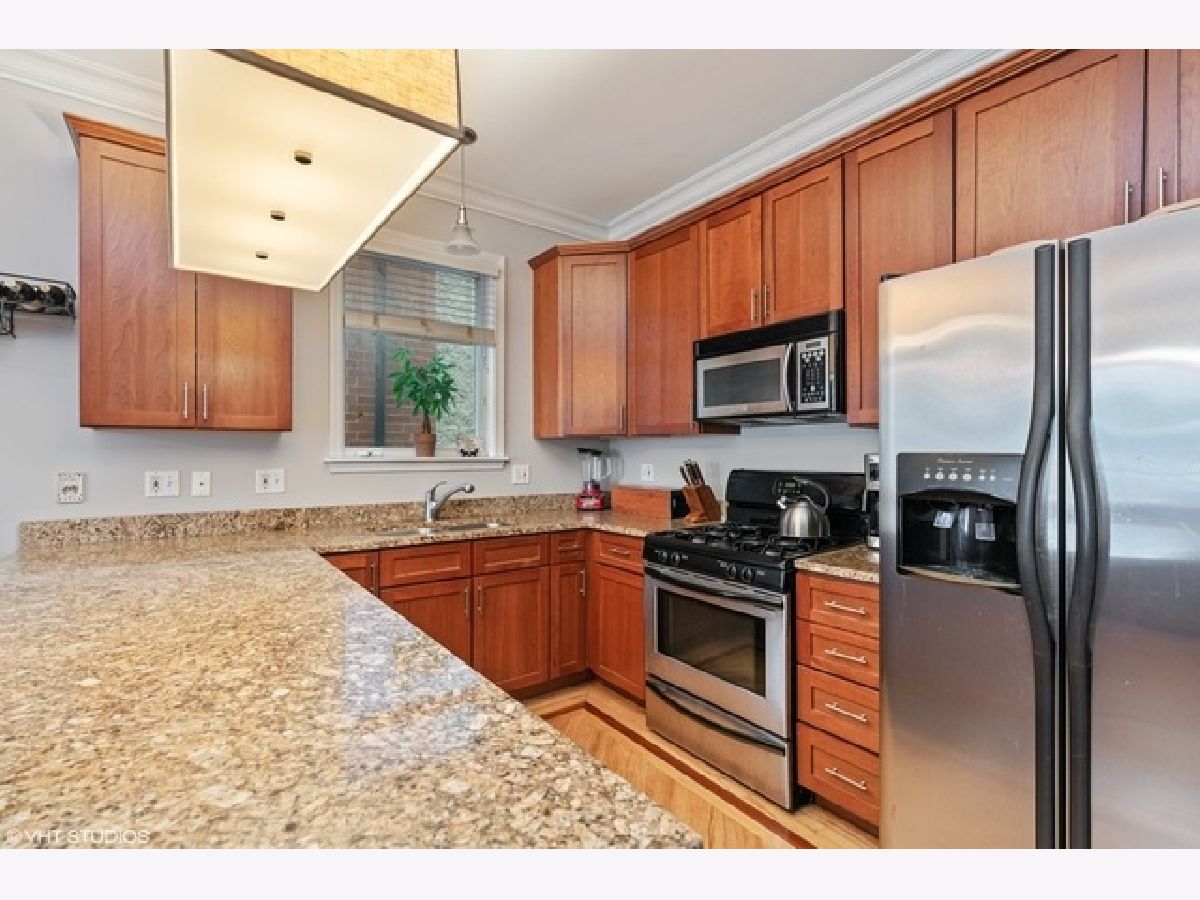 Gorgeous 3 bed/ 3 bath duplex-down condo priced to sell! BRAND NEW KITCHEN with white cabinets, quartz countertops, subway backsplash & SS appliances. This home features 2 bedrooms on main level, an open floor plan with many new modern updates. Hardwood floors throughout, crown molding, smart technology in every room, huge family room with 12 ft ceilings, WBF & oasis-like walkout patio. Large master suite has private balcony, professionally organized WIC & large spa-like bath with double bowl vanity, separate shower and whirlpool tub. Tons of storage including add'l storage unit & garage parking. Walk to Chicago Ave shops, restaurants & public transportation.