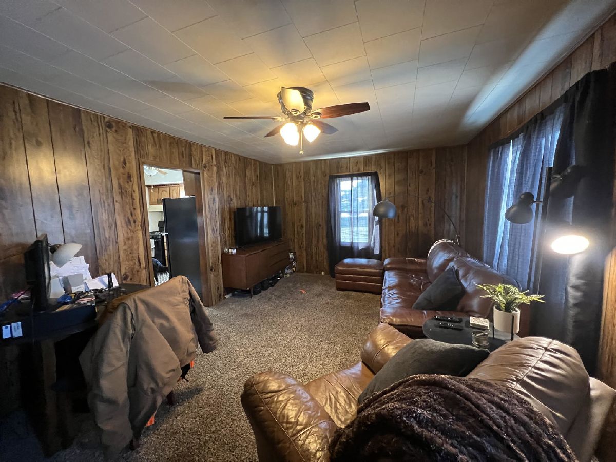 One level living in this ranch style home that offers a huge master with double closets and 2nd bedroom that is currently used as main floor laundry. Features and Updates include most newer vinyl windows, 24x30 two car (would easily fit 3cars) garage with electrical, concrete pad next to garage, covered back patio, concrete patio in back, central air, furnace and roof on garage installed in 2018, water heater and shingles on house roof installed in 2014, . There is a large back25x7.5 entry room that could easily be used for an office or laundry location if you wanted move it from where it is at now. Full unfinished basement offers lots of shelving for storage, workshop area and also has laundry hook-ups or make another bathroom down there. All appliances are included (gas stove).