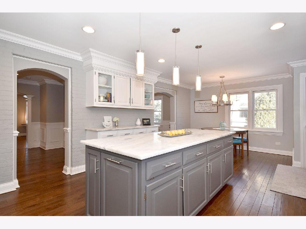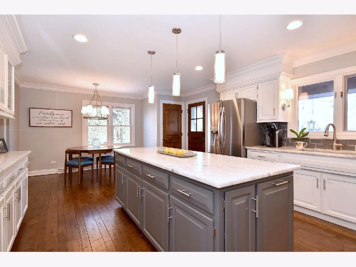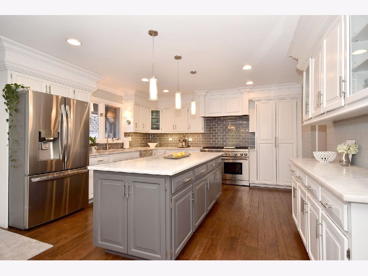 Outstanding center of town location! Walk to town, train, downtown bustling Elmhurst with a plethora of restaurants, shops, York Theater, and more. Renovated by respected home builder Hinsbrook Builders. Impressive and adorable home just steps to down Elmhurst on beautiful Kenilworth Avenue. Home has been extensively renovated in sophisticated finishes which will "wow" your fussiest buyers. All 3 levels of living space plus amazing outdoor space have been redone, including but not limited to kitchen, baths, flooring, lighting, siding, electric, plumbing, HVAC and basement. Newer 3+ car garage is plumbed for heat and has awesome loft storage, outdoor fireplace with Sunbrite television (included), sound system, outdoor bar with built-in gas grill, brick paver walkways and driveway, bluestone covered porch and rear patio. Newer black fencing. Kitchen recently redone with painted cabinetry, oversized island, 48" Thermador range and all stainless steel appliances, and stunning leathered Quartzite countertops. Gorgeous millwork throughout including custom fireplace mantel in living room, and wainscoting in dining room. All 4 bedrooms upstairs, master bedroom has walk-in closet, built-in surround sound, beautiful tray ceiling with wood detail. Master bath Onyx floor and countertop, Double vanity, Kohler fixtures including body sprays in step-in shower. Hall bath has beautiful stone topped vanity and soaking tub plus beautiful mosaic tile with copper accents. Finished basement has surround sound system, built-in desk, bar with refrigerator, microwave and wine fridge, & several storage closets. Alder wood and 5 panel interior doors. Tons of can lights throughout home. Generator, 200 amp electrical service, newer HVAC (2019), plumbing, passive radon system, and water heater. It's all been done for you, simply move in and enjoy.