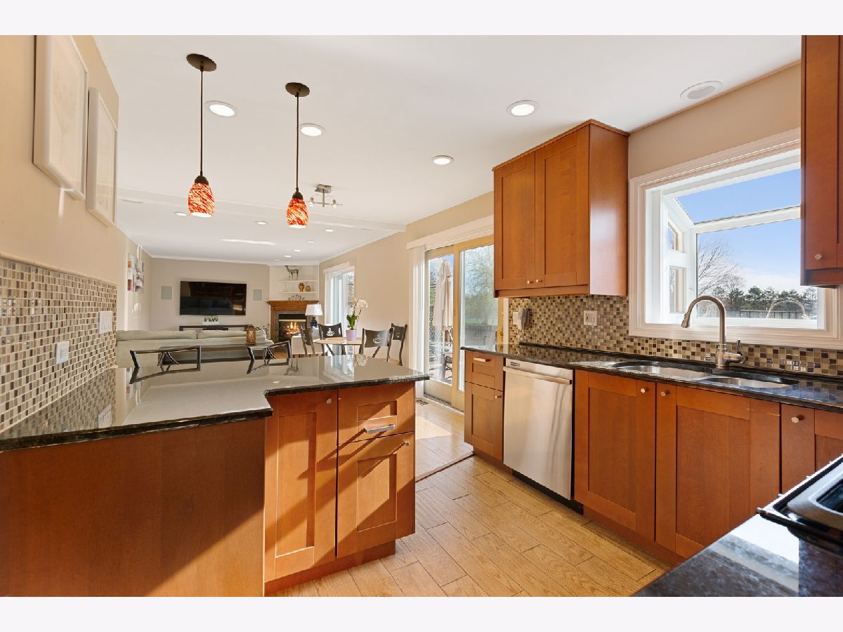 This wonderful home is set in a spectacular setting backing to Deerpath Park! Tennis courts, walking paths, playgrounds, fishing pond! Bright open floor plan, beautiful views. Hardwood flooring throughout the first floor. Newer kitchen (2017) with stainless steel appliances, granite counters, granite breakfast bar, eating area and sliders to large deck opens to family room with fireplace. Gracious living room with large windows and a lovely dining room with views of the huge fenced yard. There are 3 nice-sized bedrooms including a master with private bath and balcony. Finished partial basement. 2+ car garage. 2017: New roof, furnace, A/C, hot water heater. Second A/C unit in attic. You will love to call this home!