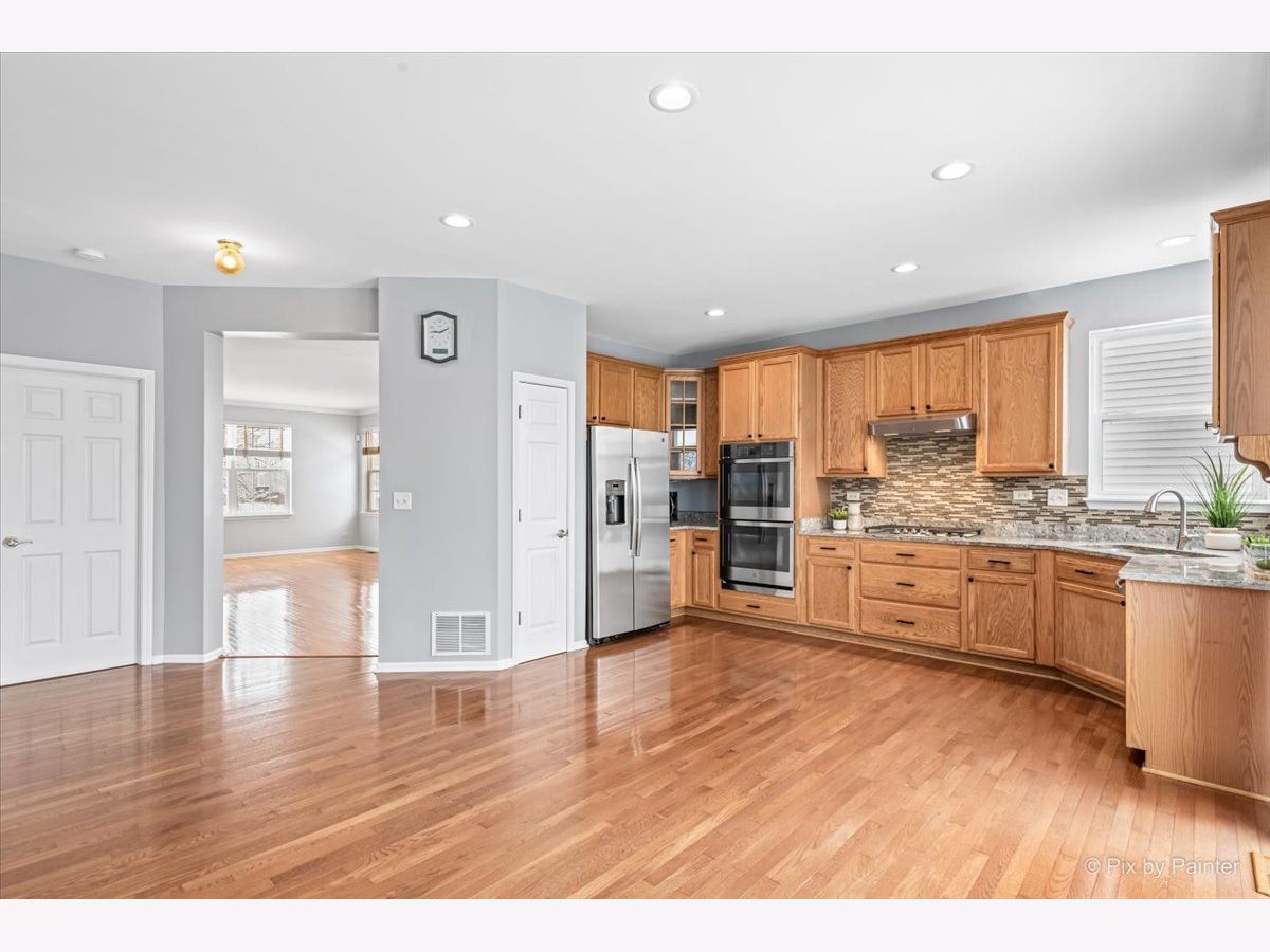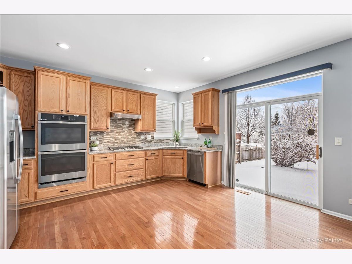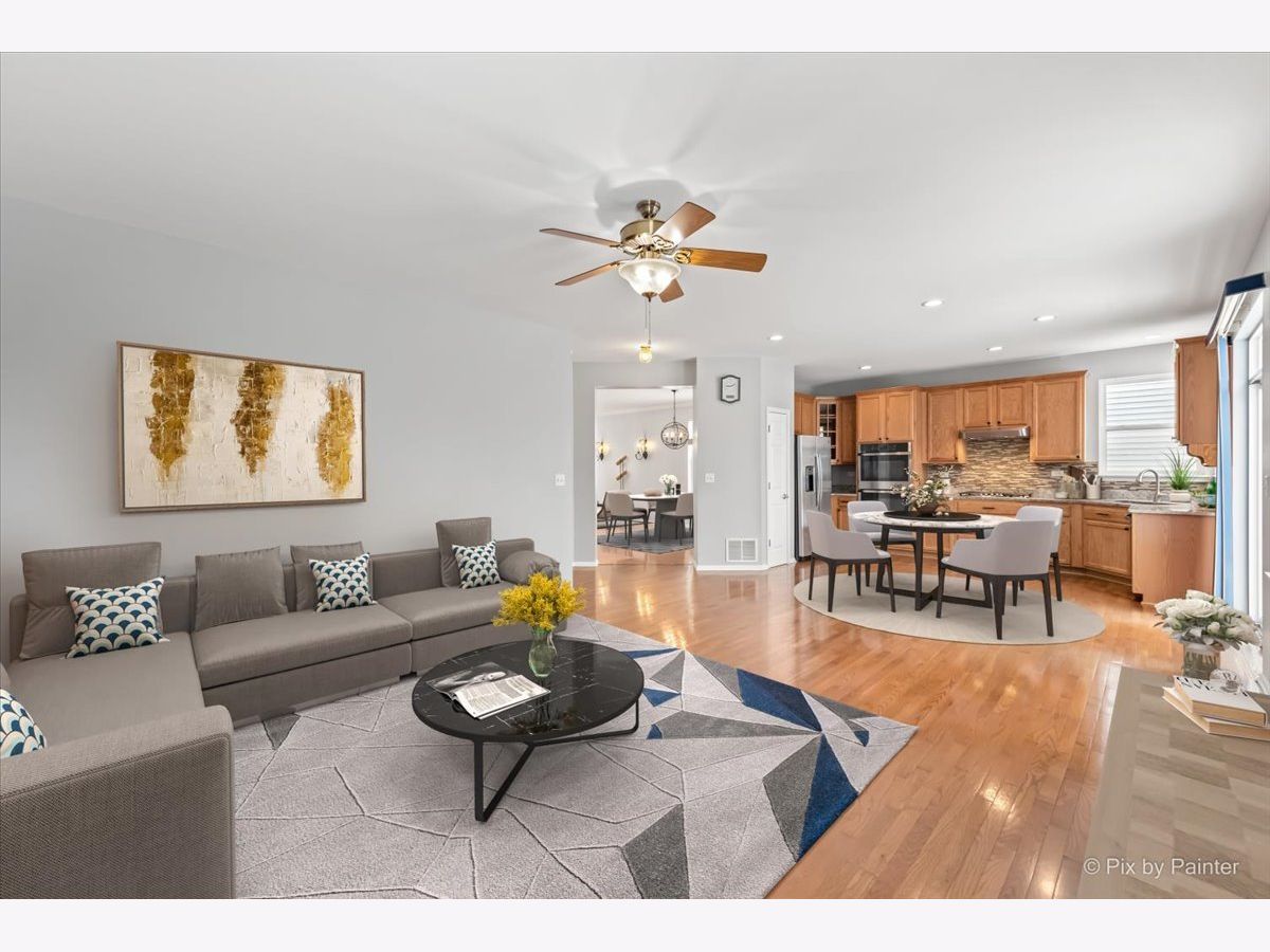 WELCOME HOME!!! BRIGHT, SUNNY, AND SPACIOUS OPEN FLOOR PLAN WITH 4 BEDROOMS, A FENCED YARD, AND A 3 CAR TANDEM GARAGE! Highly sought-after home in the popular Traditions at Harvest Hills Subdivision. A gorgeous new leaded glass front door with transom and sidelights lead into a two-story foyer with turned oak railing staircase. A spacious living room with double wide window opens to the dining room which is great for entertaining. Cozy family room perfect for large gatherings + overlooks an eat-in kitchen with 42" Cabinets, granite countertops, new stainless steel appliances, double oven, pantry closet + large breakfast room with sliding glass door to a large fenced-in backyard with a brick paver patio and no neighbors behind. The master suite features a walk-in closet, a private bathroom with w/double sinks, a water closet, a separate shower, and soaking tub. 3 Additional sizable bedrooms with w/walk-in closets and an adjacent full bathroom. The basement is perfect for a future rec room and offers tons of storage. The main floor includes 1st-floor laundry with utility sink, hardwood flooring, 9' ceilings on the first floor + updated light fixtures. Oversized 3-car tandem garage. NEWER IMPROVEMENTS INCLUDE: Kitchen stainless steel appliances, granite countertop, interior paint, carpet 2022, recessed lighting, master bath tile flooring, Roof 5 years old, new front door with leaded glass, sidelights and transom 2020, Updated Furnace, A/C and Water Heater. Fantastic location near parks, tennis court, walking paths, bike trails, Otter Cove Aquatic and sand park with splach pad, sand area, multiple pools and slides, dog park, soccer / football fields, Hickory Knolls Discovery Center, Great Western Trail, Geneva Commons, Randall Road Shopping & Dining, Elburn /Geneva & LaFox METRA Station + AWARD-WINNING ST. CHARLES DISTRICT #303 SCHOOLS!