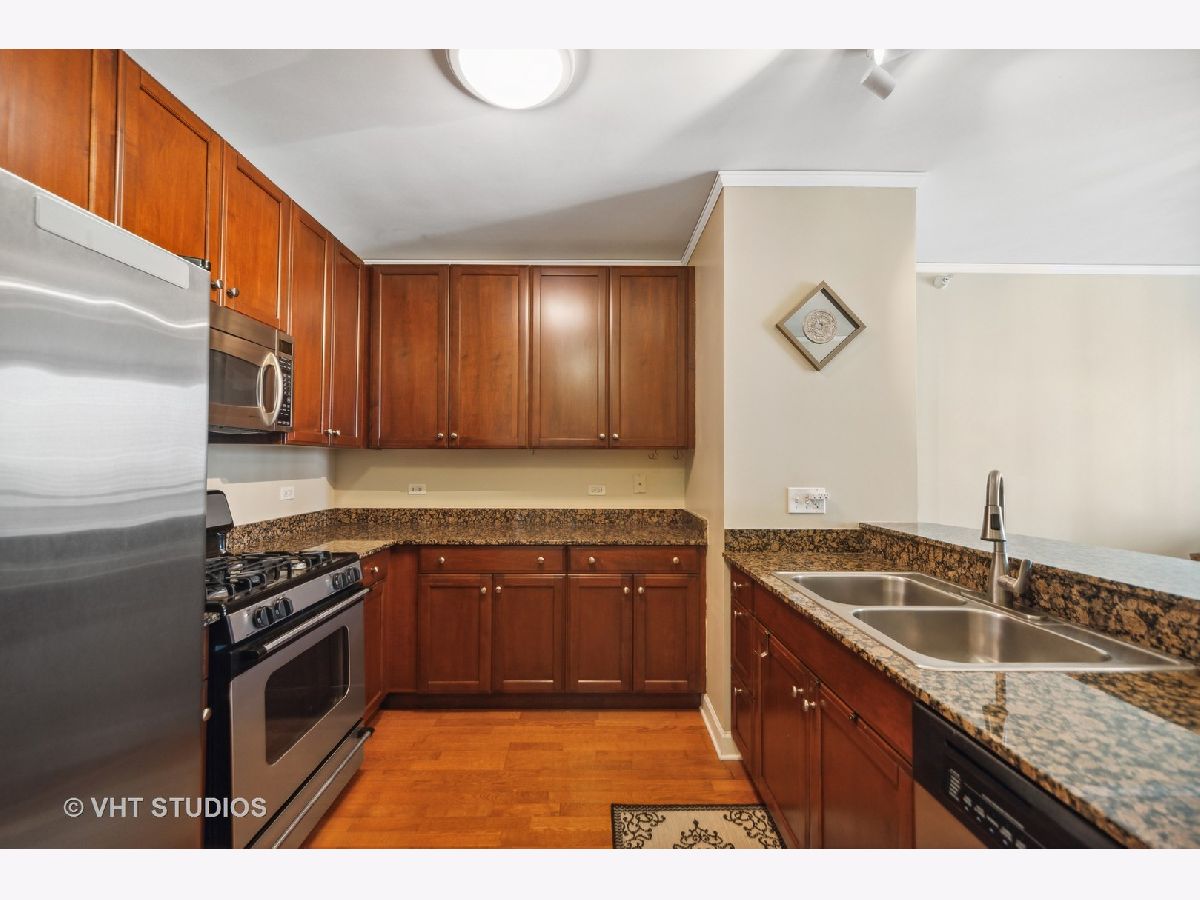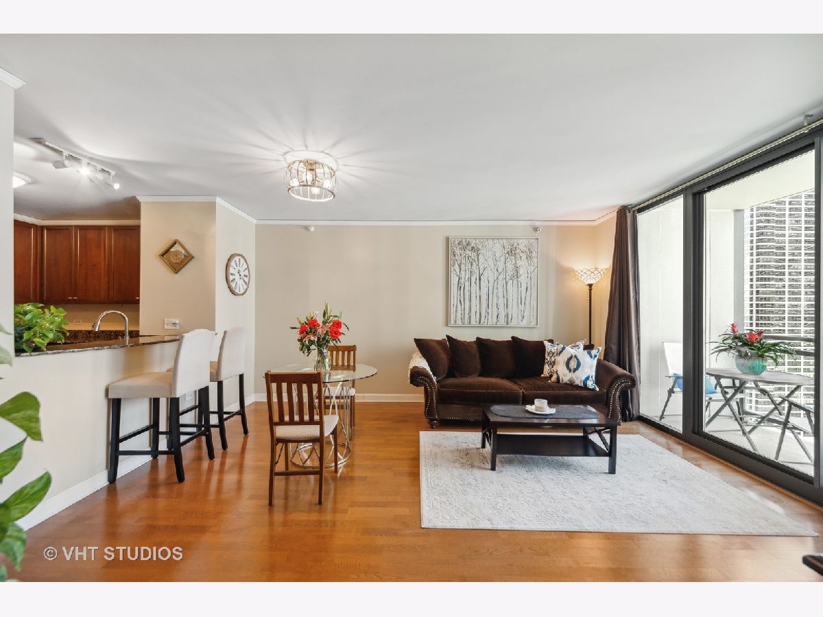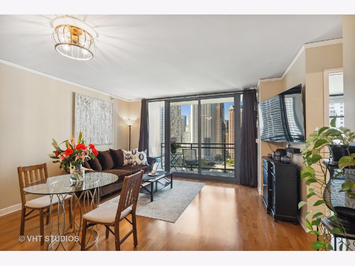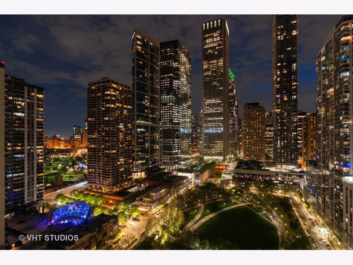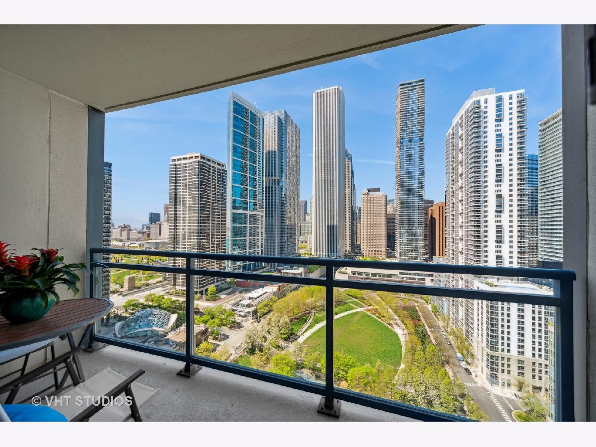 Popular Lancaster, the only condominium building built actually in the Lakeshore East Park. Experience a complete offering of all four seasons, Fall leaves changing, Spring blooms, a Summer solstice and cornucopia of flowers and green. Residence 2403 boasts unobstructed west views from every window and private balcony of the Lakeshore East and Maggie Daley Parks, cityscape views with some of the most significant modern architecture in the city. Enjoy the light show of the unobstructed view at night and the Lakeshore East Park lighting. Foyer with oversized coat closet which can be split for pantry storage. Open kitchen, Brookhaven 42" all wood cabinetry, stainless steel GE appliances, garbage disposal, granite counters with breakfast bar overhang for seating. Separate dining area. Dark honey stained oak floors, in unit full-size, stackable washer and dryer. Primary bathroom dressed in Statuary Marble, white vanity, soaking tub/shower combined. Generous bedroom with walk-in closet and built in clothing and accouterment storage. Floor to ceiling windows throughout this residence. The Lancaster is a full amenity building well known for its incredible sundeck with 360 degree views, state of the art gym, easy access to the lakefront and the park out the main door from the lobby. 24 hour doorstaff, on-site property manager, maintenance and engineering staff. Capital Improvements which are paid for include Chiller (2021), hallway renovation (2022), balconies and exterior facade (2022). Exterior windows washed 2-3 times per year. Routine power washing in garage. Rental parking immediately available and transferrable with Residence 2403. Open and Protected views without obstructions. A very active neighborhood location including a fenced in dog park, movies in the park, outdoor exercise and yoga groups and other outdoor events. Rental and purchase parking options through different owners.