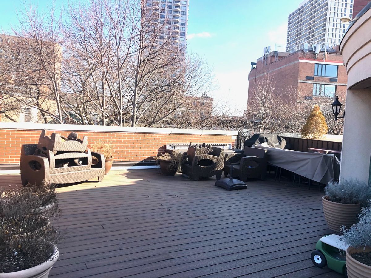 Expansive end unit townhouse in one of Lincoln Park's most desirable developments, "The Pointe". With a 2 car attached garage, a beautifully landscaped and fenced in yard, as well as 3 levels of living, this townhome is one of the biggest and most desirable floorplans in the complex and truly lives like a single family home. Two walls of glass doors with tree-top views flood the open living/dining with natural light and allow the outdoors in. Professionally designed and recently renovated chef's kitchen boasts quartz counters, custom white full-height cabinets, and high-end stainless appliances. Enjoy grilling, gardening, and your morning coffee off the main level's spacious terrace with Trex decking, one of this home's THREE outdoor spaces! Newly refinished hardwood floors, a gas fireplace, and powder room complete the main level. Ideal floor plan offering 3 beds, 2 baths, and full laundry room on the second level including spacious primary suite featuring serene treetop views, a large walk-in closet and marble bath with dual vanities, glass shower, and jacuzzi. Top floor offers a bonus space ideal for a play-room, office, or additional living room complete with a wet bar, opening up to a HUGE Trex rooftop deck perfect for socially distanced gatherings with skyline views. Huge additional storage in the heated garage with epoxy floors. Enjoy a beautifully landscaped private front yard as well as a professionally managed community that recently replaced all roofs, windows, completed tuckpointing in 2017 and installed all composite decking. Unbeatable East Lincoln Park location in acclaimed Lincoln Elementary and Lincoln Park High School, which is steps from the lake, Lincoln Park Zoo. Green City Market, amazing dining along Lincoln and Clark, and public transportation. This is a true gem, welcome home!