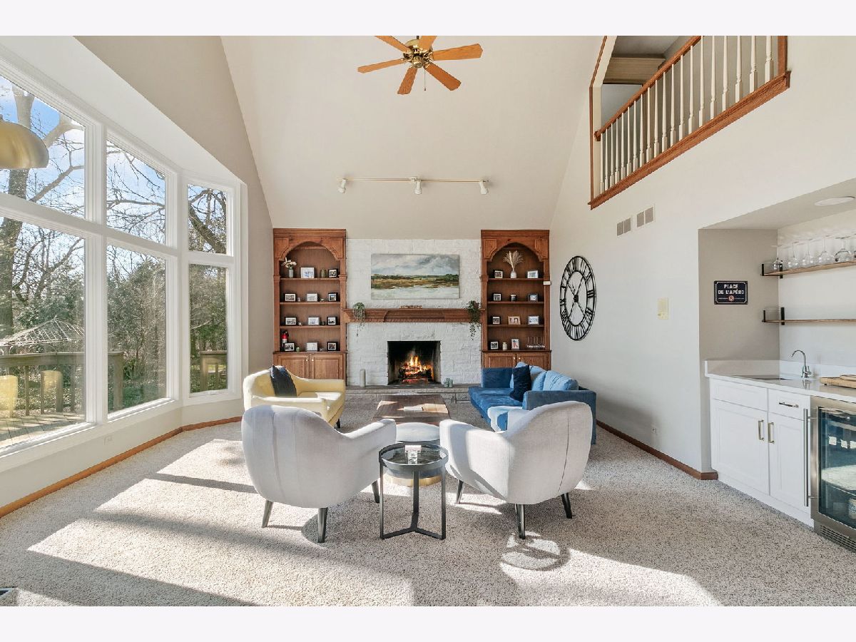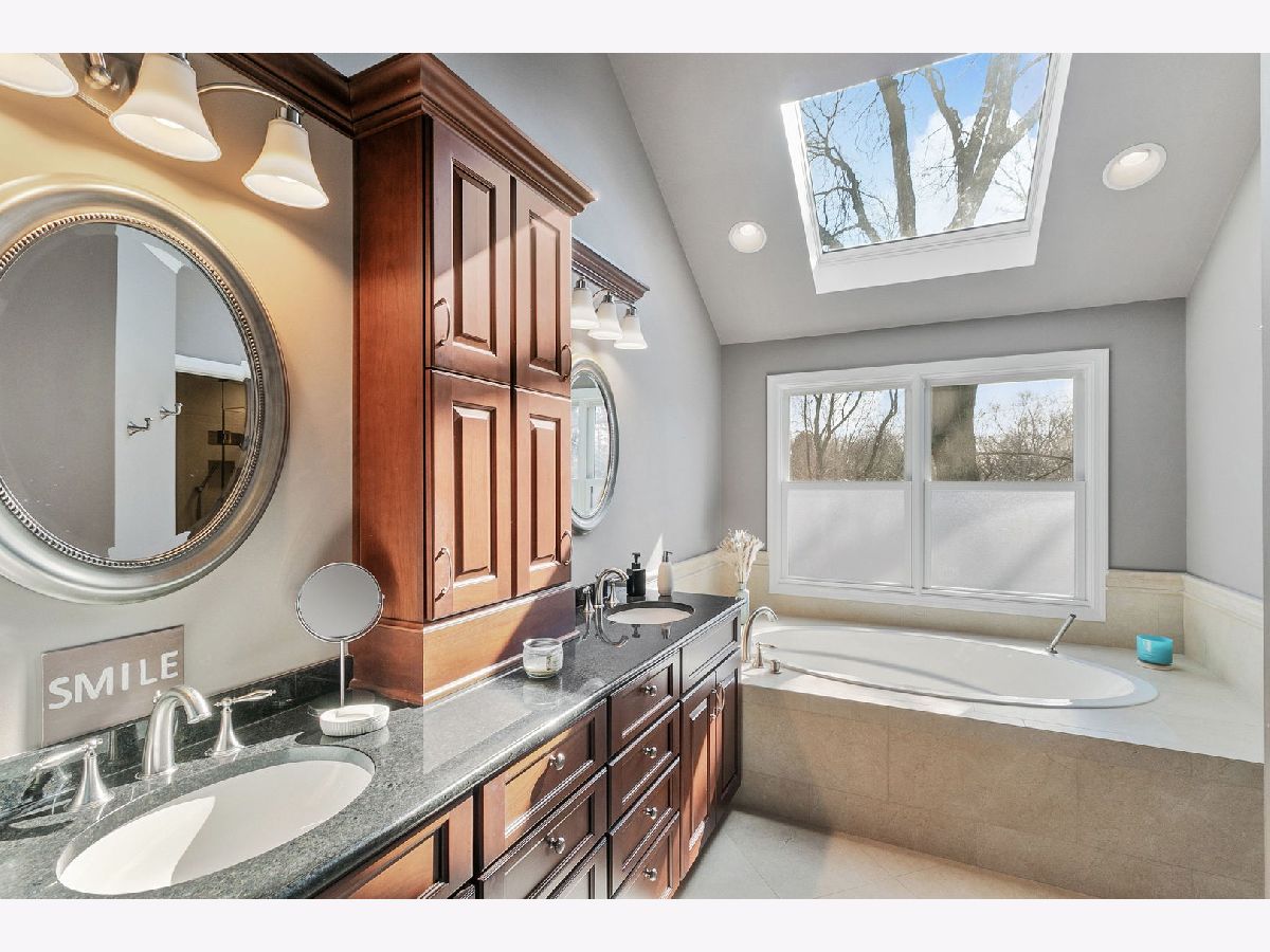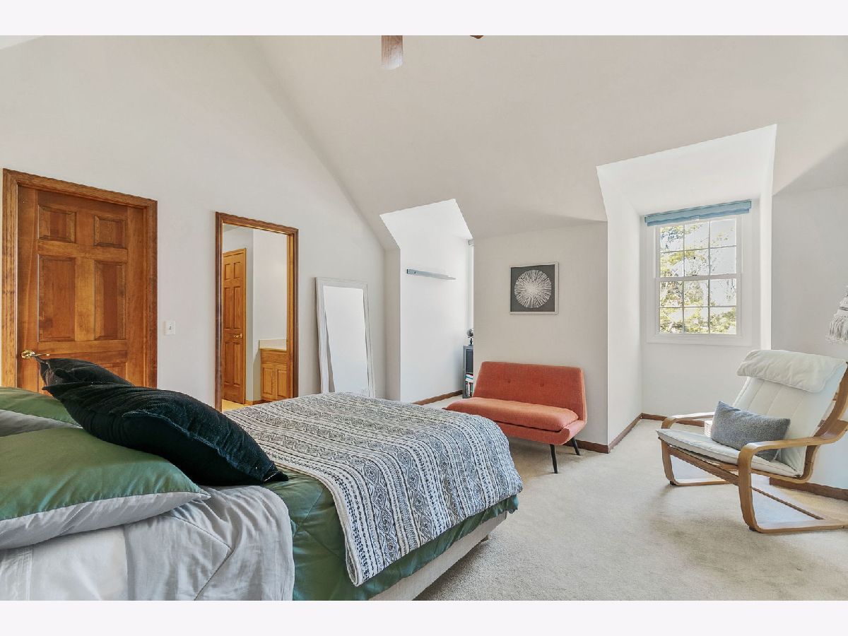 Exquisite 4-bedroom residence nestled on a serene wooded cul-de-sac lot, boasting direct access to the Illinois Prairie Path, offering picturesque vistas from every angle. Upon entry, a grand two-story foyer welcomes you, flanked by spacious living and dining areas. The rear of the home unveils a meticulously renovated kitchen ('23), a culinary haven featuring high-end cabinetry, subway tile, quartz countertops, and state-of-the-art appliances including an Induction Hob oven and built-in microwave drawer. Adjacent is a family room with vaulted ceilings, gorgeous floor-to-ceiling windows, and a newly remodeled beverage bar, ideal for relaxation. A study adorned with custom wall-to-wall bookshelves offers a perfect space for a home office, complemented by a full bath nearby. The expansive laundry room, replete with ample storage and modern amenities, provides direct access to a covered porch, adding convenience to daily routines. Ascending to the second level, discover a spacious primary bedroom with vaulted ceilings, adorned with a recently renovated spa-like bath exuding luxury. Pamper yourself in the extra-large walk-in shower equipped with four separate shower functions, a Bluetooth speaker system, and a steam function. Cherry cabinets with granite counters, heated floors, and a large jacuzzi with jets elevate the experience, while a skylight and picture window invite natural light. Completing the upper level are three additional bedrooms, including a generously sized bedroom that could be used for multiple purposes, connected to another bedroom by a Jack-and-Jill bath. An additional full bath adds convenience for family and guests alike. Recent enhancements include Marvin windows throughout and a roof replacement with architectural shingles. This home is accentuated by beautiful millwork, crown molding, built-ins, and bay windows. Wonderful Wheaton location and is lovingly maintained.