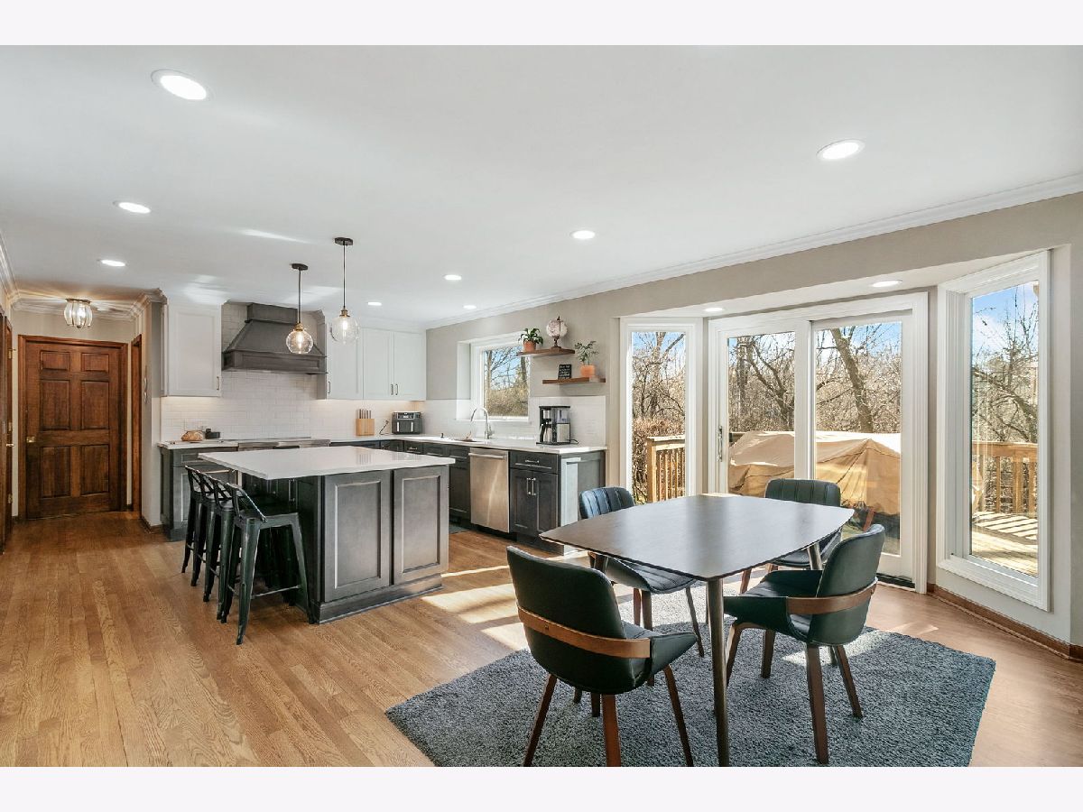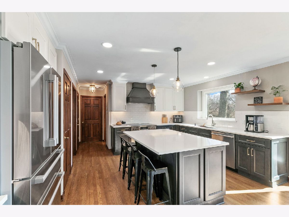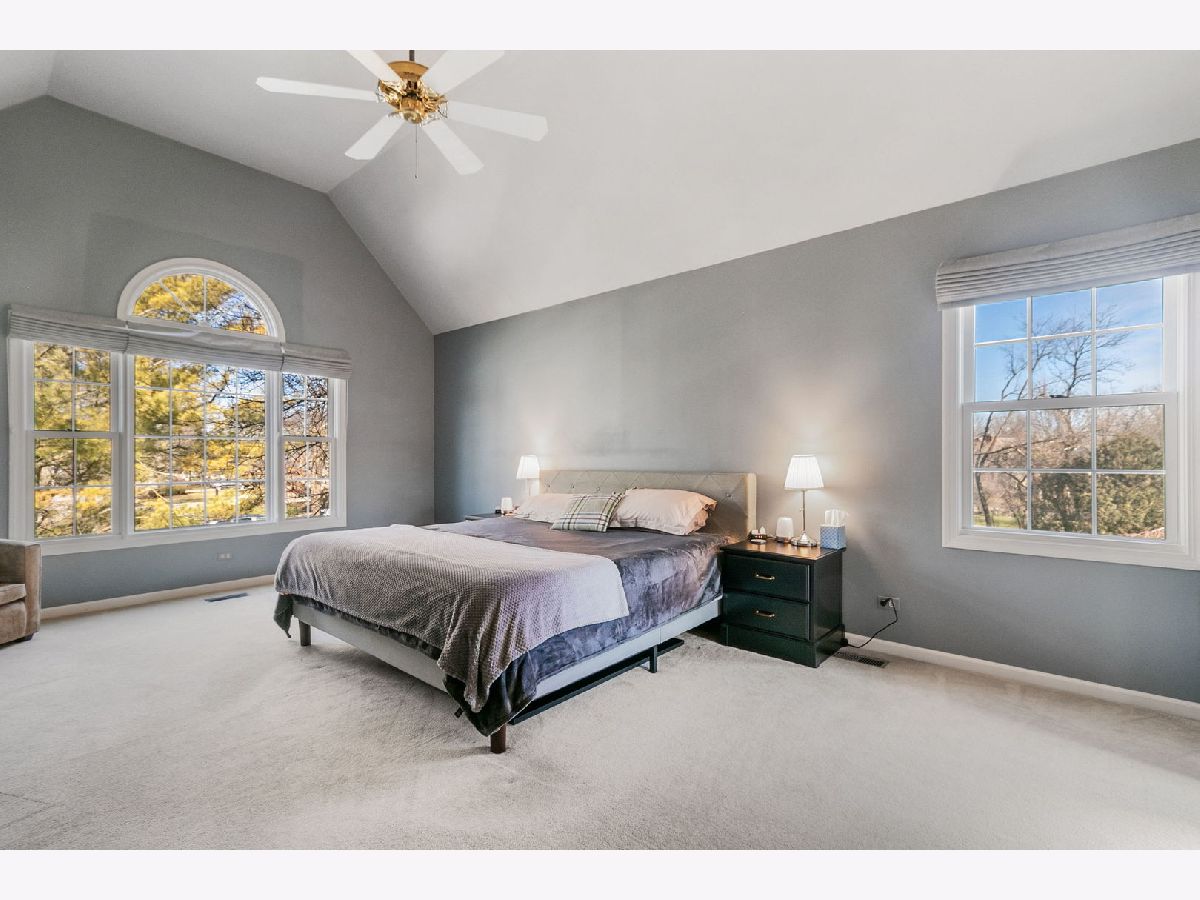 Exquisite 4-bedroom residence nestled on a serene wooded cul-de-sac lot, boasting direct access to the Illinois Prairie Path, offering picturesque vistas from every angle. Upon entry, a grand two-story foyer welcomes you, flanked by spacious living and dining areas. The rear of the home unveils a meticulously renovated kitchen ('23), a culinary haven featuring high-end cabinetry, subway tile, quartz countertops, and state-of-the-art appliances including an Induction Hob oven and built-in microwave drawer. Adjacent is a family room with vaulted ceilings, gorgeous floor-to-ceiling windows, and a newly remodeled beverage bar, ideal for relaxation. A study adorned with custom wall-to-wall bookshelves offers a perfect space for a home office, complemented by a full bath nearby. The expansive laundry room, replete with ample storage and modern amenities, provides direct access to a covered porch, adding convenience to daily routines. Ascending to the second level, discover a spacious primary bedroom with vaulted ceilings, adorned with a recently renovated spa-like bath exuding luxury. Pamper yourself in the extra-large walk-in shower equipped with four separate shower functions, a Bluetooth speaker system, and a steam function. Cherry cabinets with granite counters, heated floors, and a large jacuzzi with jets elevate the experience, while a skylight and picture window invite natural light. Completing the upper level are three additional bedrooms, including a generously sized bedroom that could be used for multiple purposes, connected to another bedroom by a Jack-and-Jill bath. An additional full bath adds convenience for family and guests alike. Recent enhancements include Marvin windows throughout and a roof replacement with architectural shingles. This home is accentuated by beautiful millwork, crown molding, built-ins, and bay windows. Wonderful Wheaton location and is lovingly maintained.